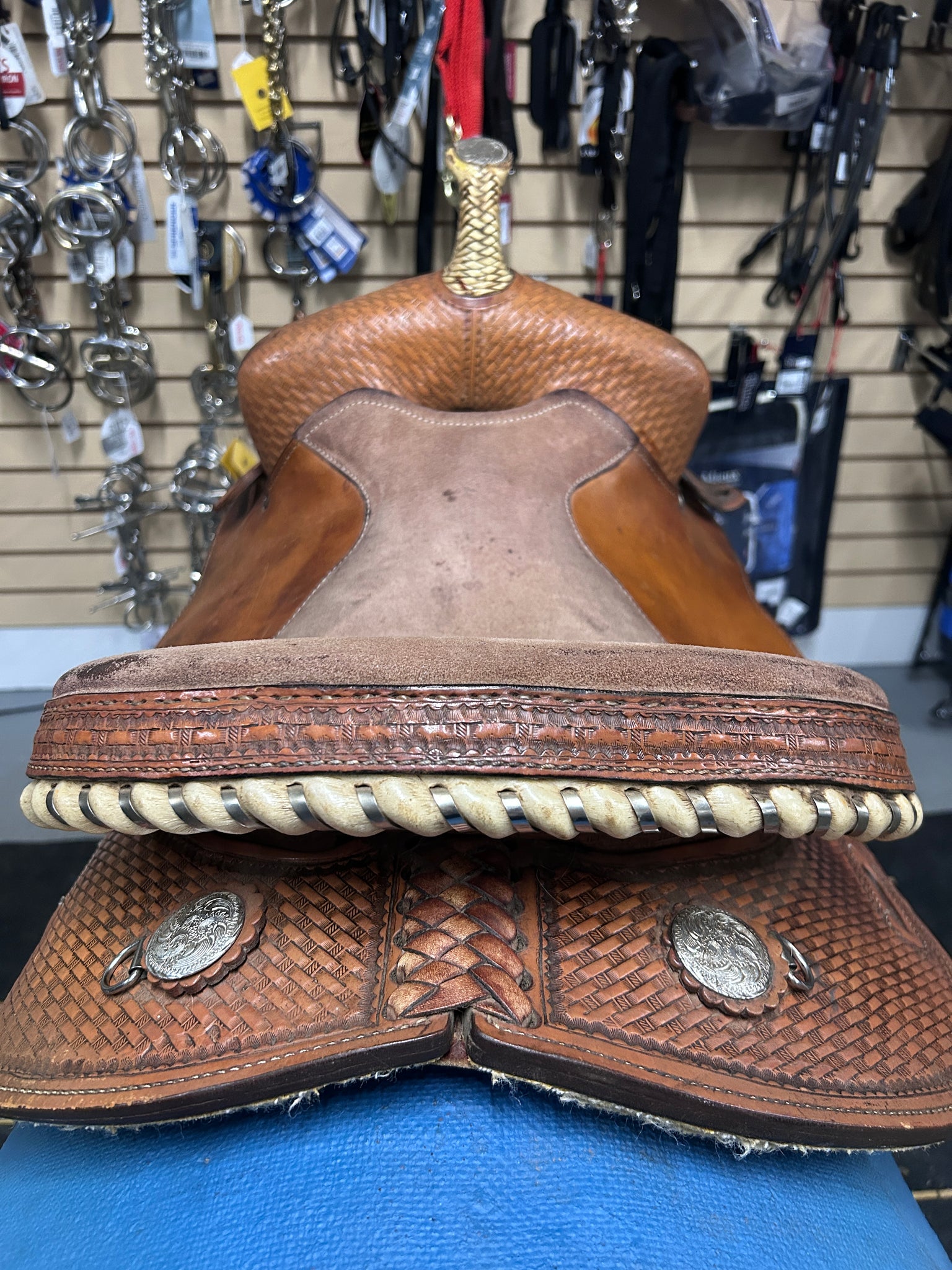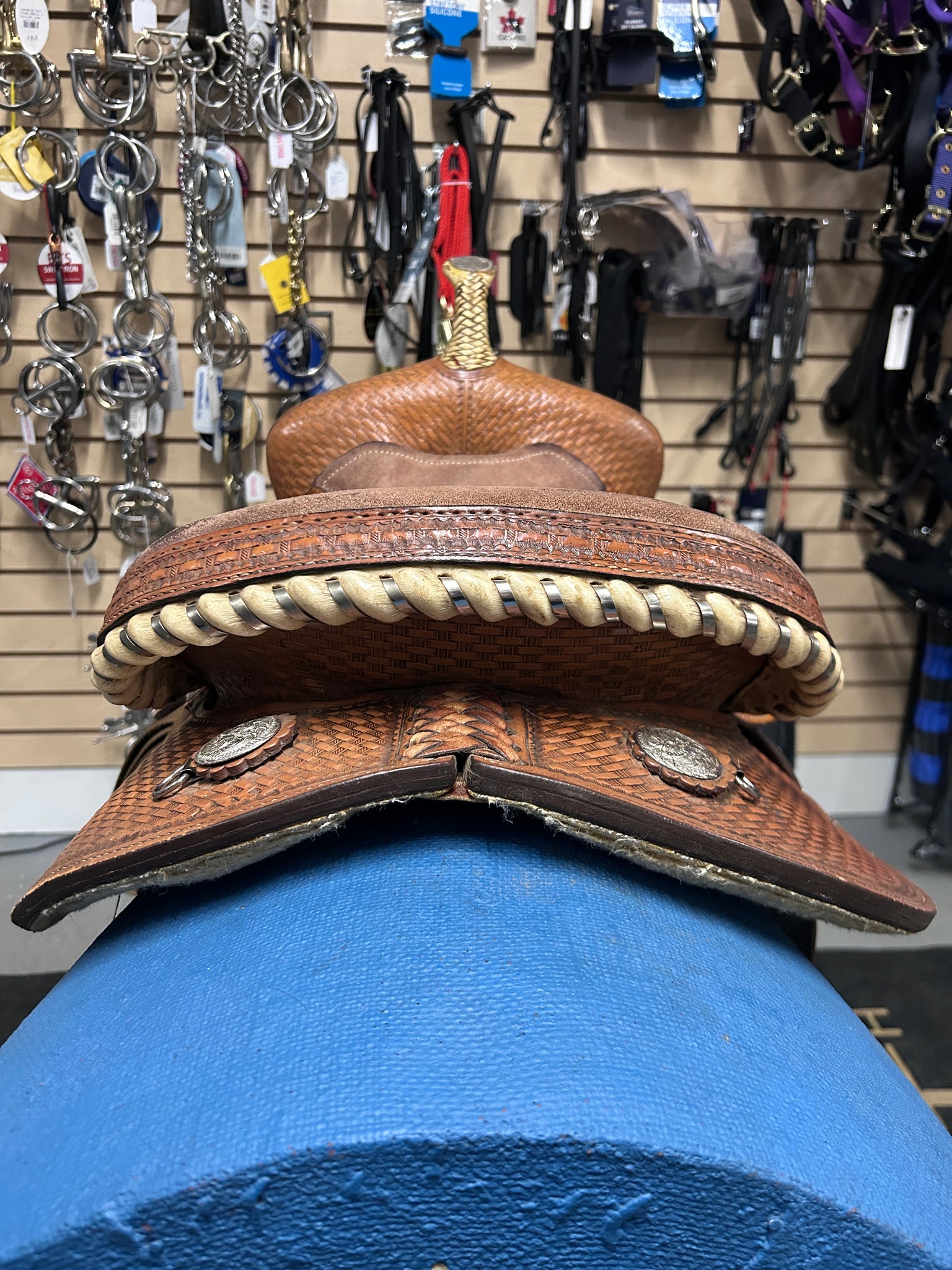 A cute, budget-friendly Western barrel saddle that’s well suited for a pony or shorter-backed horse. With a 14" seat and a compact 23" round skirt, this saddle offers a comfortable fit without excess length, making it a great option where a full-size Western saddle isn’t ideal.