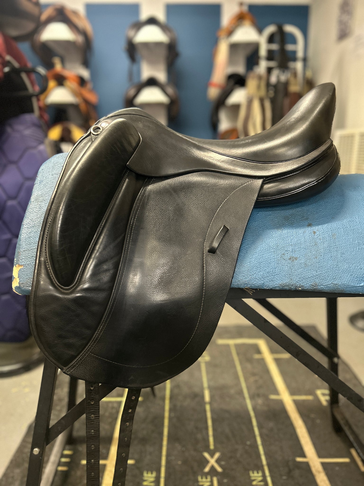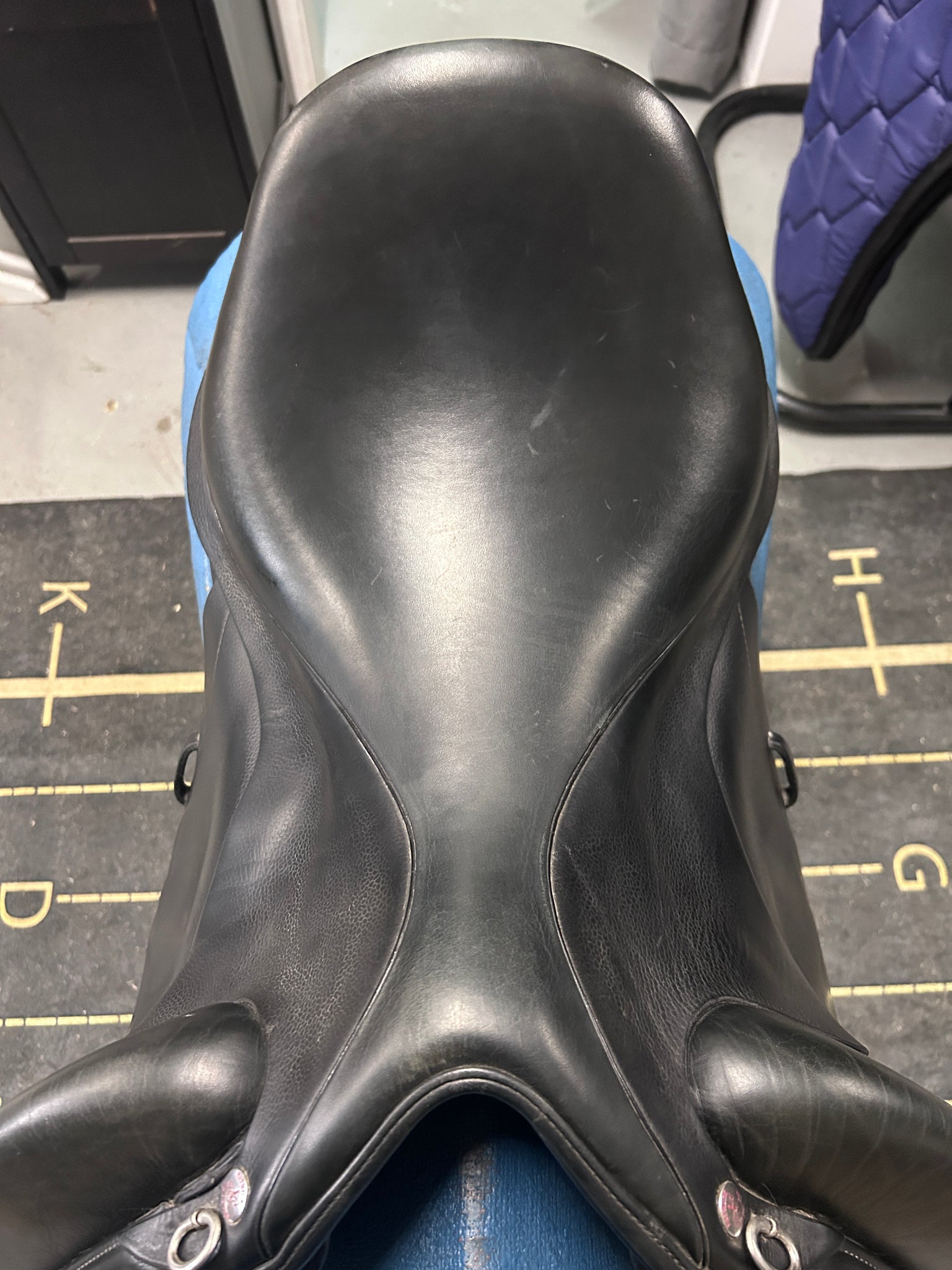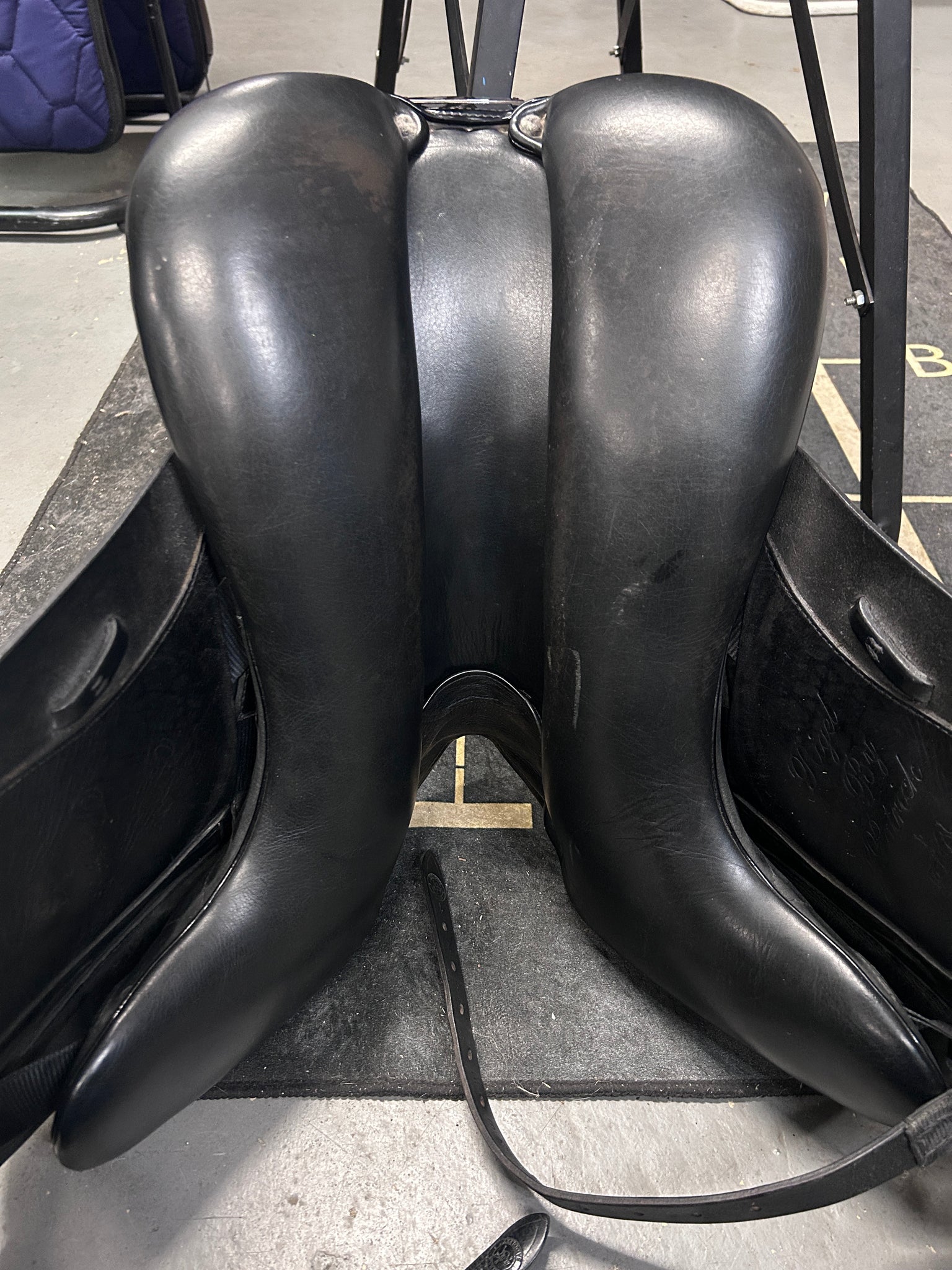 This 2014 Patrick Rigel features a deep seat with standard flaps, making it a versatile fit for many riders. The flap length is approximately 16" from the bottom of the stirrup bar, with a flap width of about 13" at the widest point, offering a comfortable leg position for a range of leg lengths. The close contact monoflap design combined with the exterior thigh blocks gives a secure yet refined feel, ideal for riders who like a more connected and supportive dressage saddle. As a handmade English dressage saddle, it brings together traditional feel and thoughtful design for both horse and rider.