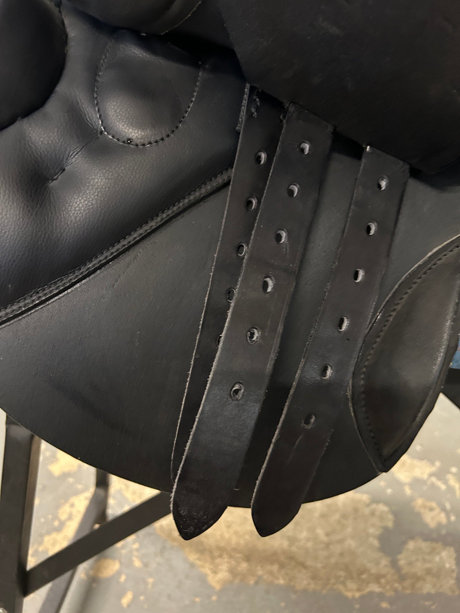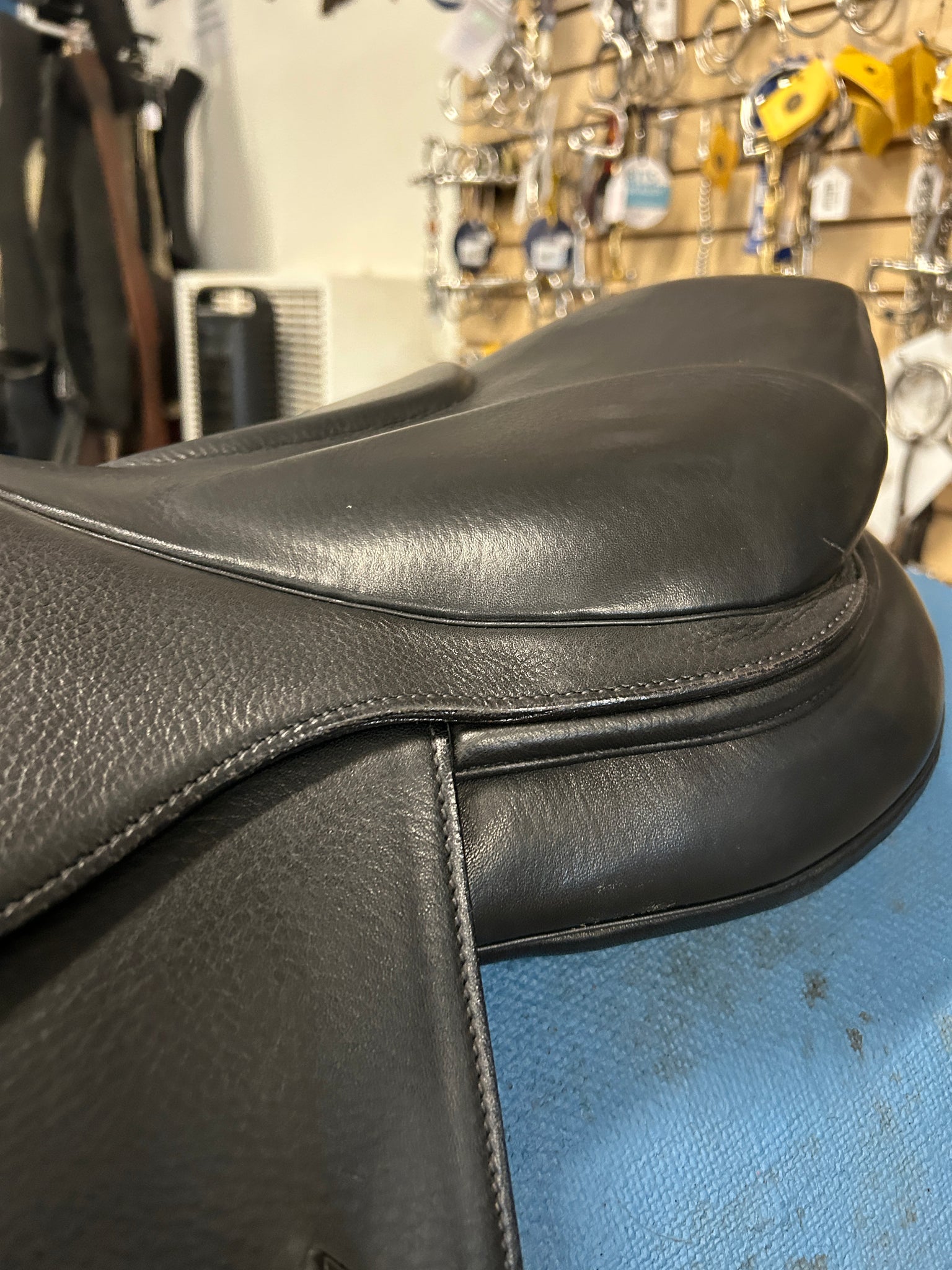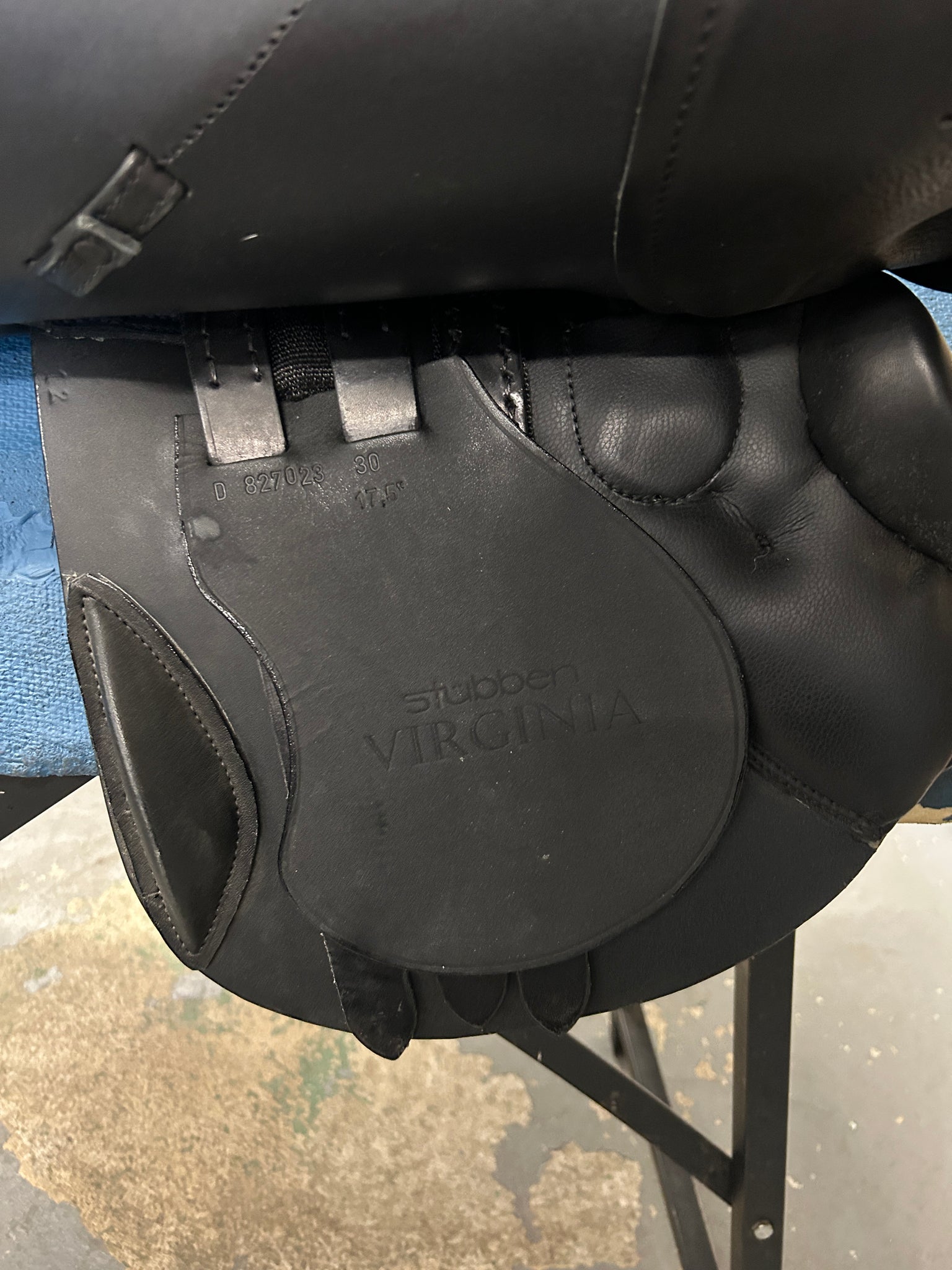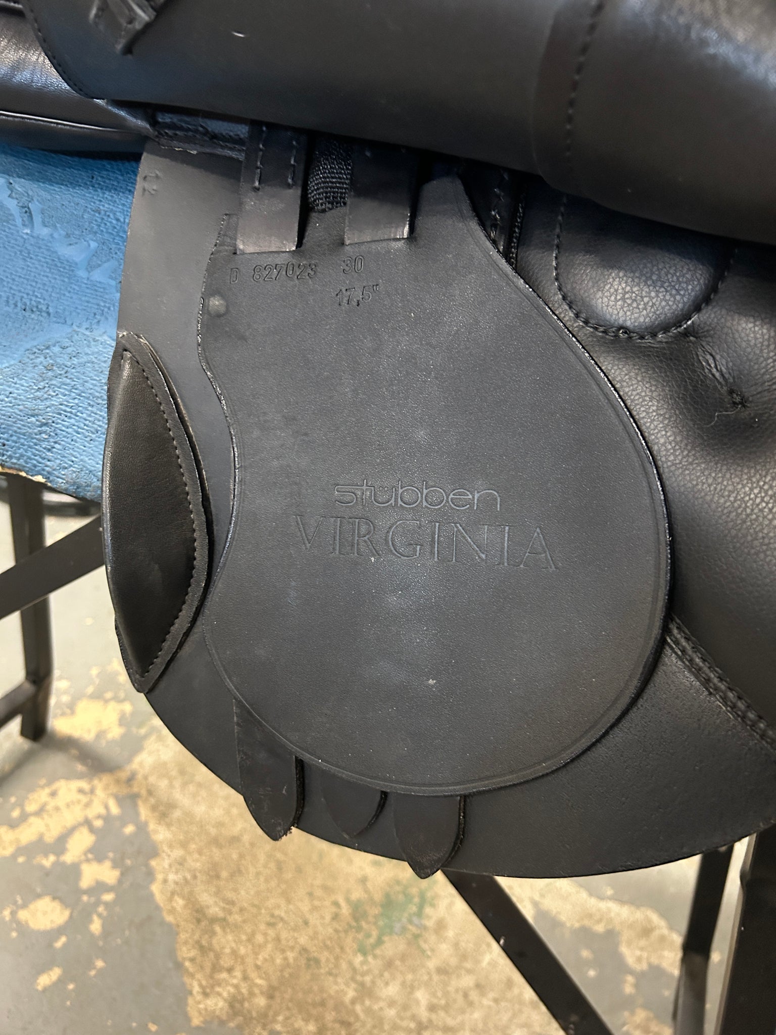 This saddle is pristine and super comfortable! Gorgeous 17.5" Stubben Virginia Black close contact saddle. Designed with both the horse and rider in mind! Built on a 30 cm Spring tree and wool-flocked gusseted panels. Ideal for riders who seek both stability and freedom of movement with a half-deep seat, front and rear blocks, and a Biomex Seat. The Biomex Seat is a patented technology designed to provide healthy, back-relieving sitting and riding. It helps prevent or reduce back pain by offering ergonomic support for the rider.