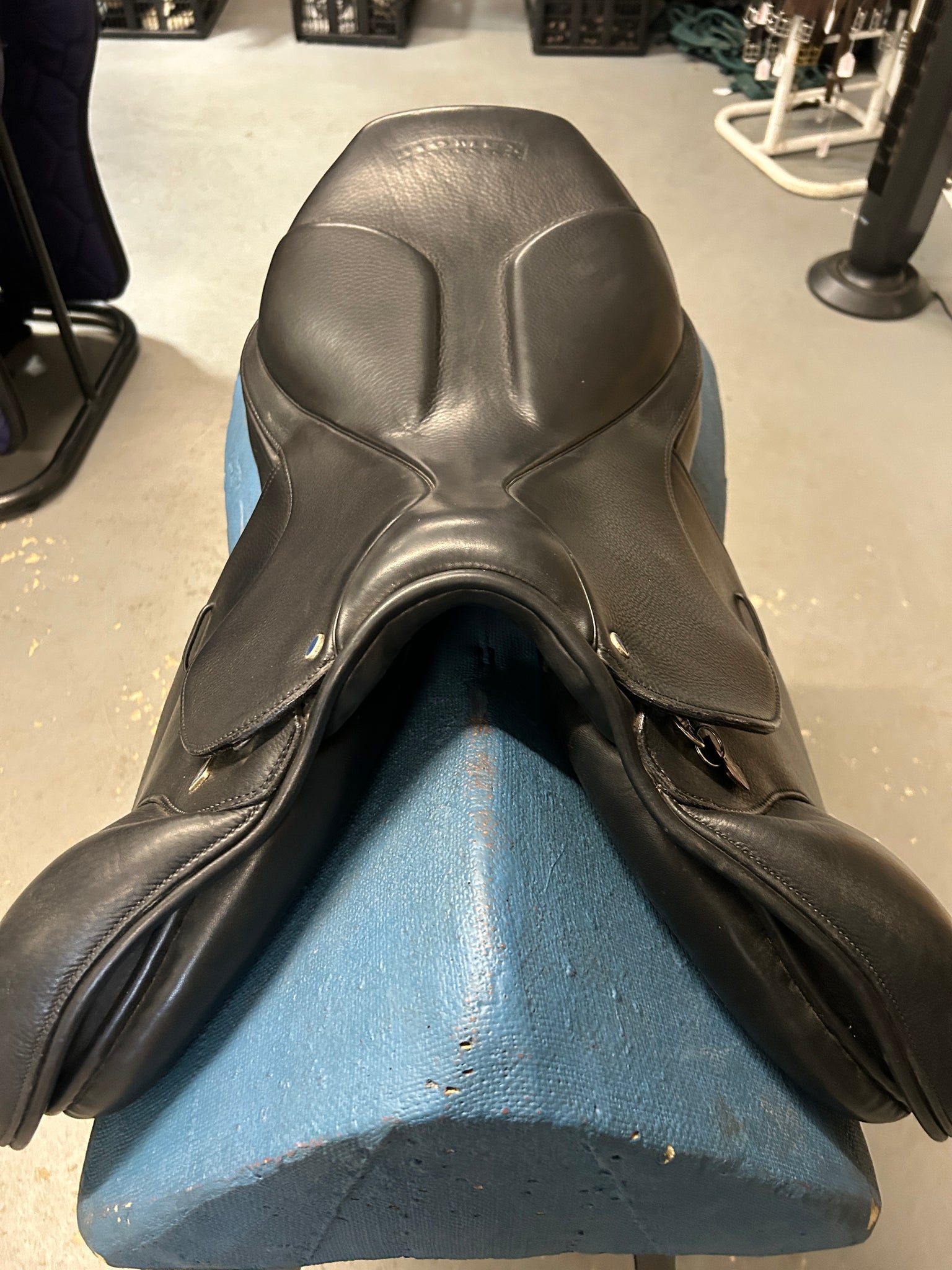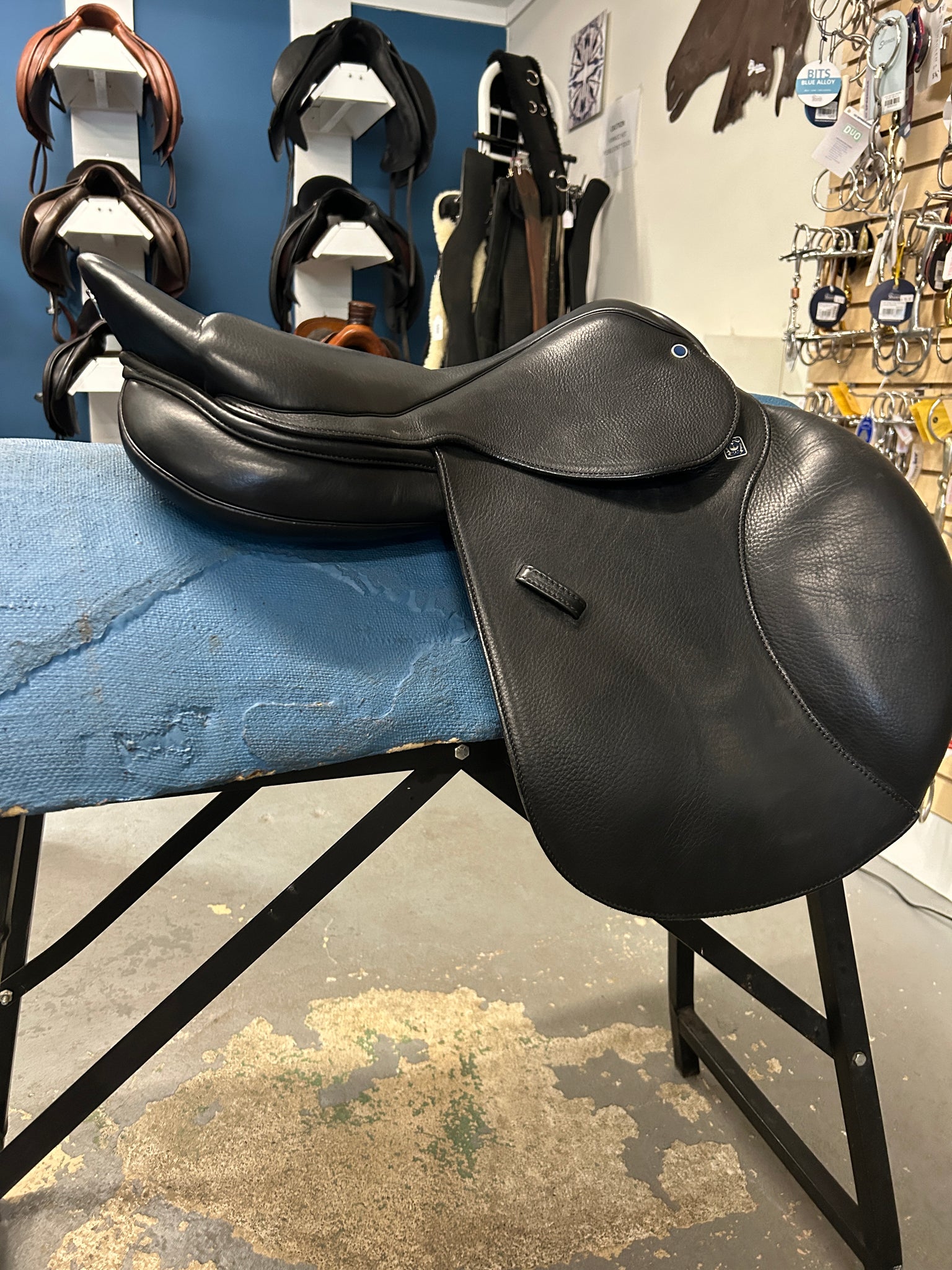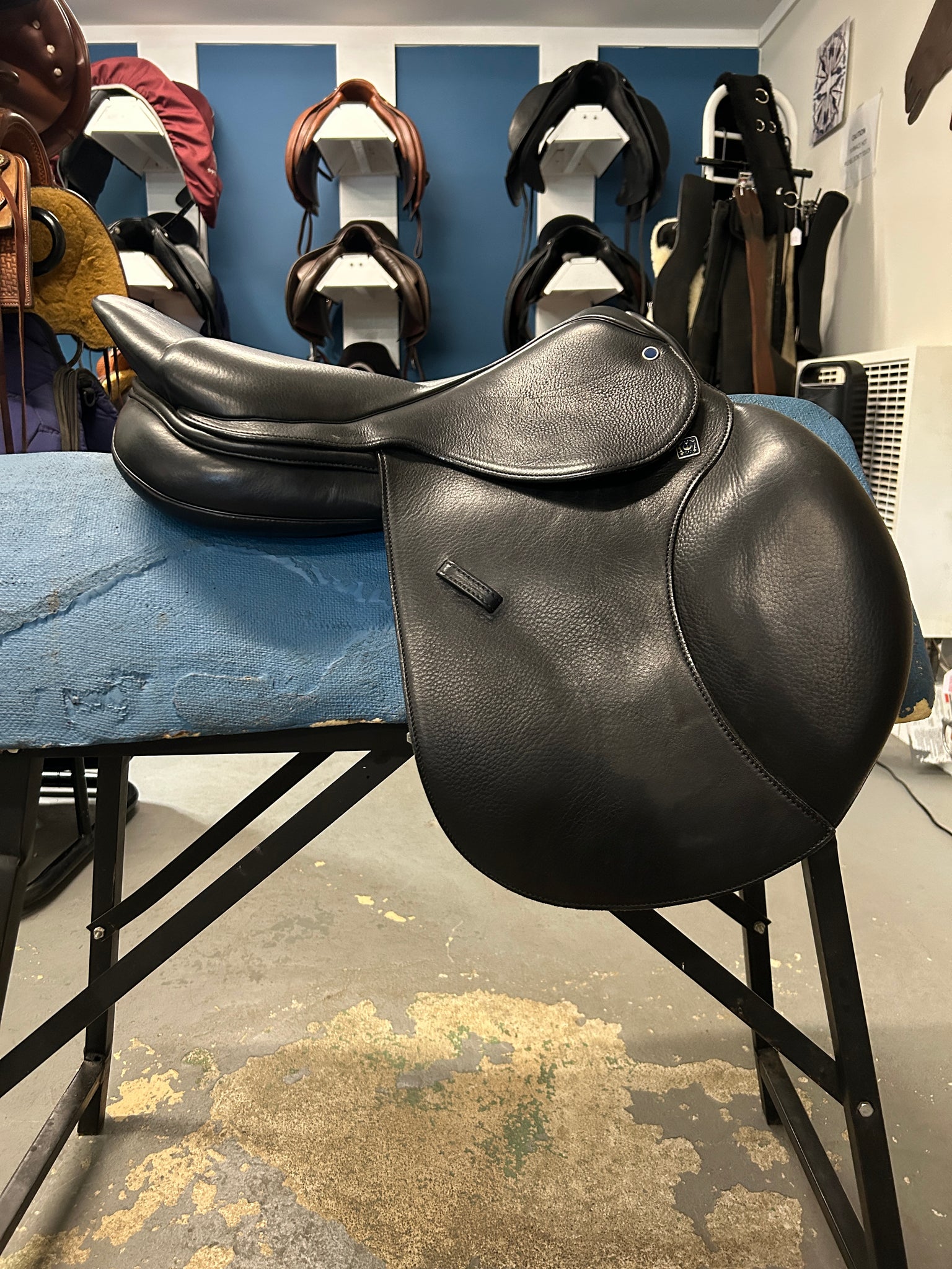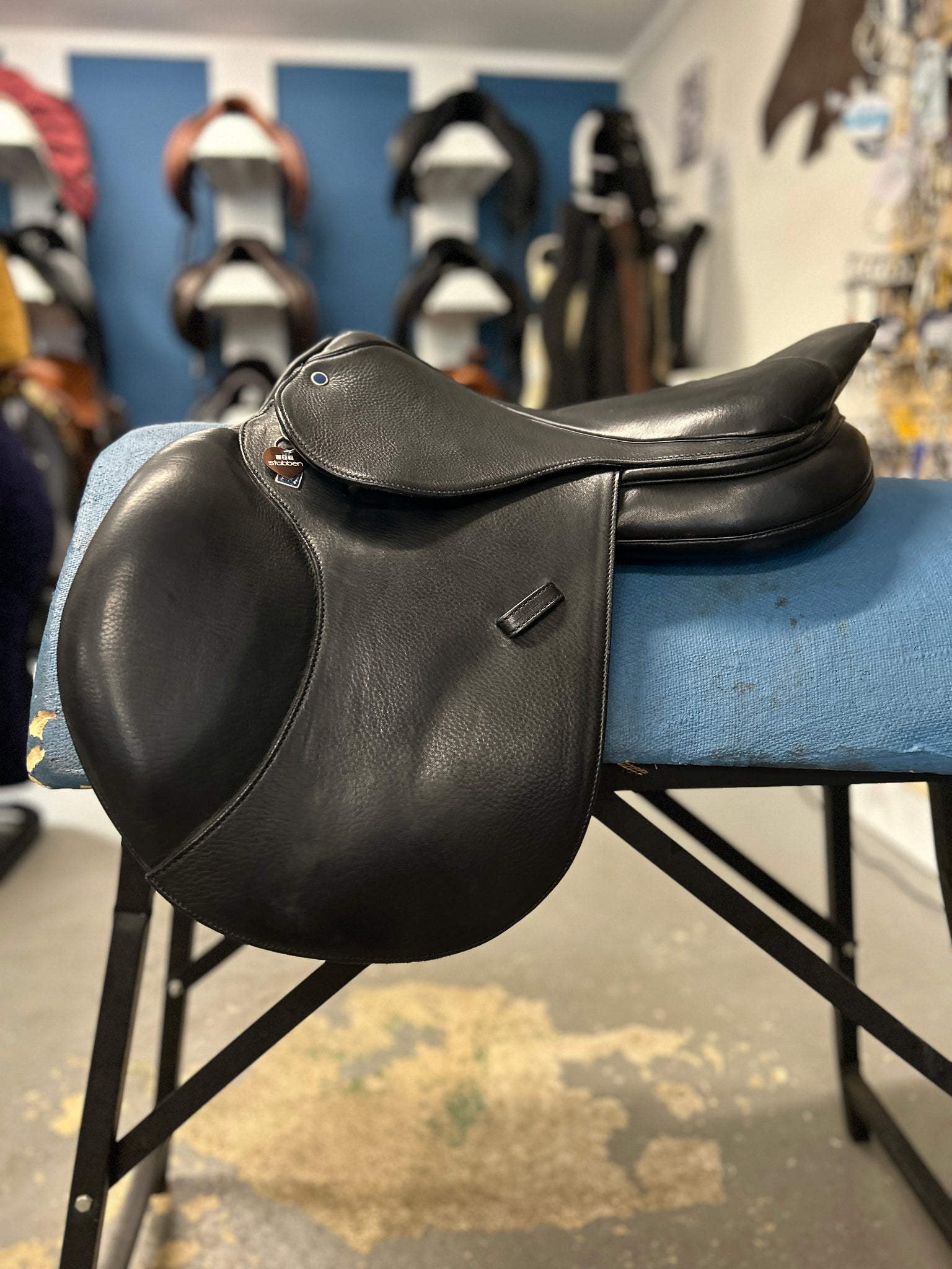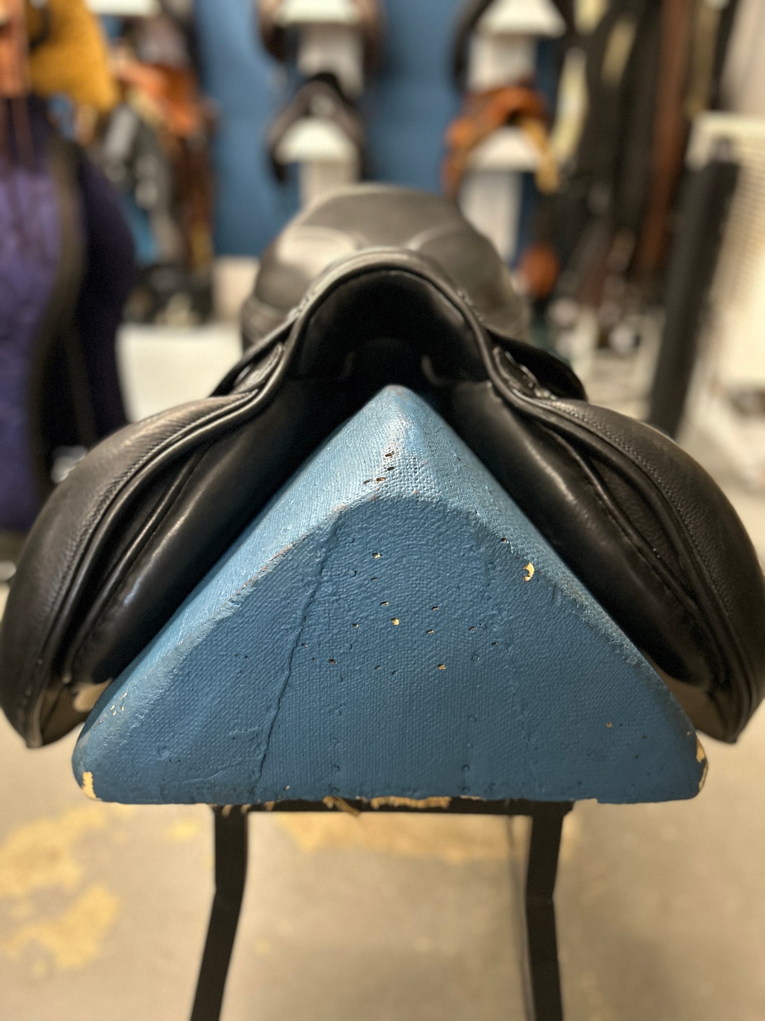 This saddle is pristine and super comfortable! Gorgeous 17.5" Stubben Virginia Black close contact saddle. Designed with both the horse and rider in mind! Built on a 30 cm Spring tree and wool-flocked gusseted panels. Ideal for riders who seek both stability and freedom of movement with a half-deep seat, front and rear blocks, and a Biomex Seat. The Biomex Seat is a patented technology designed to provide healthy, back-relieving sitting and riding. It helps prevent or reduce back pain by offering ergonomic support for the rider.