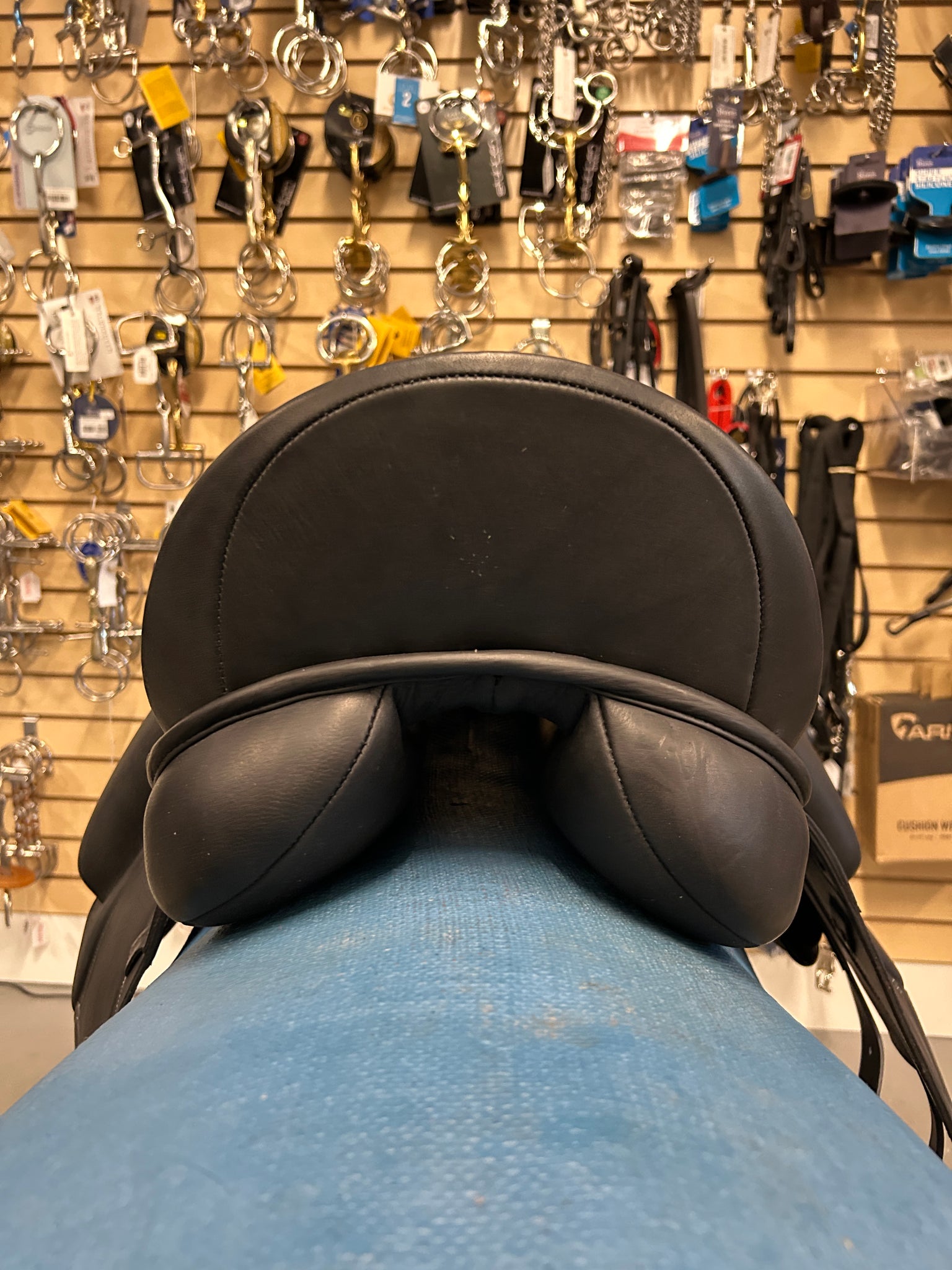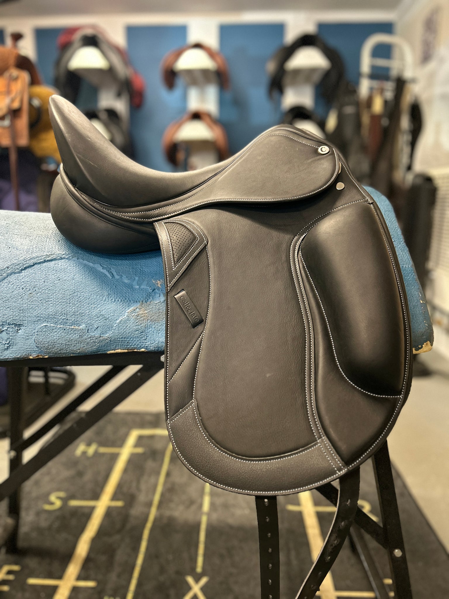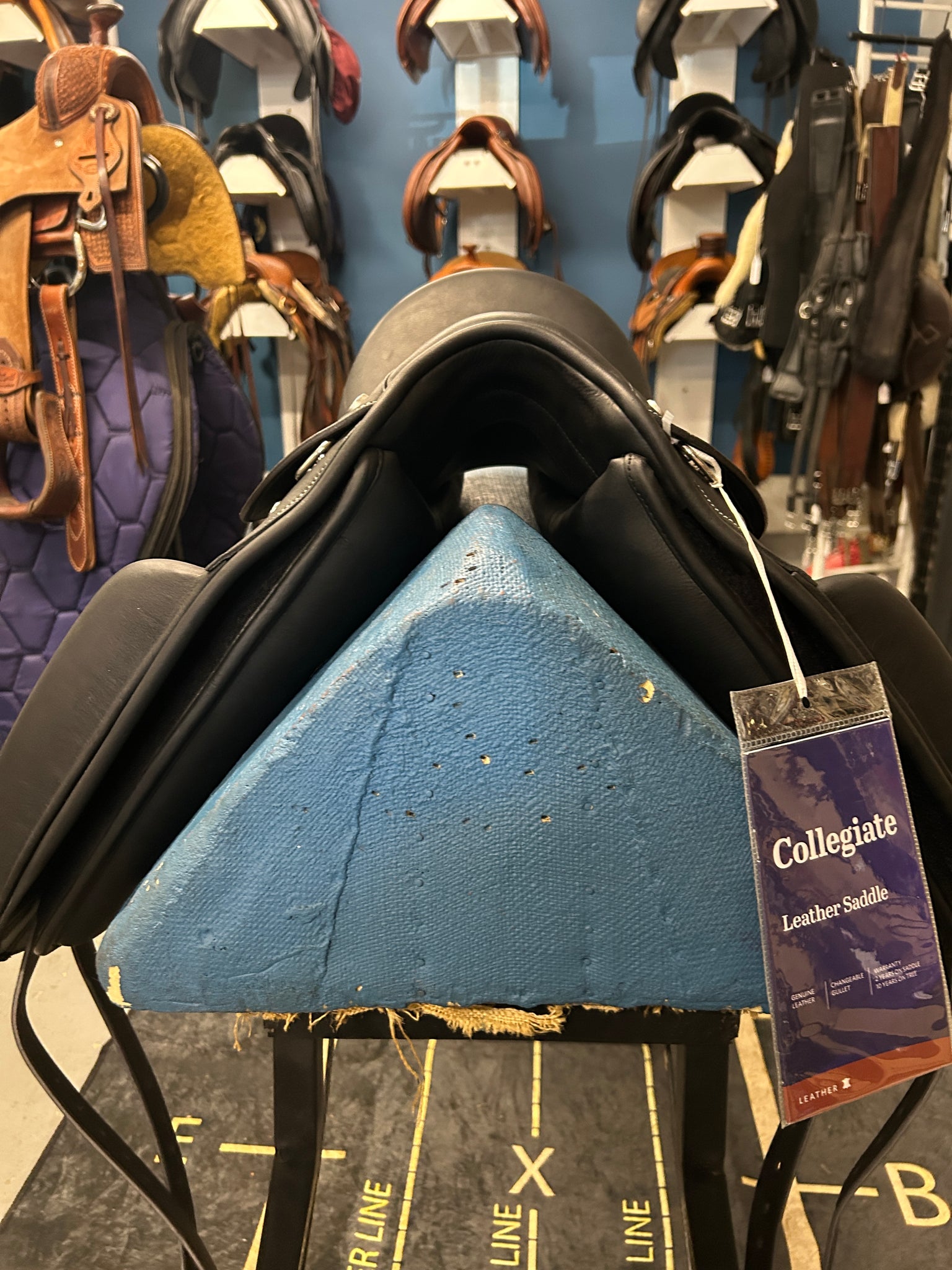 This 17" Collegiate Integrity Mono Dressage Saddle is BRAND NEW with tags! Enjoy a close contact feel between horse and rider thanks to its monoflap design. Generous surface blocks and a deep seat ensure additional rider security. This saddle also features attractive contrast stitching and a leather wear patch. This Collegiate model is compatible with the Opti-Fit Series III gullets, and comes with the Medium.