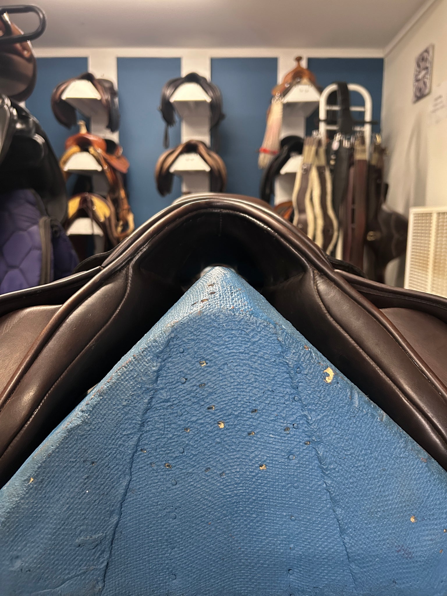 For the rider, well-placed thigh and calf blocks offer security without restricting movement, making this saddle a reliable partner for both flatwork and jumping. Beautifully maintained and crafted in rich dark brown leather, it remains in excellent condition, showcasing Albion’s reputation for quality and longevity.