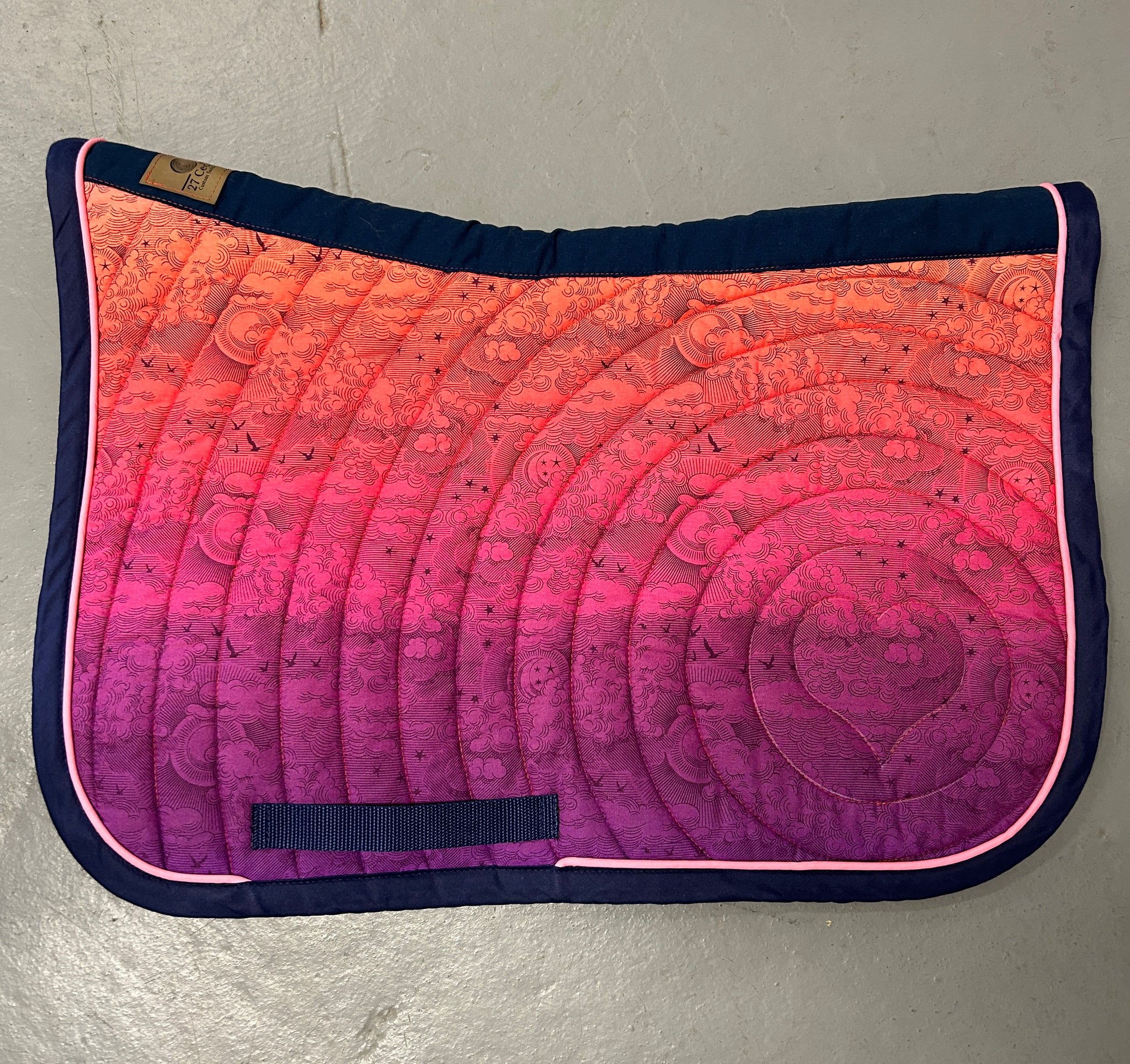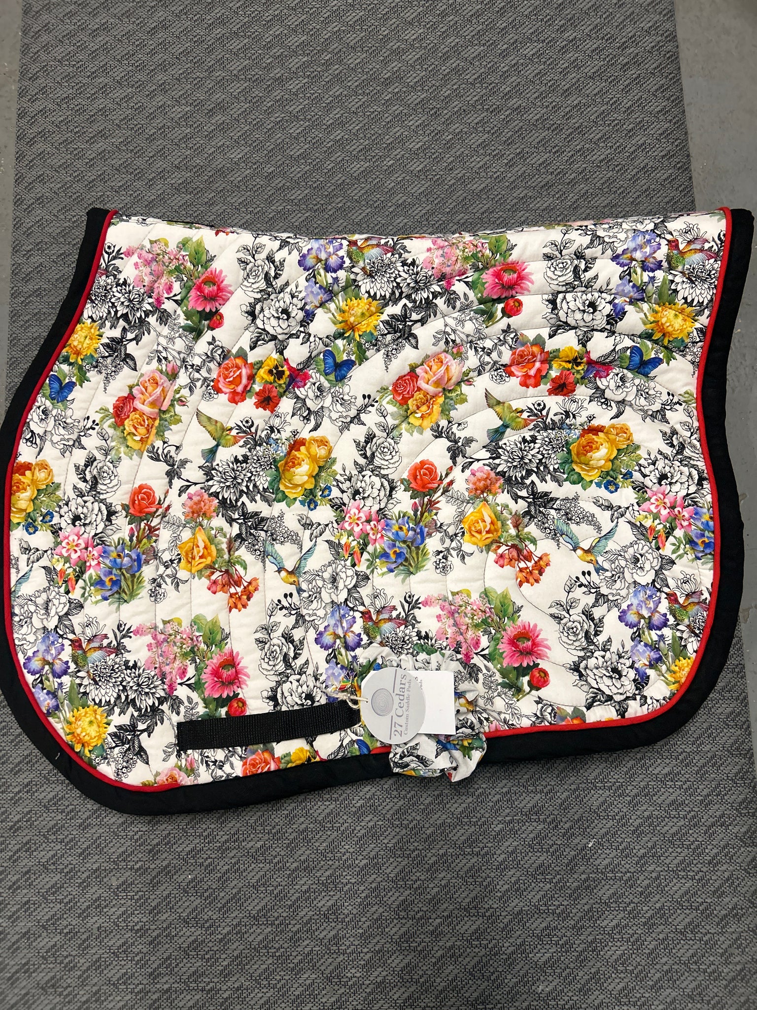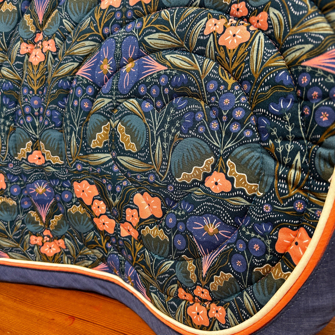 27 Cedar Saddle pads are hand crafted with pure cotton diaper flannel on the bottom. This washes really well, is hypoallergenic, prevents sliding, soft for the horse and allows for an easy saddle fit check after every ride. Diaper flannel is really high percale cotton that has traditionally been used to transfer moisture away from children. It’s found another perfectly adapted use for our equine sports!