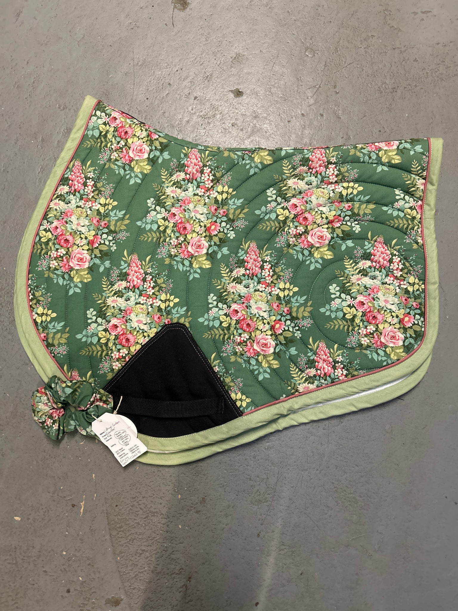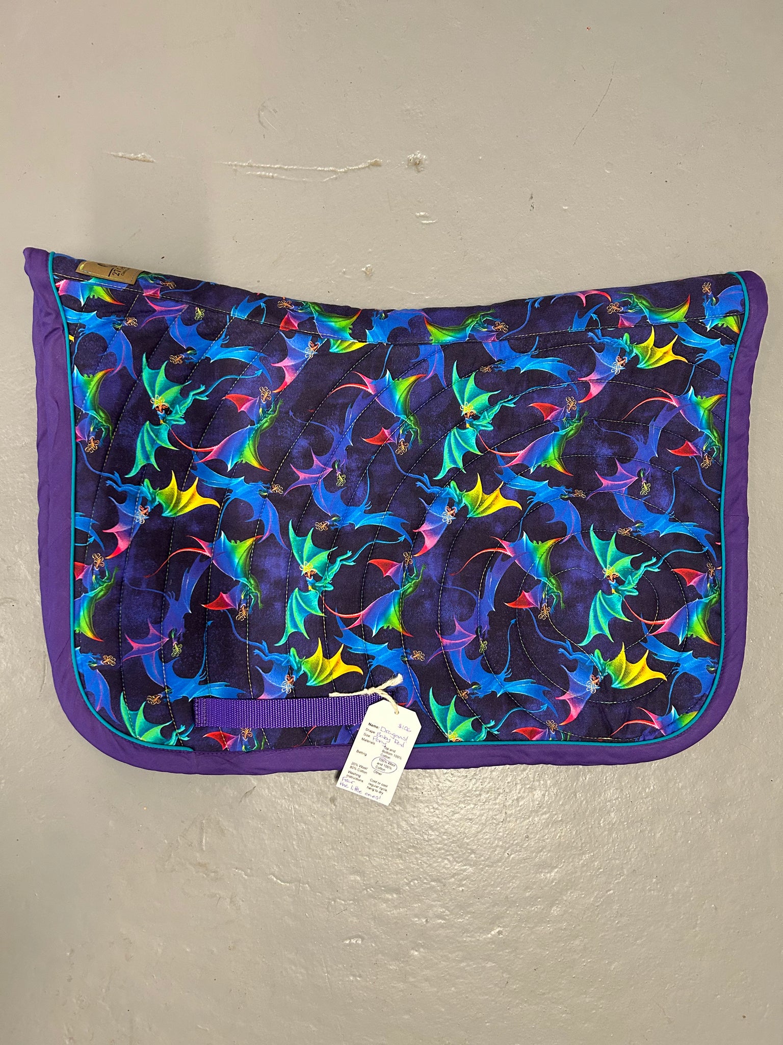 The English pads are made with a sandwich of cotton-wool-cotton to make the pads as long lasting and breathable as possible. The cotton layers next to the horse absorbs moisture and the wool pulls it away to the top layer of cotton to be dissipated by evaporation. This keeps horses dryer and happier without any heat or sweat being trapped under the pad.