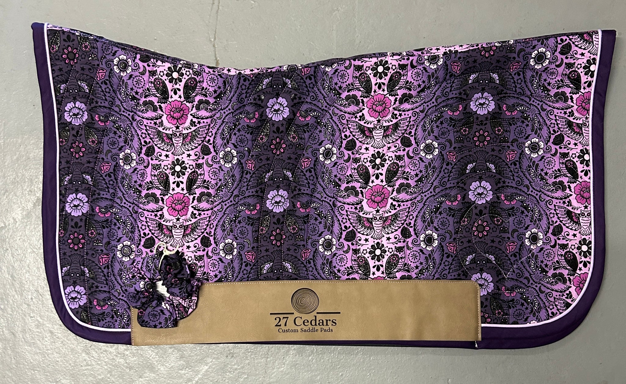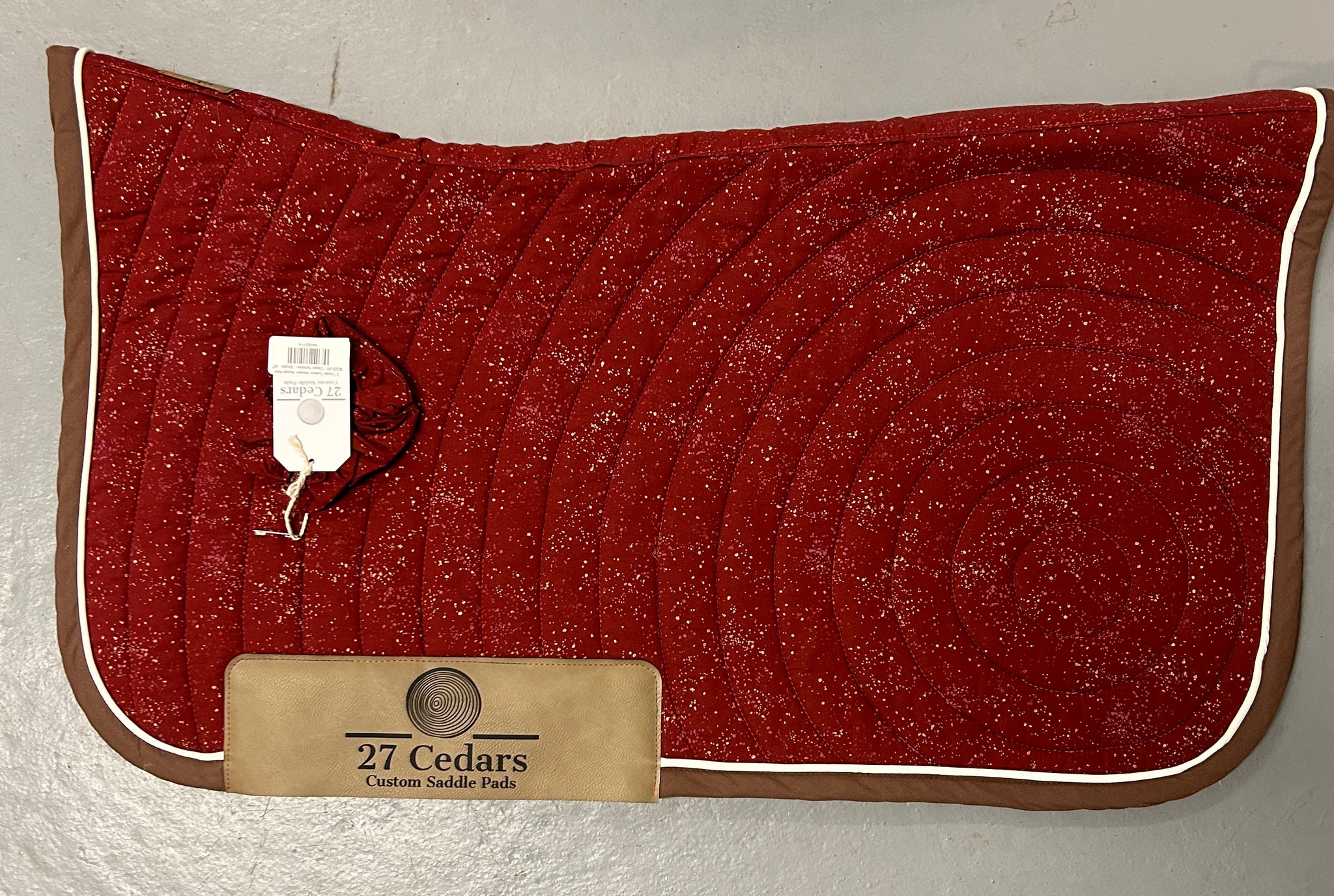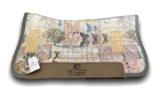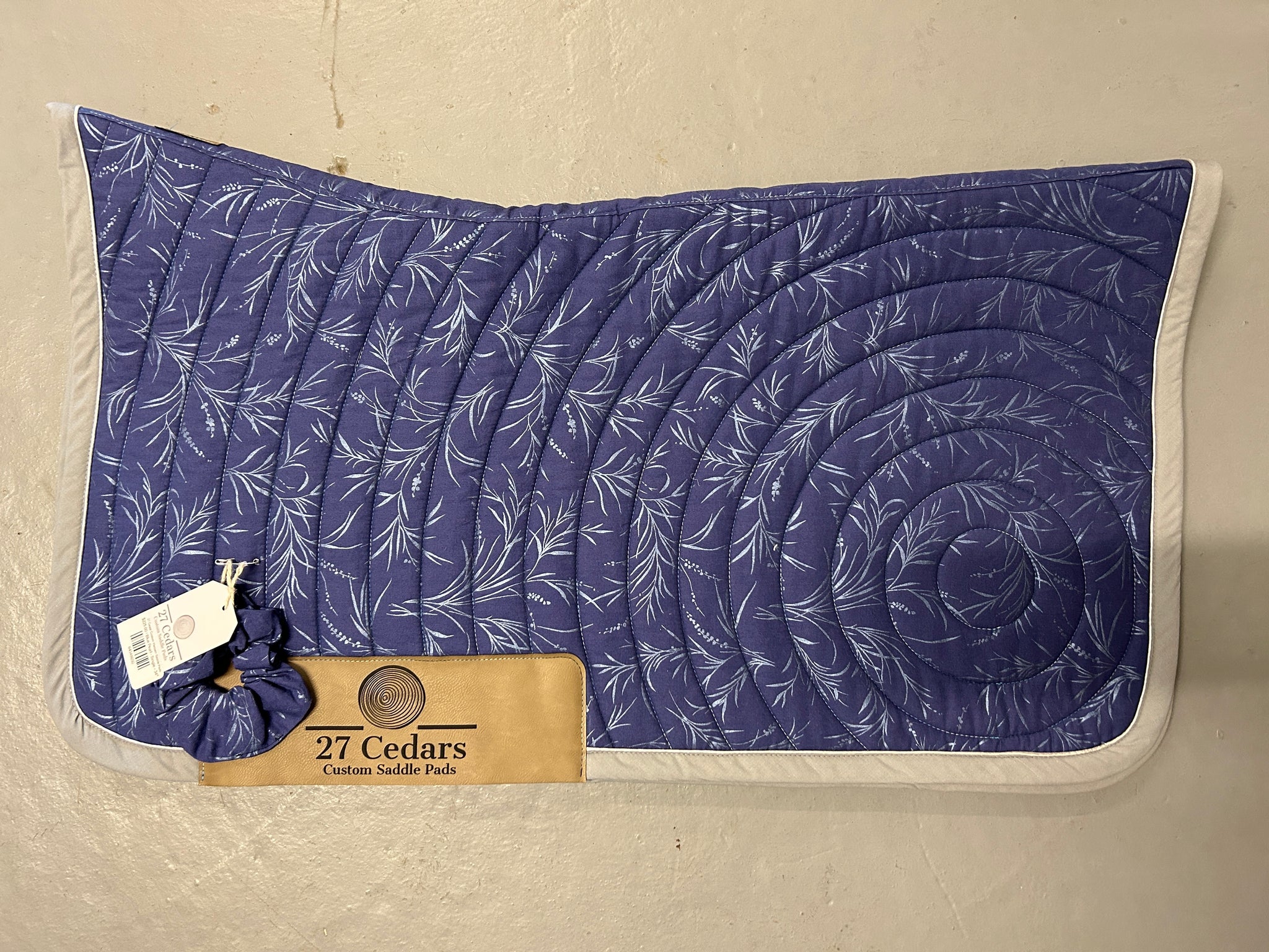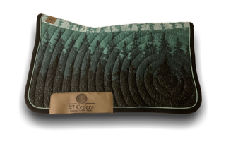 27 Cedar Saddle pads are hand crafted with pure cotton diaper flannel on the bottom. This washes really well, is hypoallergenic, prevents sliding, soft for the horse and allows for an easy saddle fit check after every ride. Diaper flannel is really high percale cotton that has traditionally been used to transfer moisture away from children. It’s found another perfectly adapted use for our equine sports!