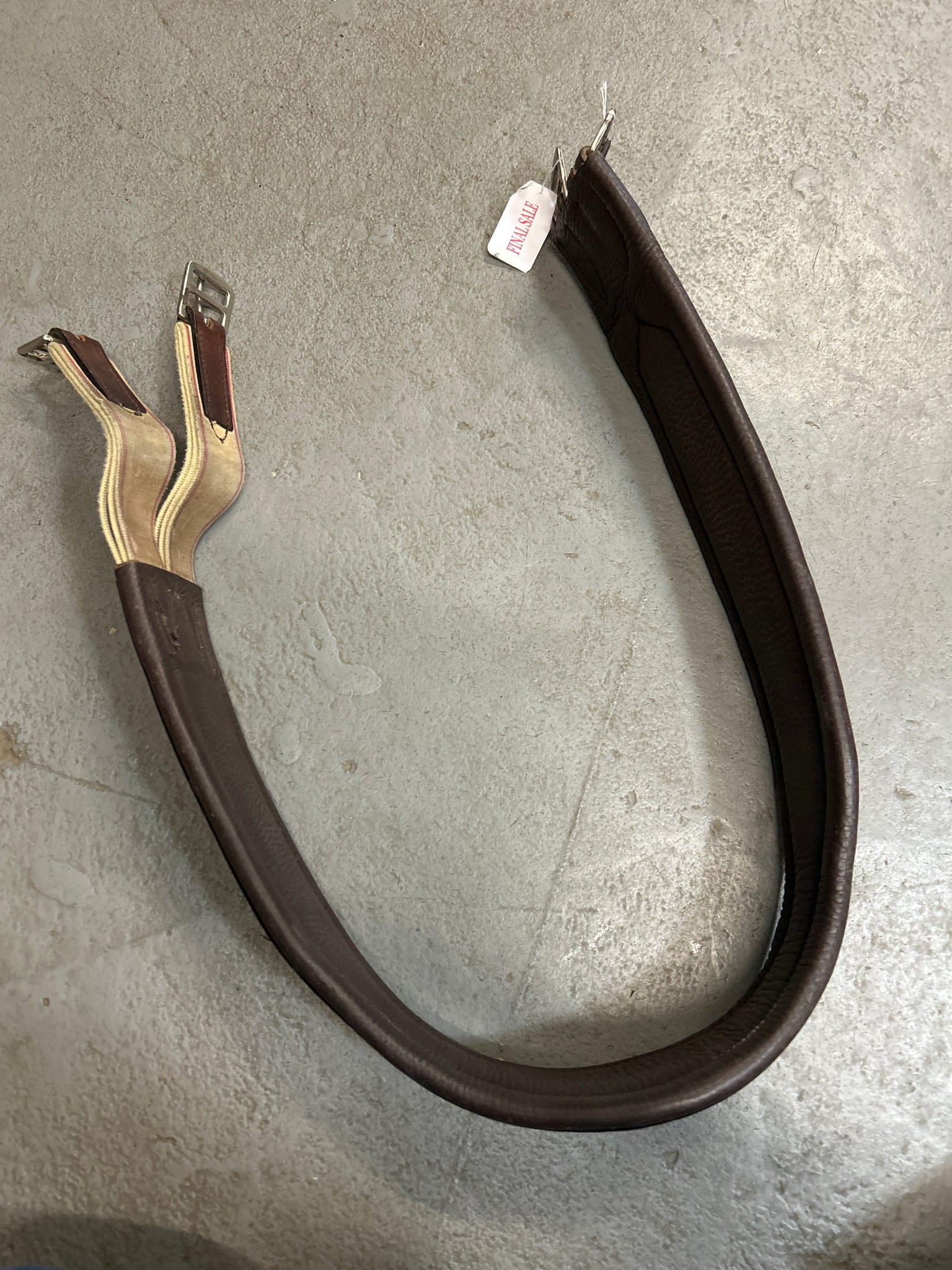 Older Padded Leather Girth, Stamped 48". Elastics on one side. No Roller Buckles.