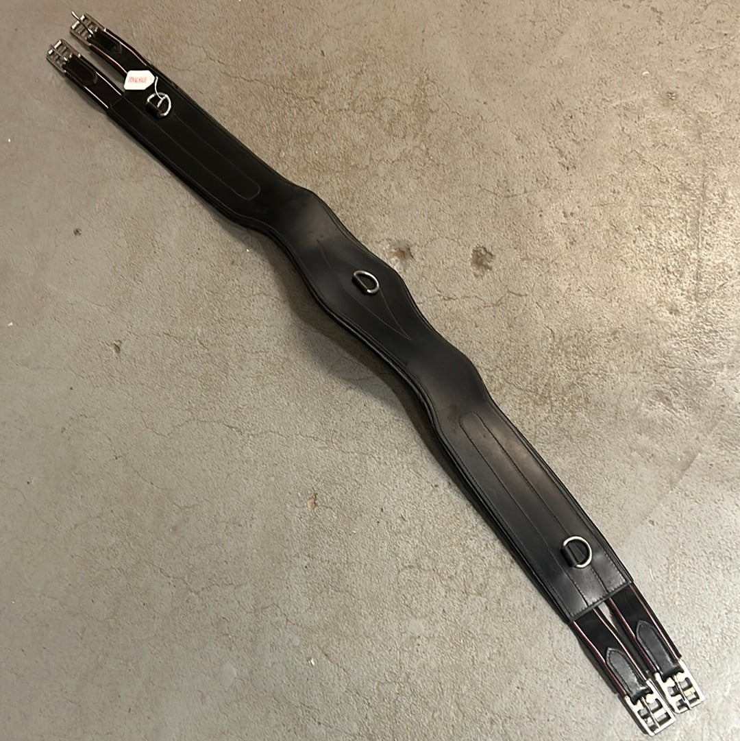Black Automatic Shaped Leather Girth. Elastics on both sides.