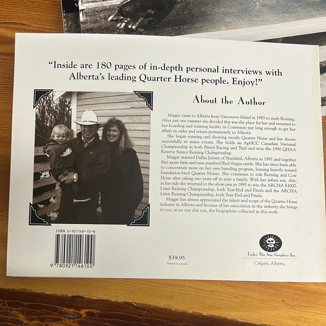 Maggie has always appreciated the talent and scope of the Quarter Horse industry in Alberta and because of her association in the industry she brings you, as no one else can, the biographies collected in this work.