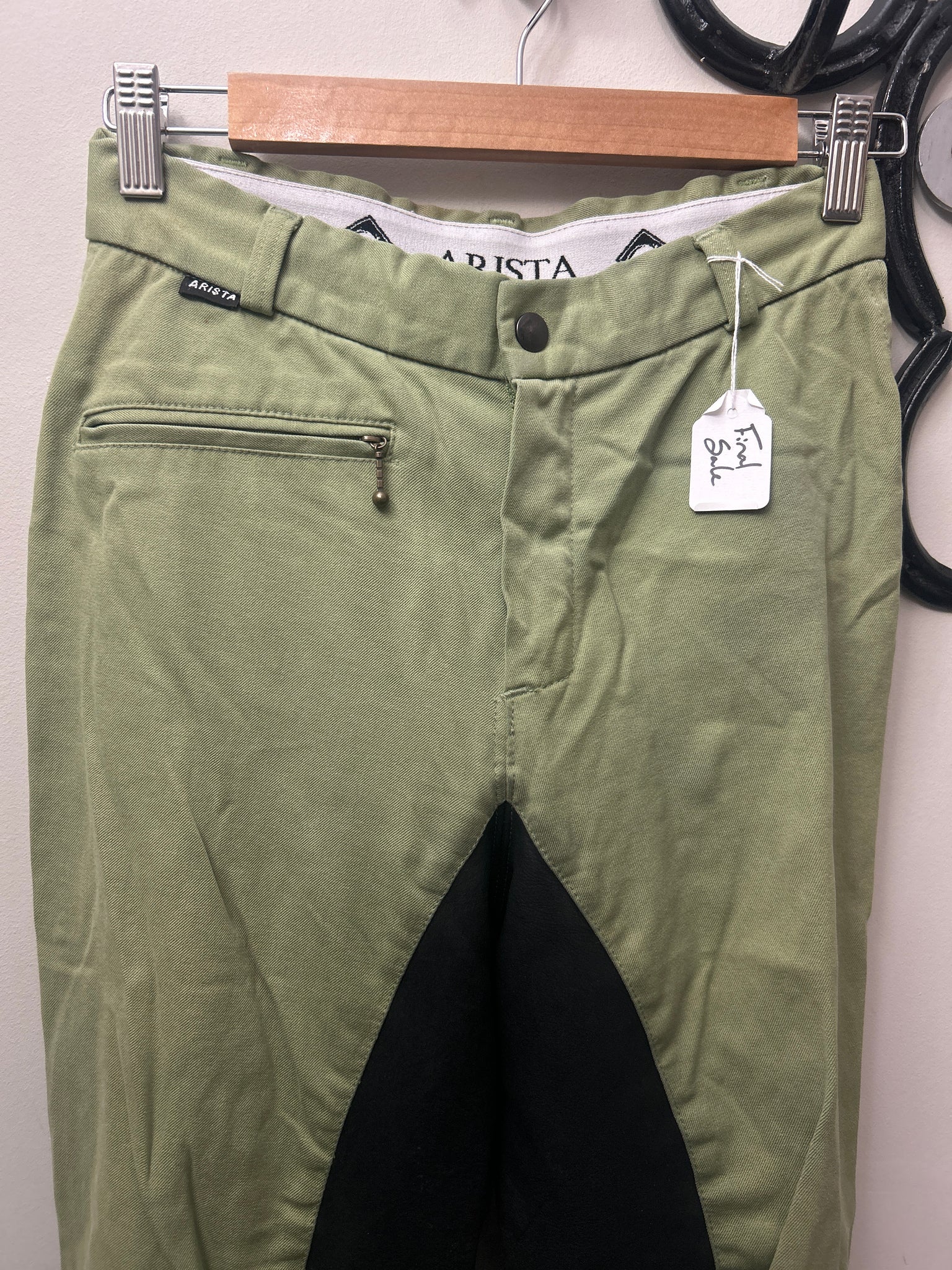 Hard to find Leather Full Seat Breeches! Arista Olive Green with black leather seat. Size 26Tall.