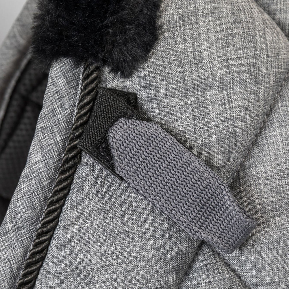 The pad shape features an extra high chamber for optimal freedom of movement at the withers. Trimmed with cord and a leather-look badge on the left with the Back on Track® logo in brushed metal. Faux fur at the withers and equipped with D ring straps for attachment to the saddle. The advantage to this is that there are no pressure points on the shoulder that can occur with traditional saddle pads. The saddle pad has a moisture-permeable waffle textile and shock-absorbing polyfill filling.