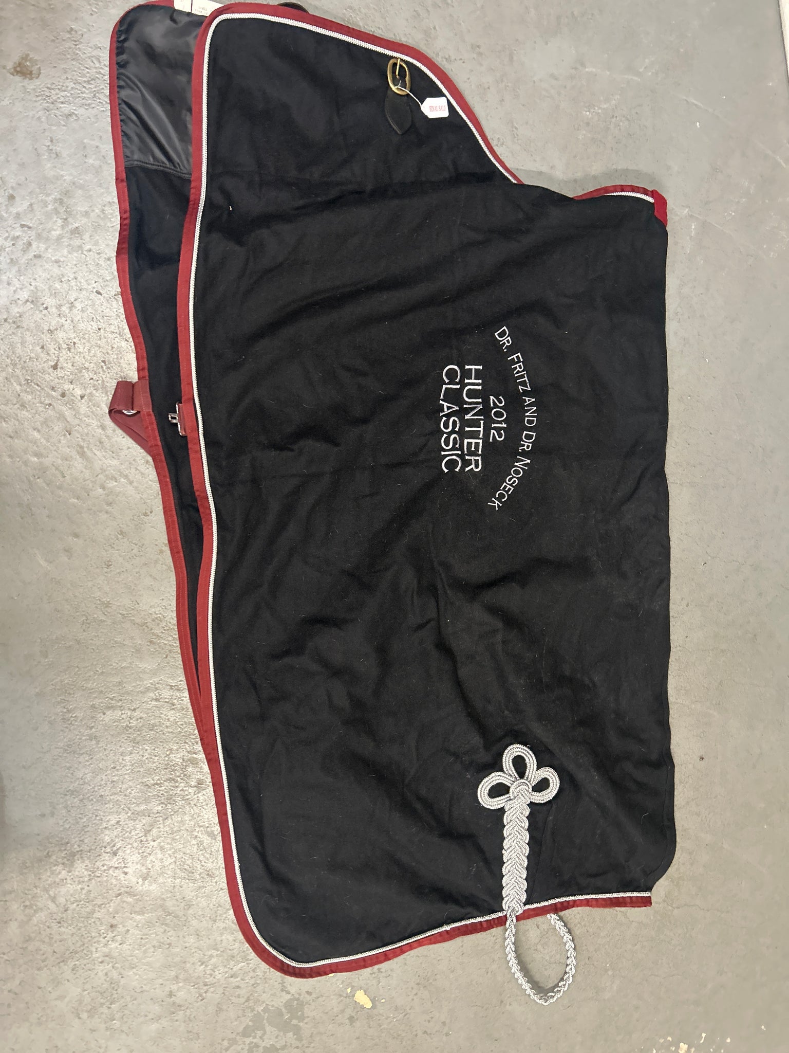 Black Wool Cooler with Burgundy Trim. Cob Size for 66" - 70". Embroidered with Dr. Fritz and Dr. Noseck 2012 Hunter Classic.
