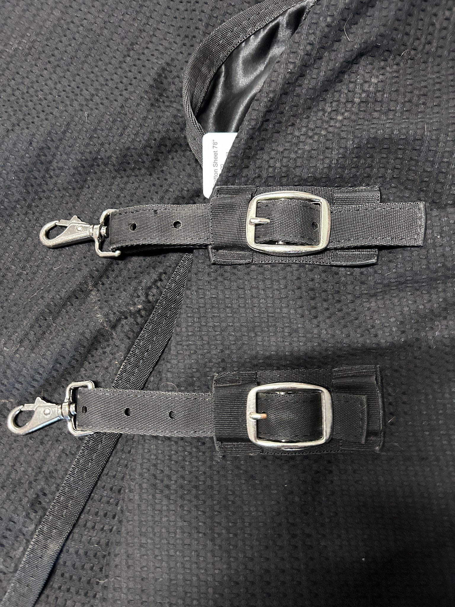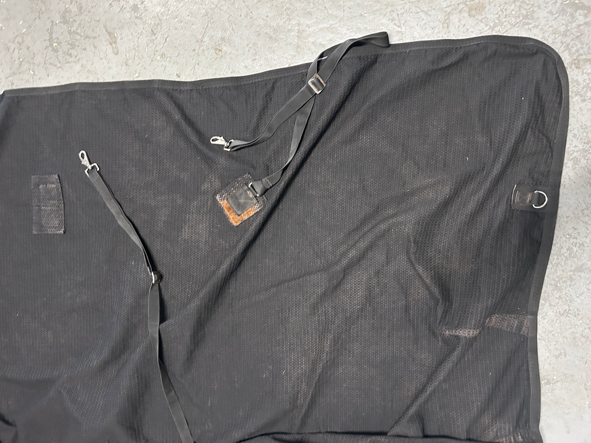 Black Cotton Waffle Dress Sheet. Perfect for horse shows to keep your horse clean. Good used condition. No rips or tears but a few brown hairs inside.
