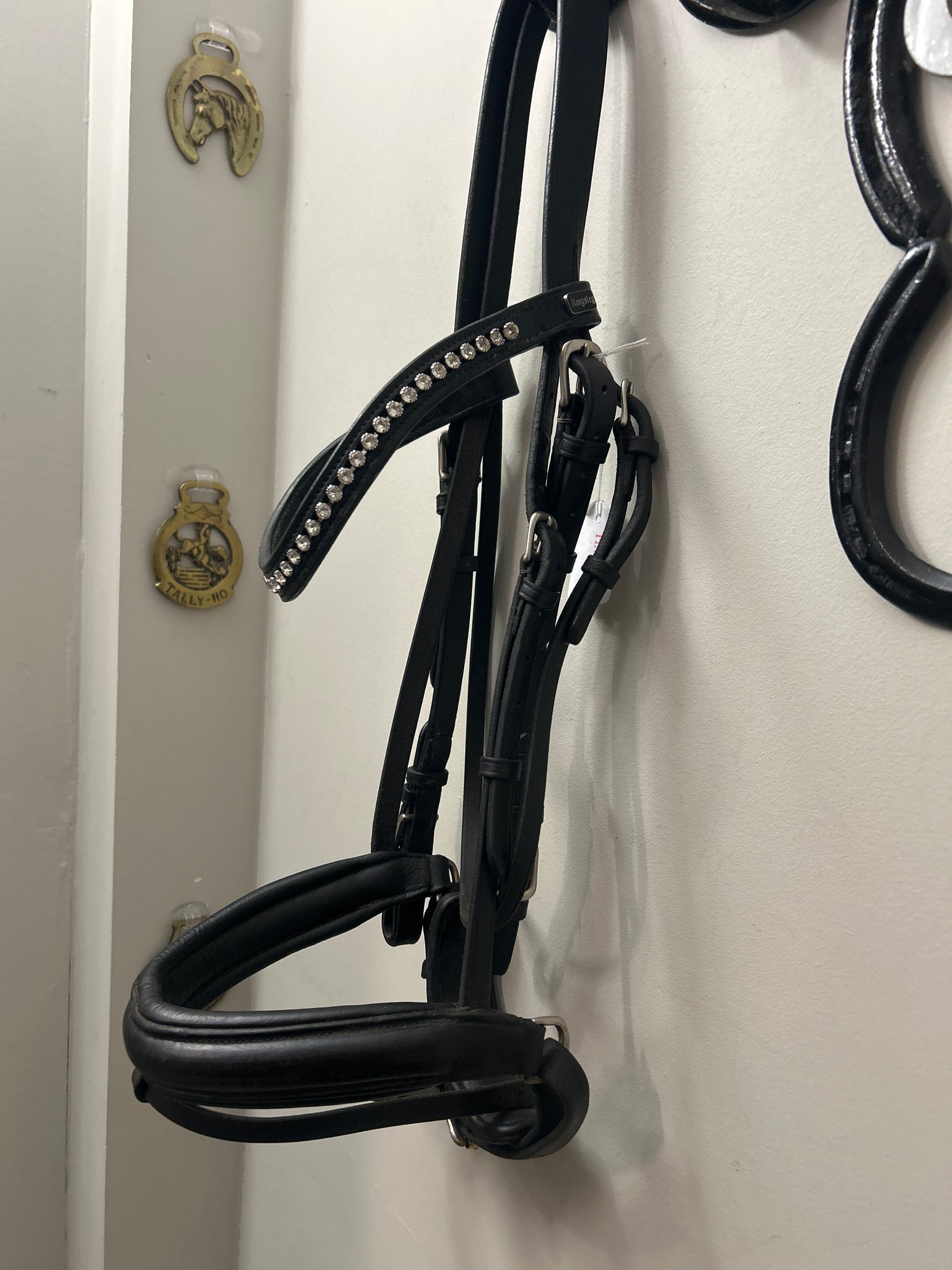 A timeless piece from Bobby’s English Tack, this dressage bridle blends classic craftsmanship with a touch of modern sparkle. Crafted from high-quality leather, it offers durability, comfort, and elegant style in one.
