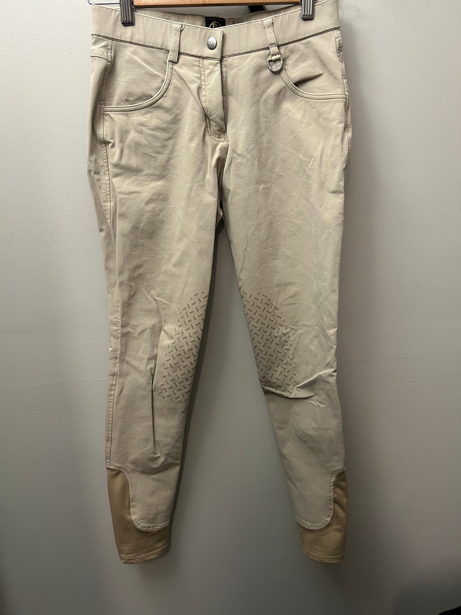 BR Tan Knee Patch Breeches. It has some pilling on the seat. Other than that in great shape! Silicone knee patches.