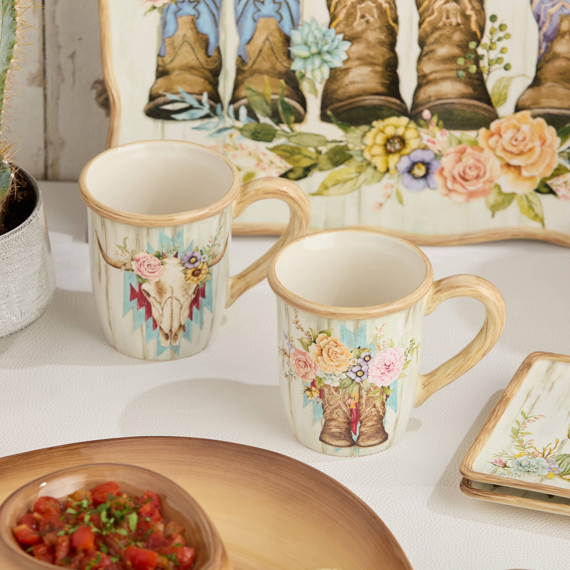 Bring a touch of the West to your morning routine with the Rosewood Ranch Mug Collection by Certified International. Each 14 oz. ceramic mug features its own unique countryside design—rich with color, charm, and rustic flair.