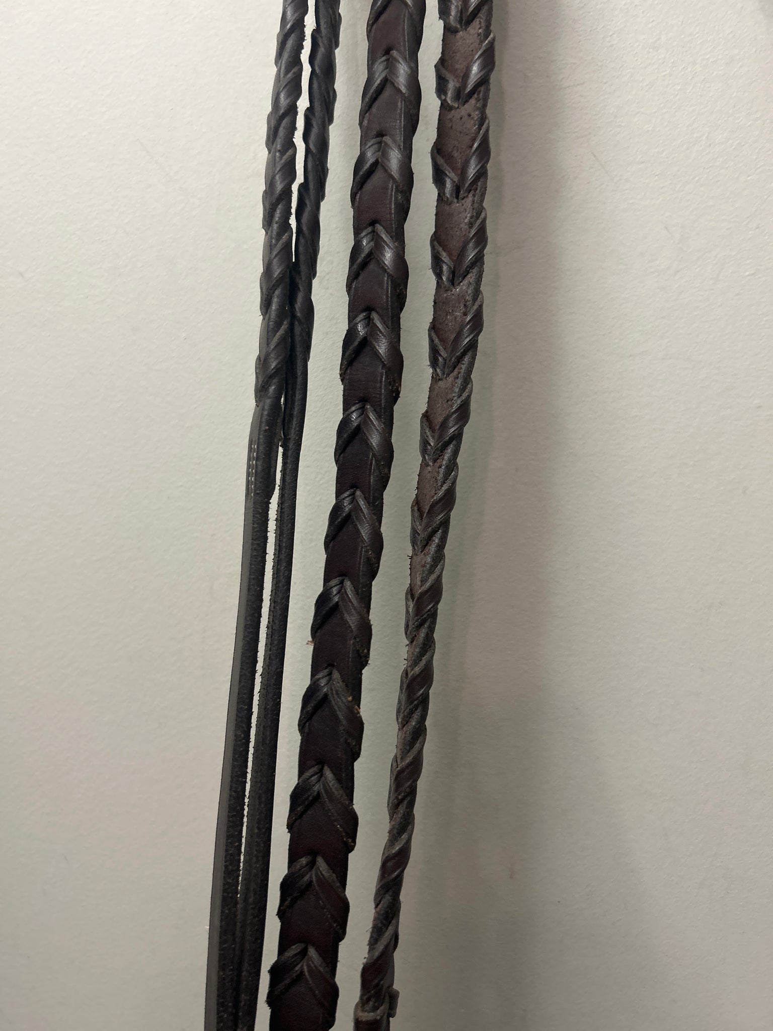 English Brown Laced Leather Reins. Extra Long. 58". Good Used Condition.