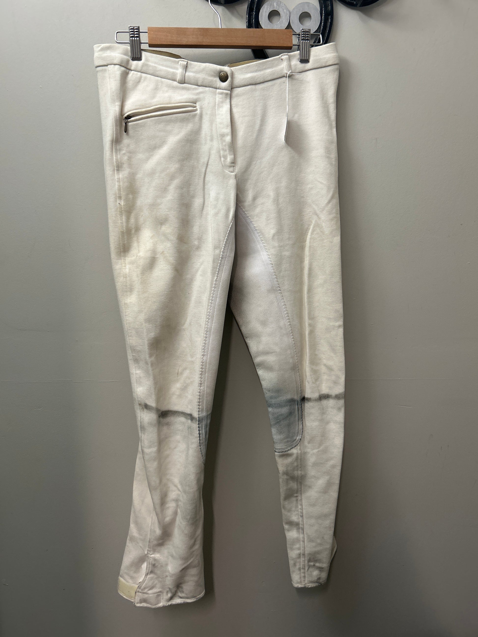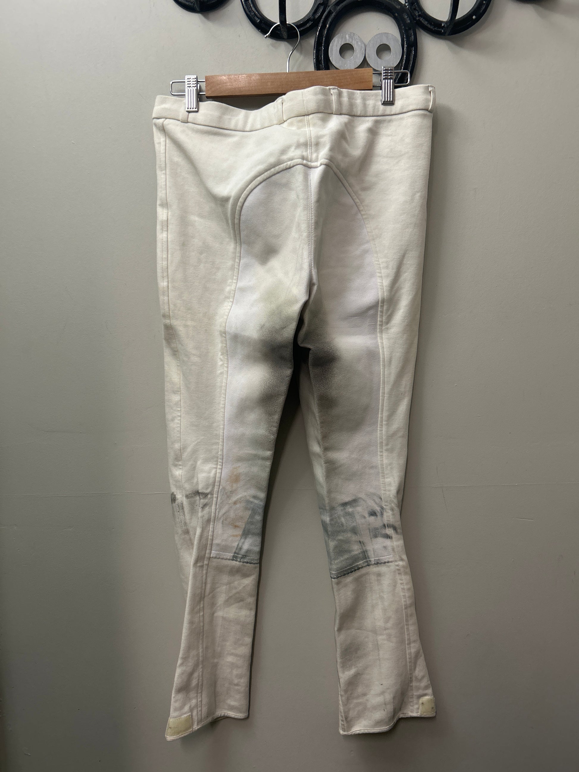 Equicomfort White Suede Full Seat Breeches. Some black staining under the boots and the seat.