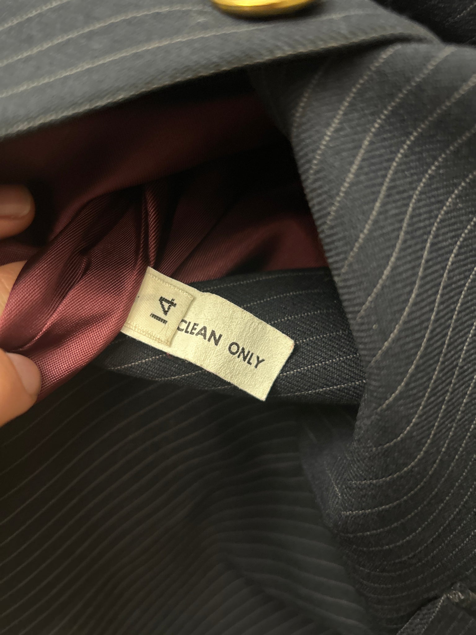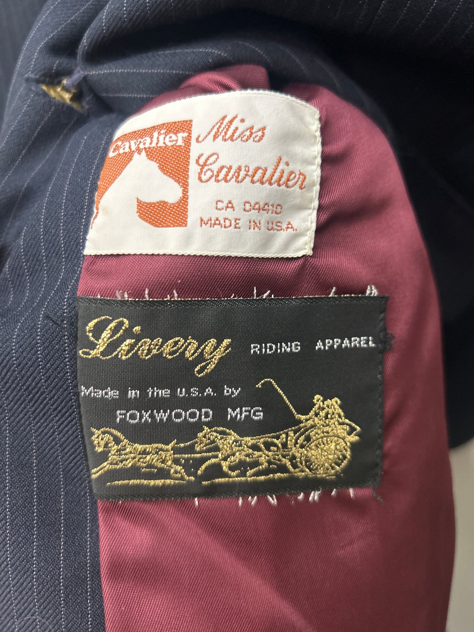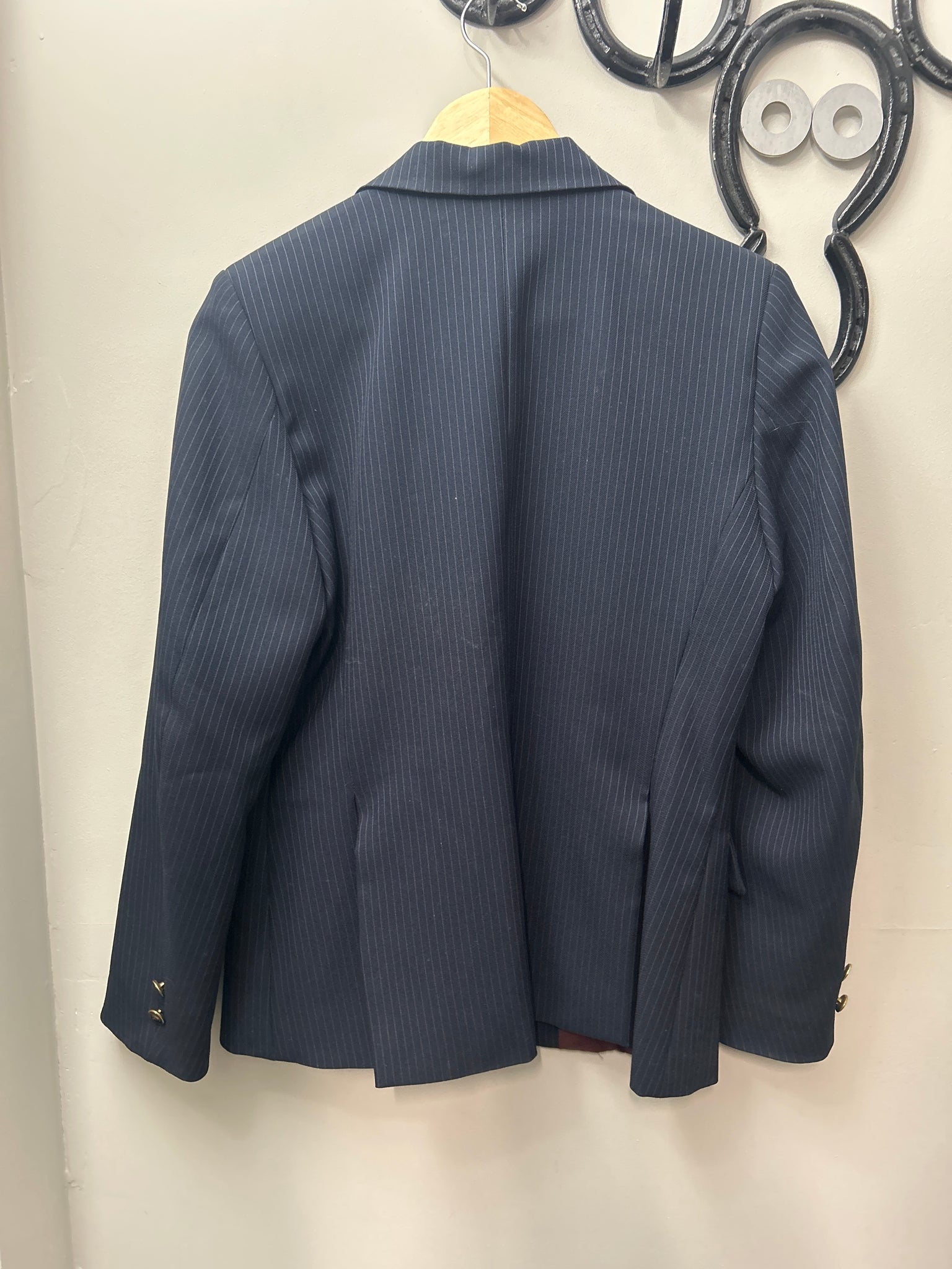 Foxwood Navy Pinstripe Show Jacket. Size 14, Made by Cavalier. Estimated Ladies Medium.
