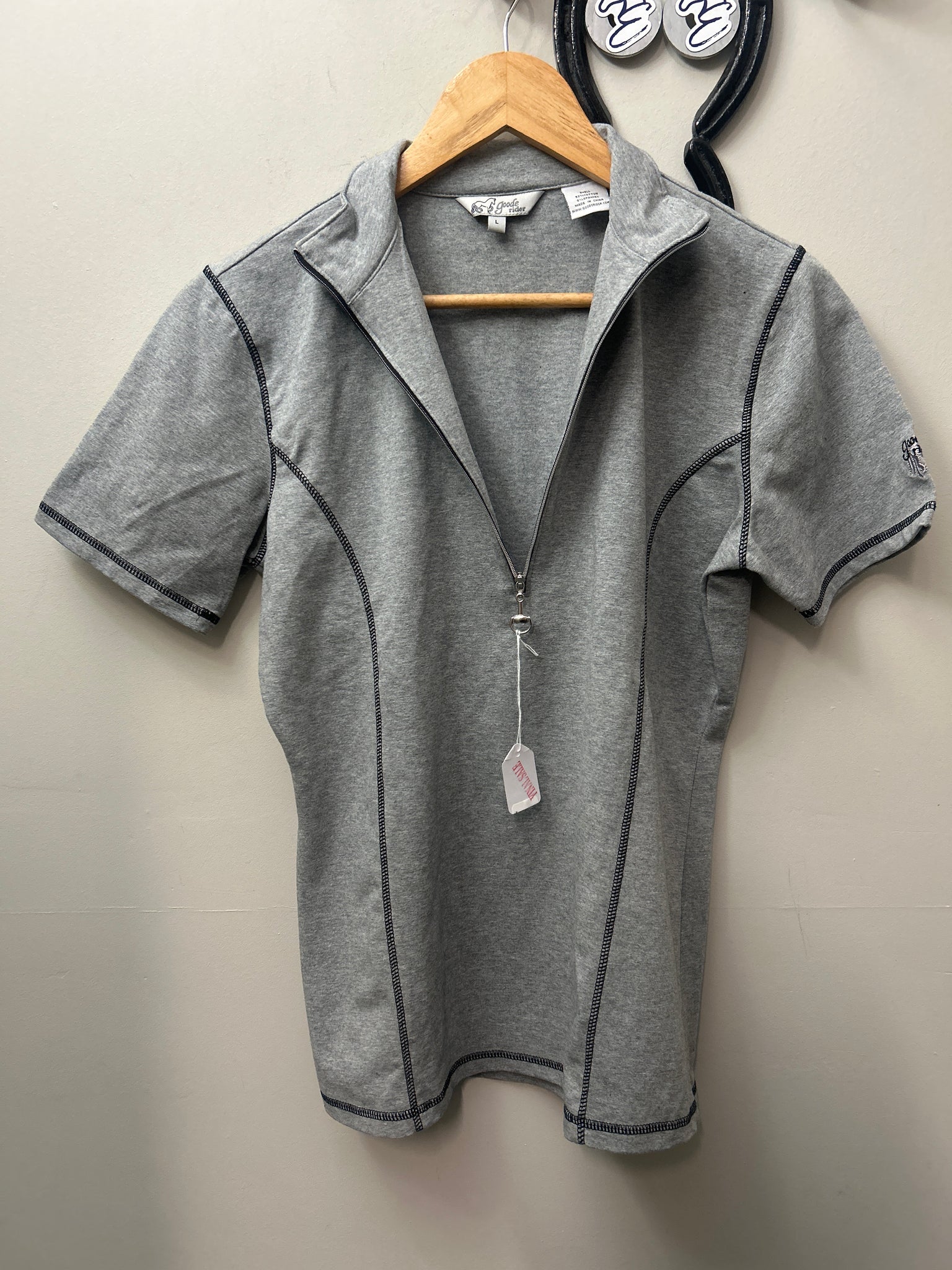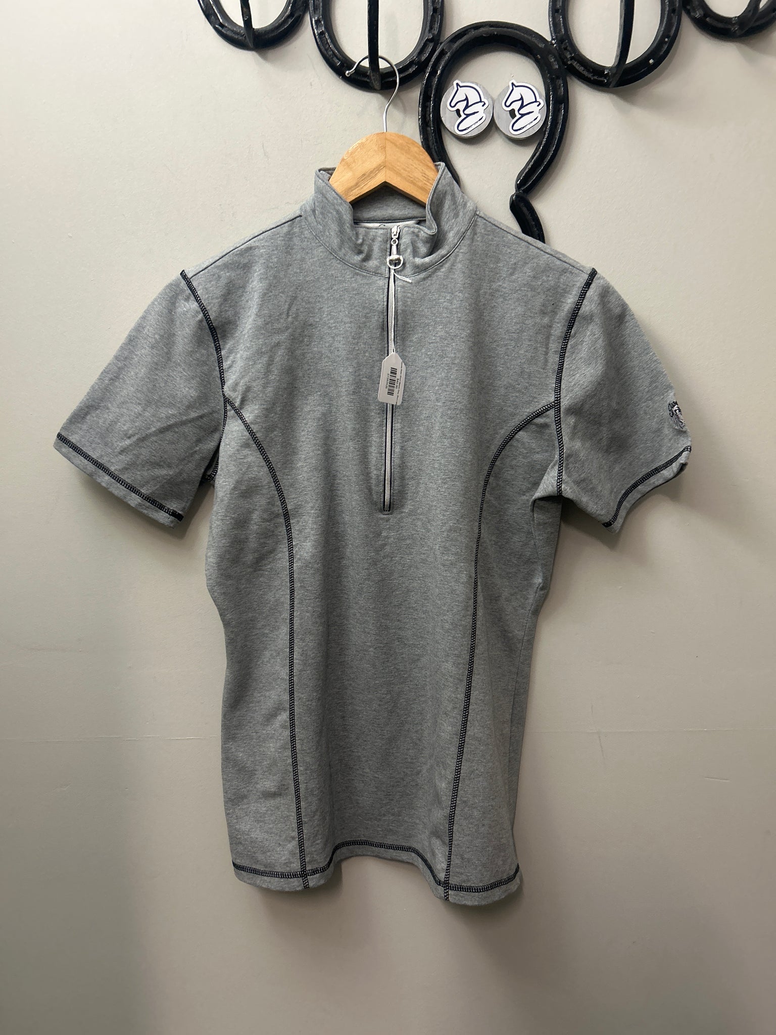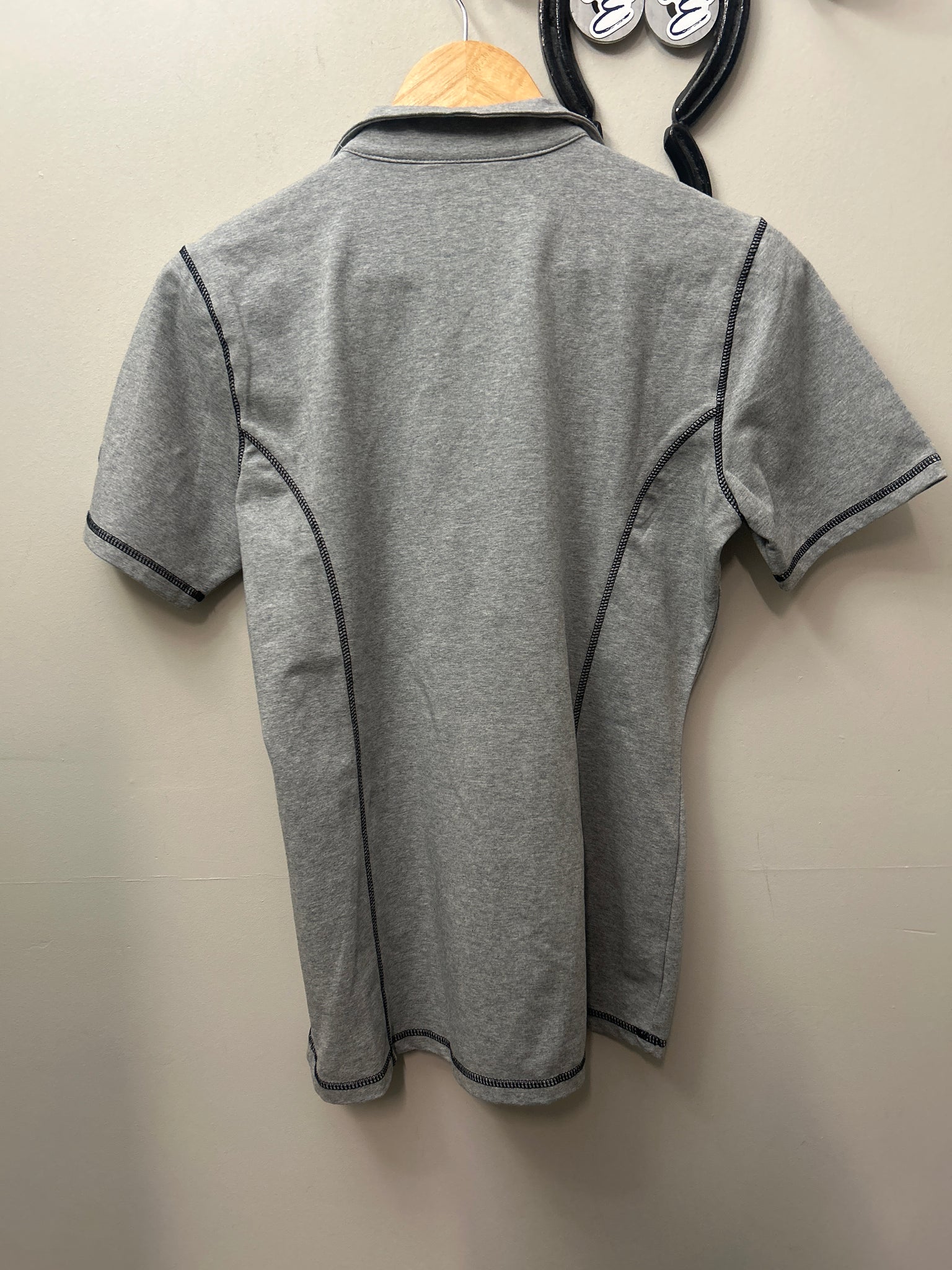 Light Grey Quarter Zip Shirt. Snaffle Bit detail on the zipper. Black stitching details. Excellent Condition