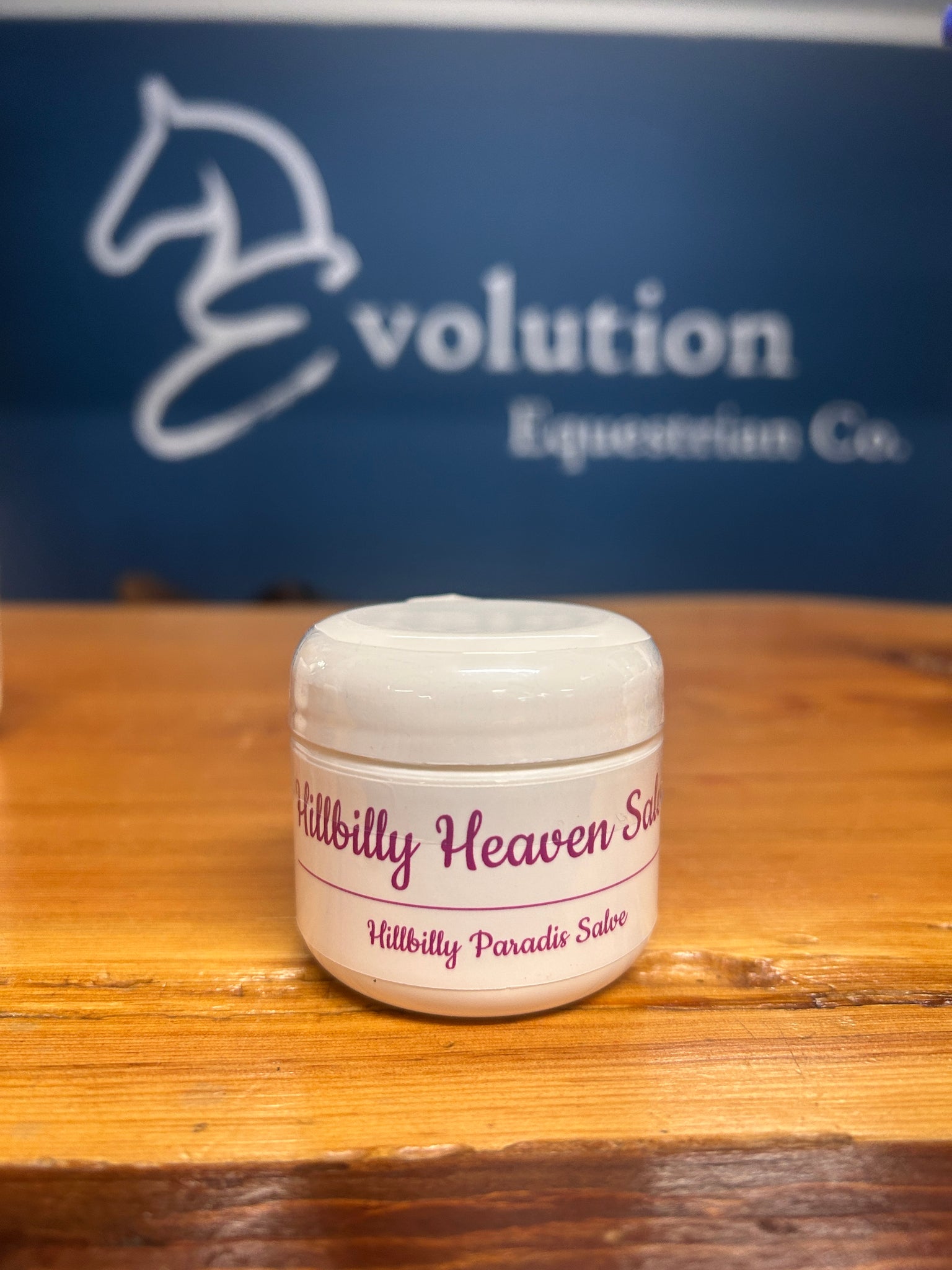For your horse, Hillbilly Heaven Salve helps relieve blanket rub areas, soothes itching and swelling from bites (sweet itch), and creates a protective barrier while moisturizing dry, flaky areas in the mane and tail.