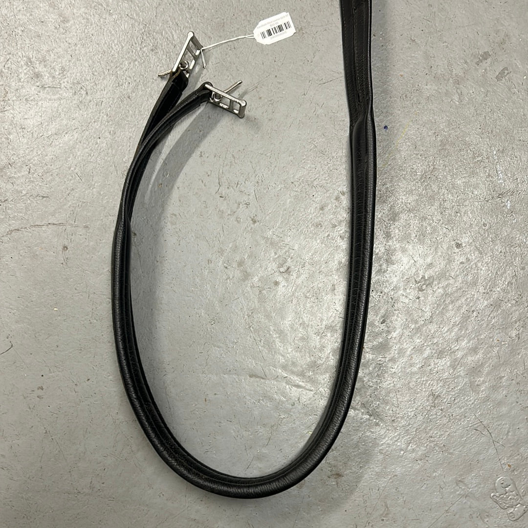 Soft black leather girth, no elastic. Stamped 135 cm. Well padded, soft and supple.