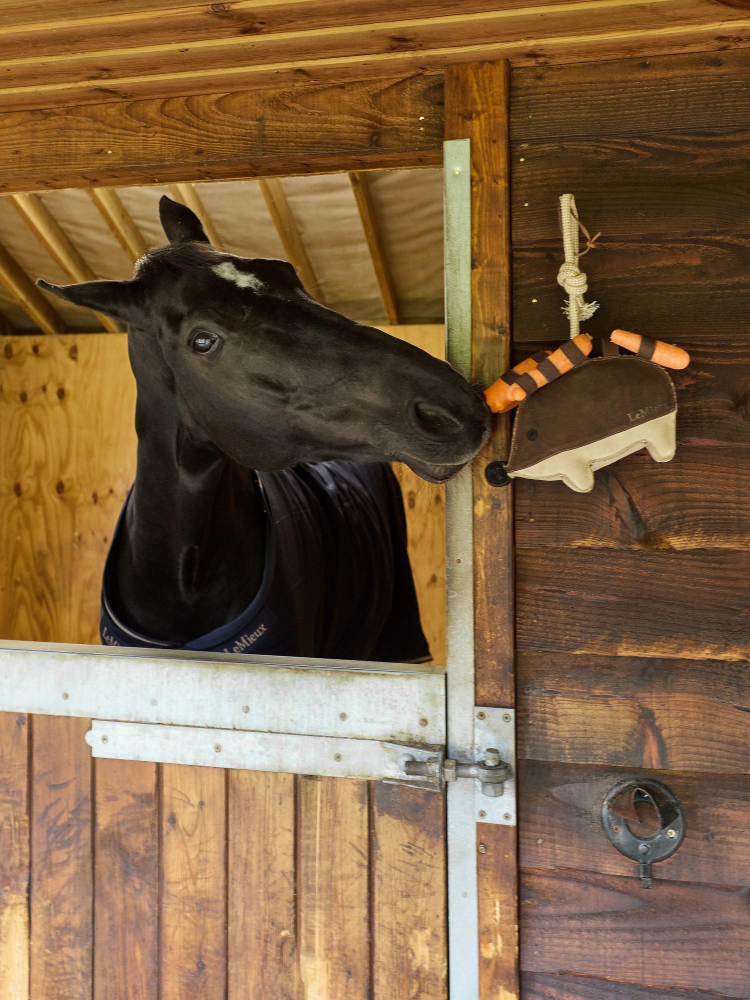 Banish boredom in the stable with this characterful hedgehog horse toy. This cute little friend has a pronounced nose for nibbly fun, and elasticated loops to hold carrots or other treats.