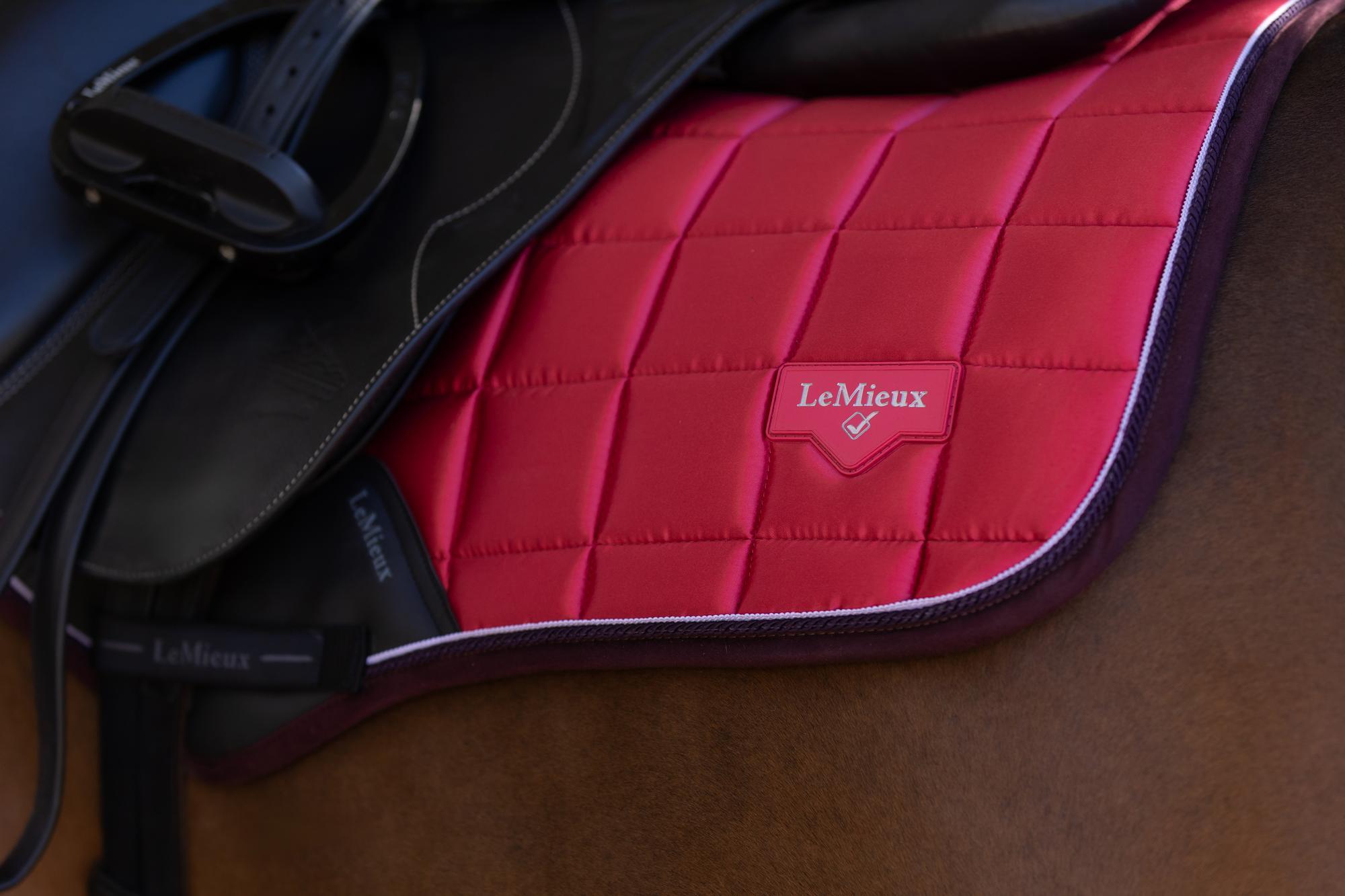 A unique LeMieux logo metal badge on a leather mount in the lower back corner provides a luxurious finishing touch.