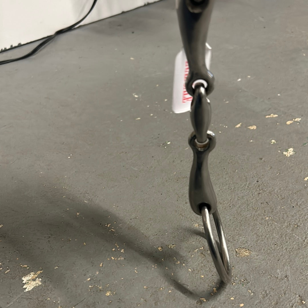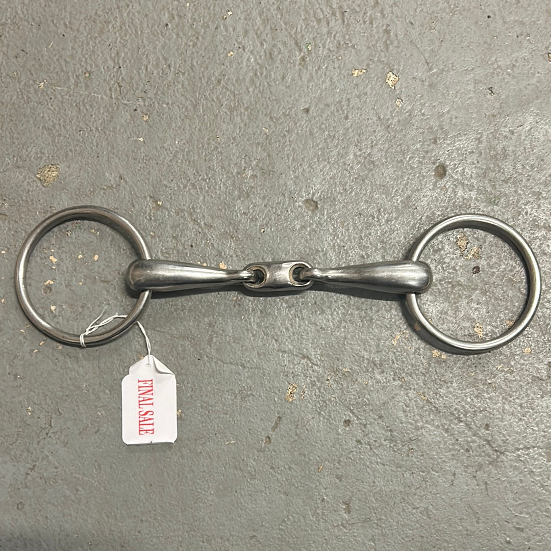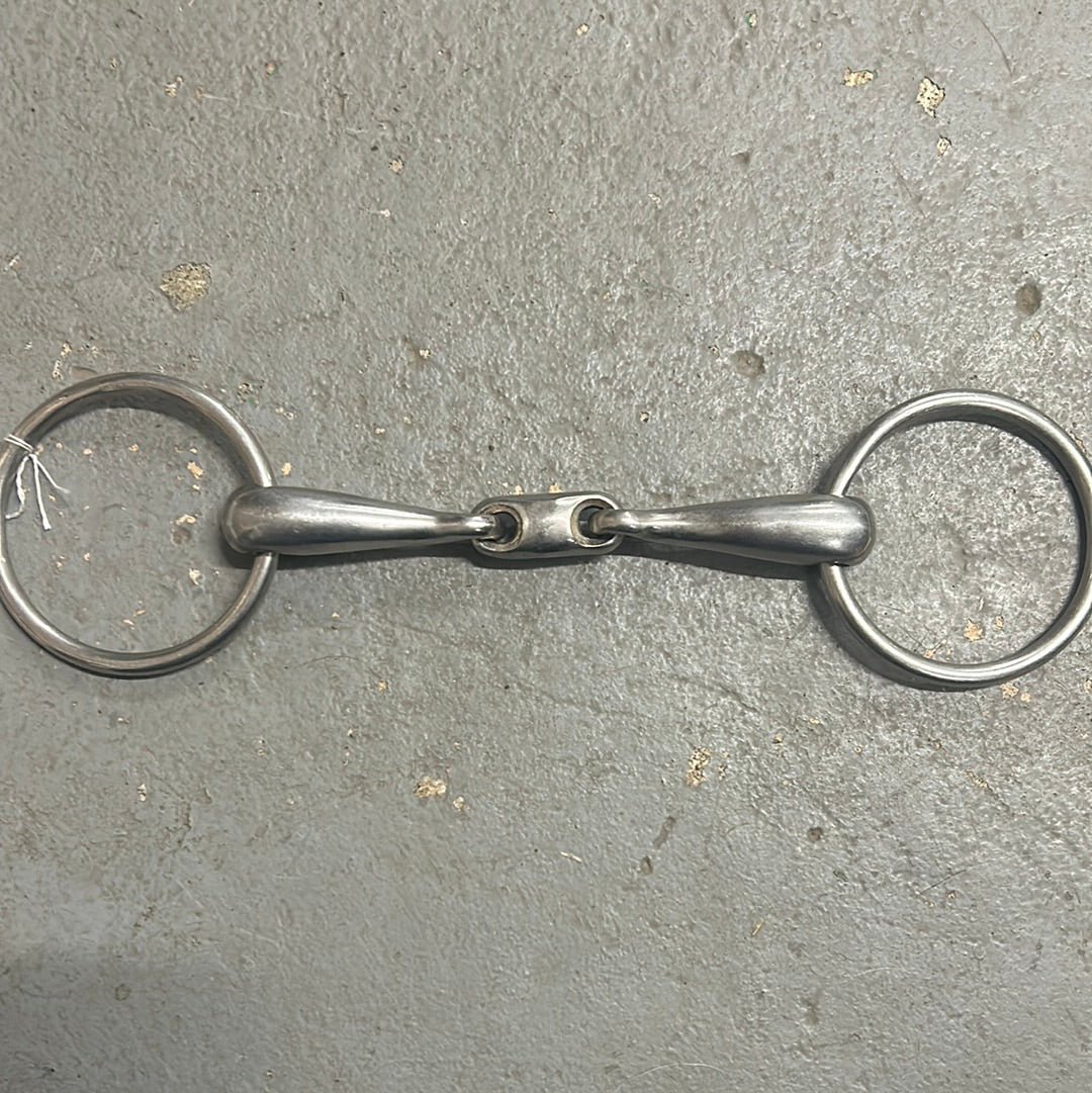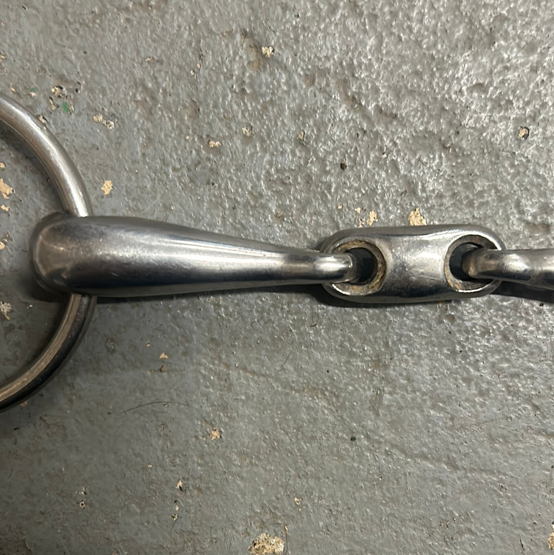 Well-made loose ring snaffle. Nice soft longenze design. Estimated 16mm thickness.