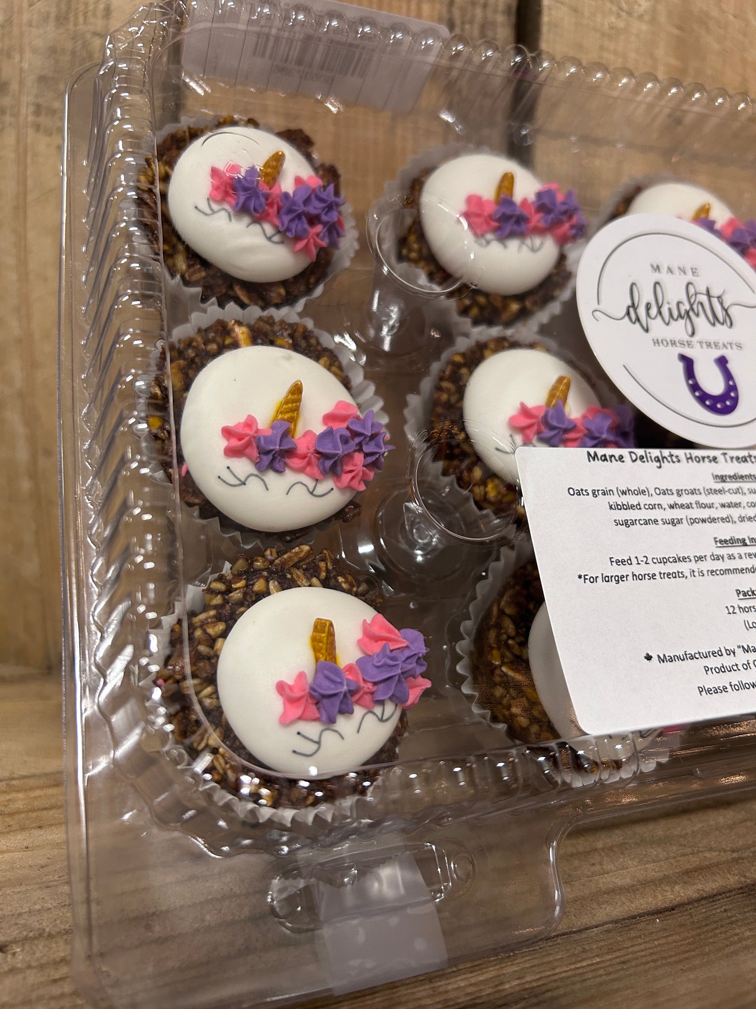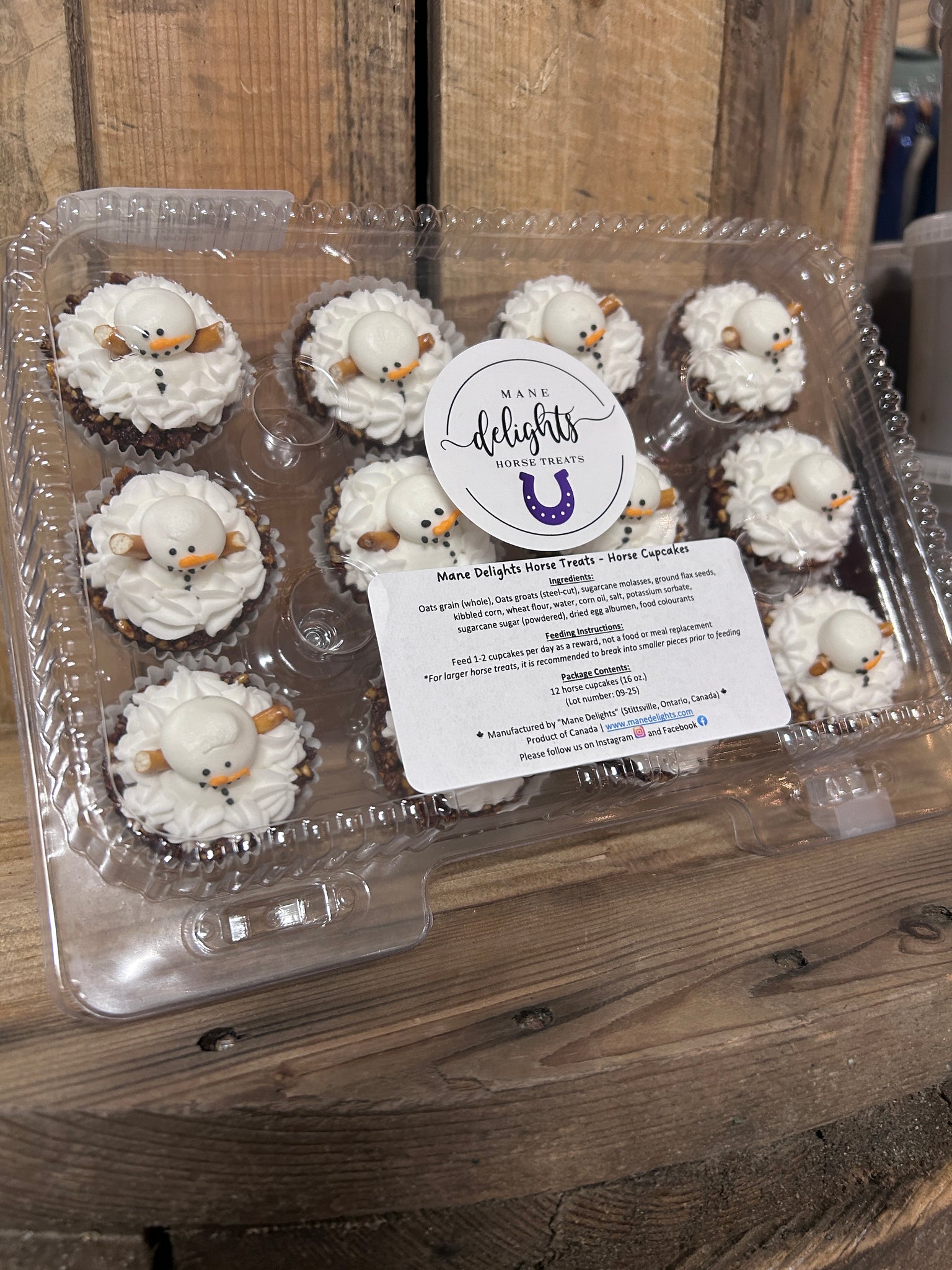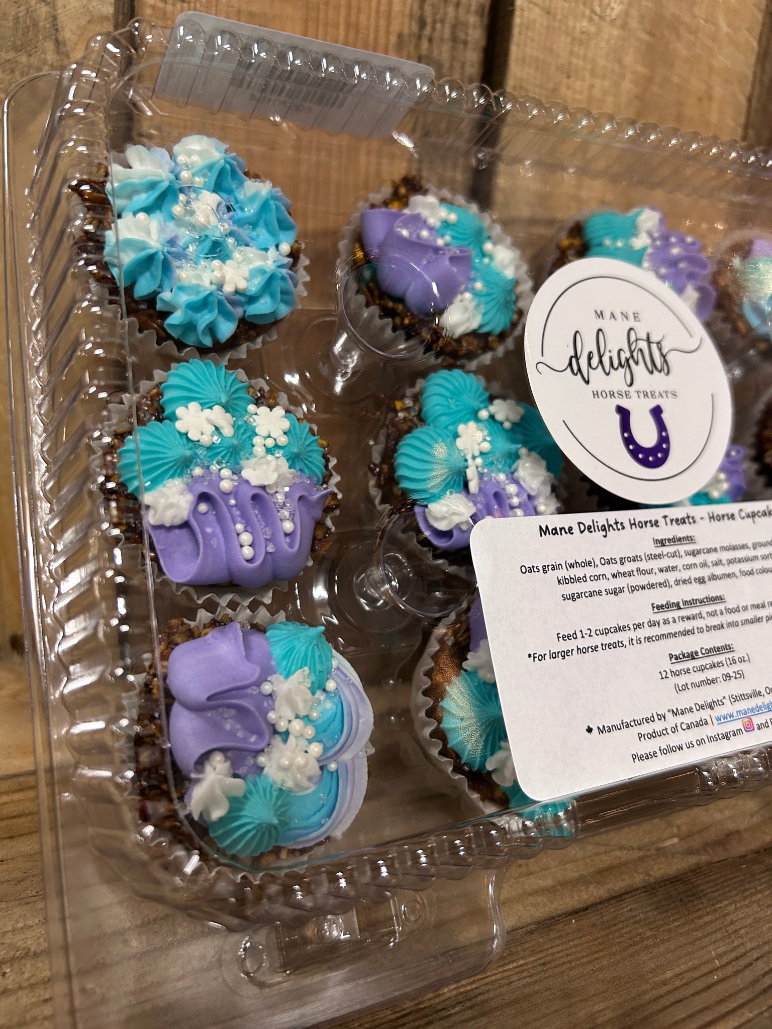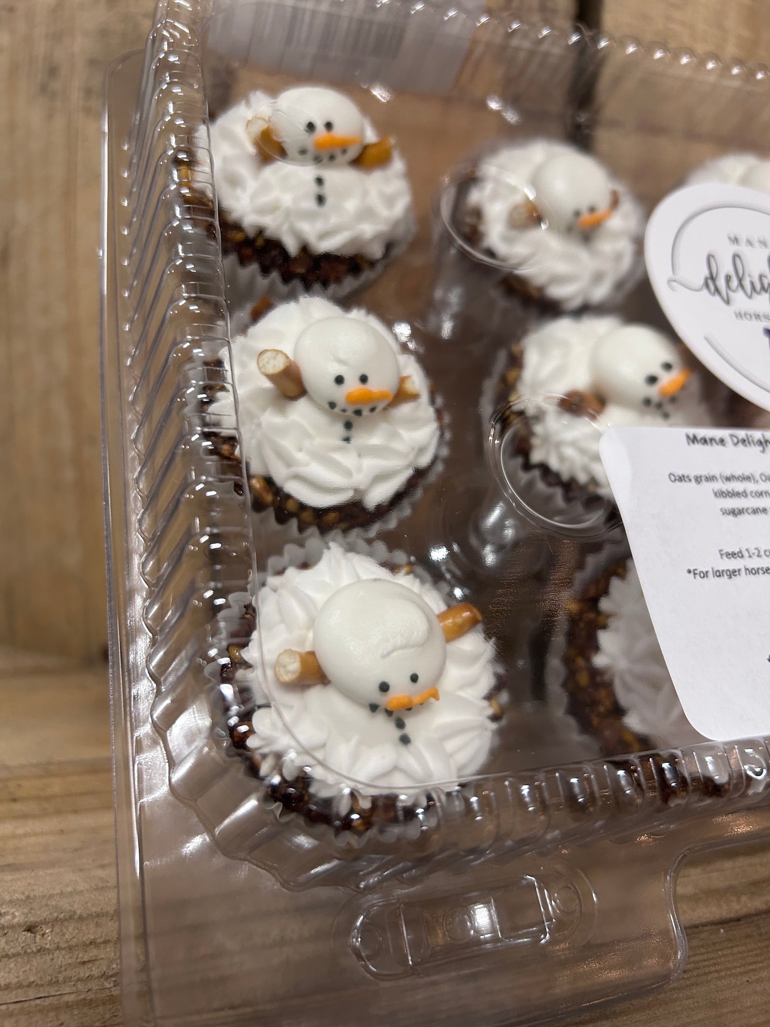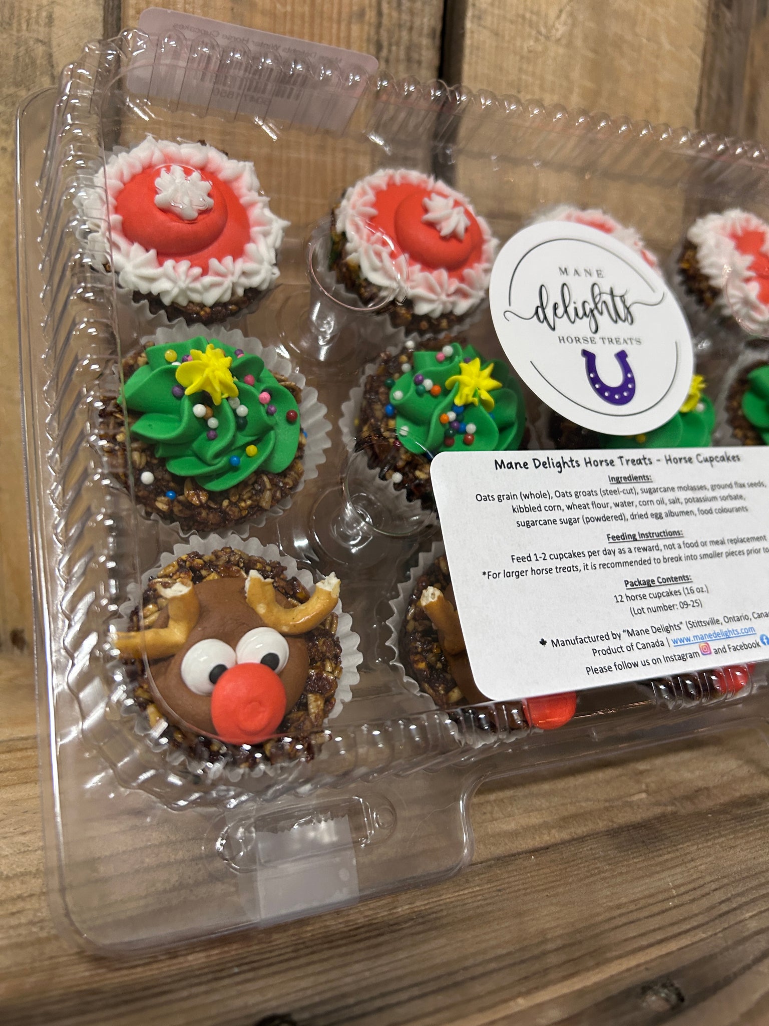 These winter cupcakes come from Mane Delight, a small Ontario, Canada business that puts real care into every batch they make. Each set includes 12 small, hand-crafted horse cupcakes—perfectly sized for quick rewards, holiday treats, or sharing with your barn besties’ horses.