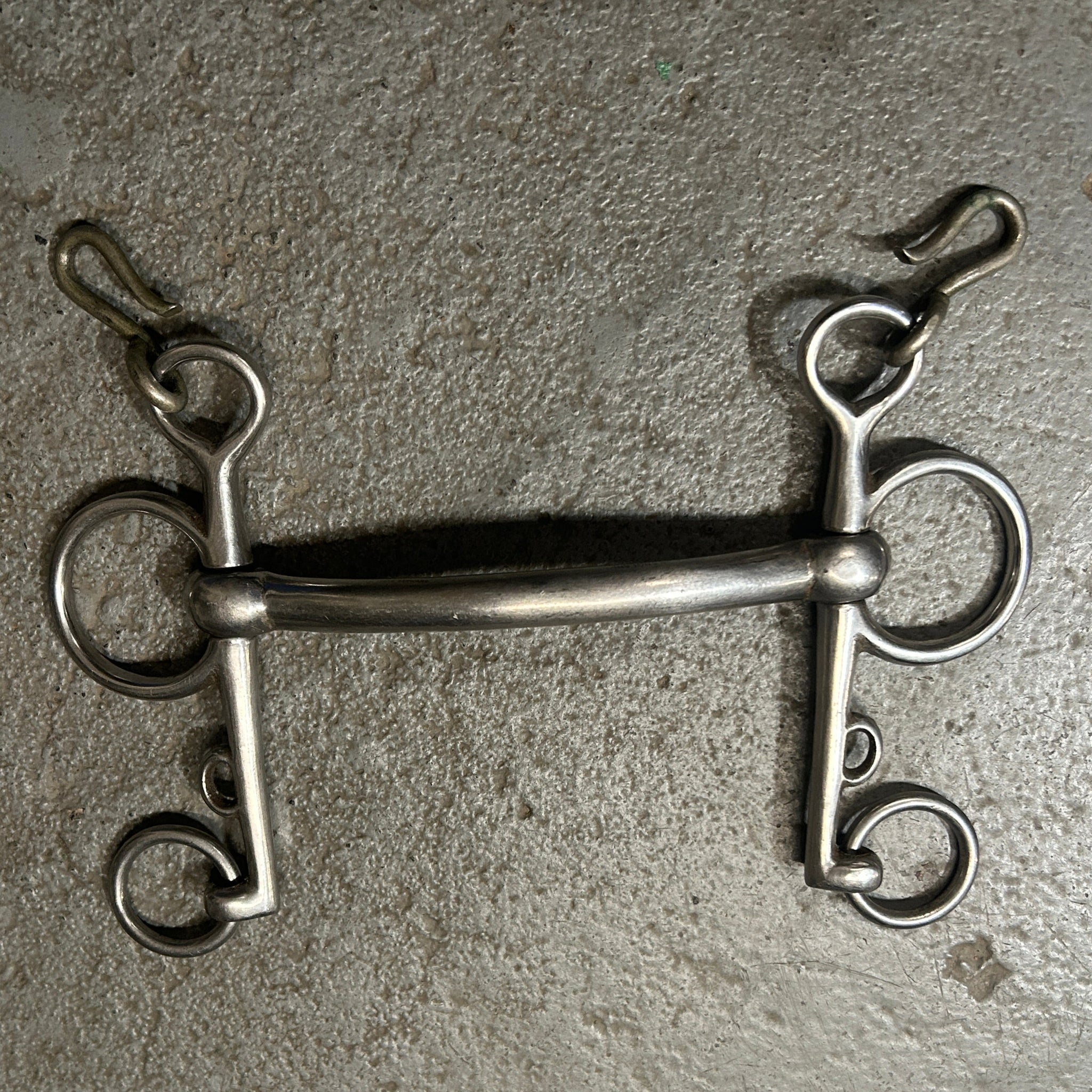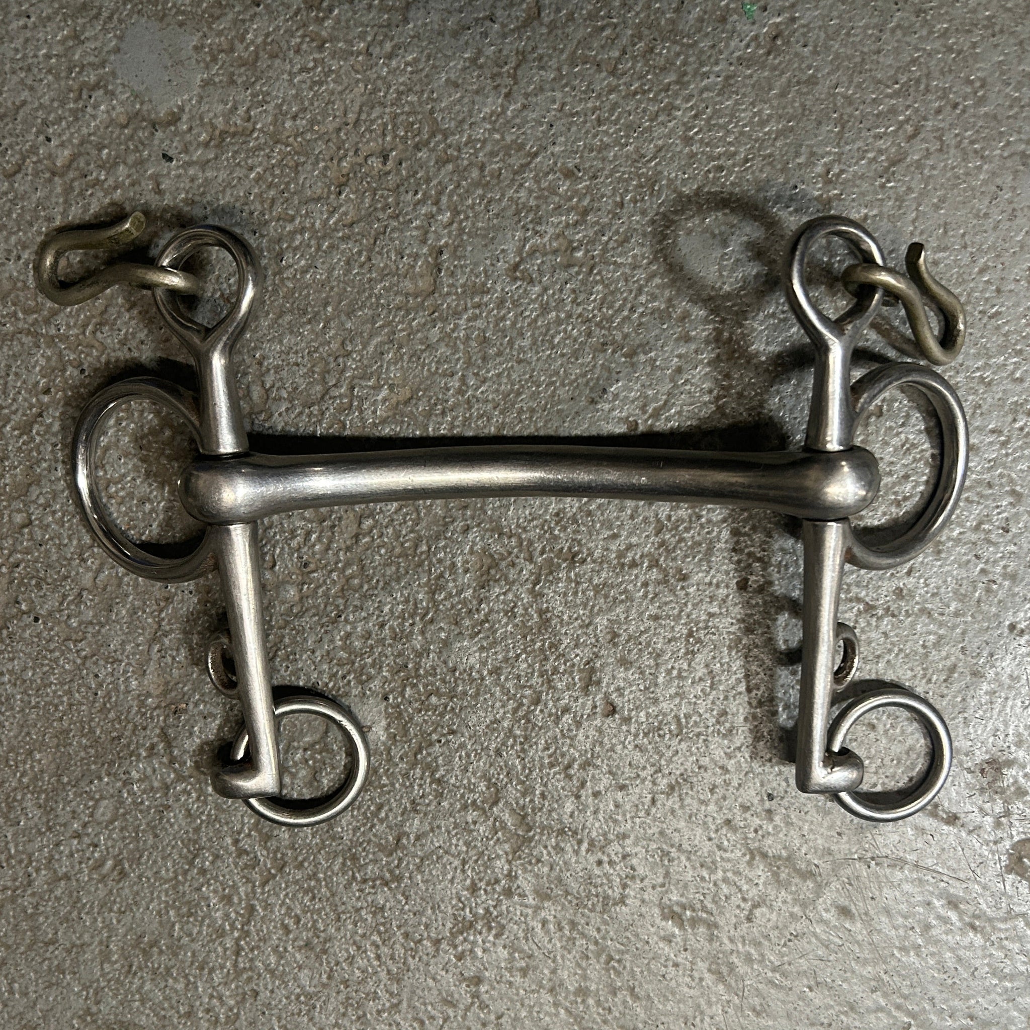 Stainless Steel Mullen Mouth Pelham. No Curb Chain. 5" mouth. 5.5" cheeks.