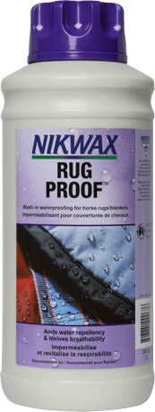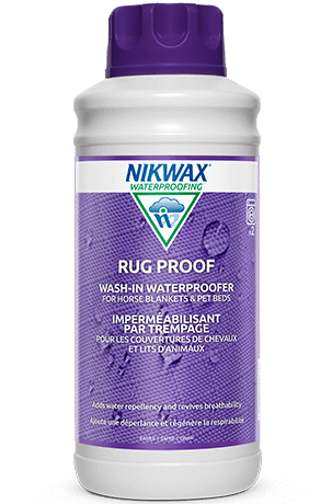 Nikwax Rug Proof™ is a high-performance, wash-in waterproofer specially formulated to restore the Durable Water Repellency (DWR) and breathability of all waterproof horse blankets, turnout rugs, and pet beds.