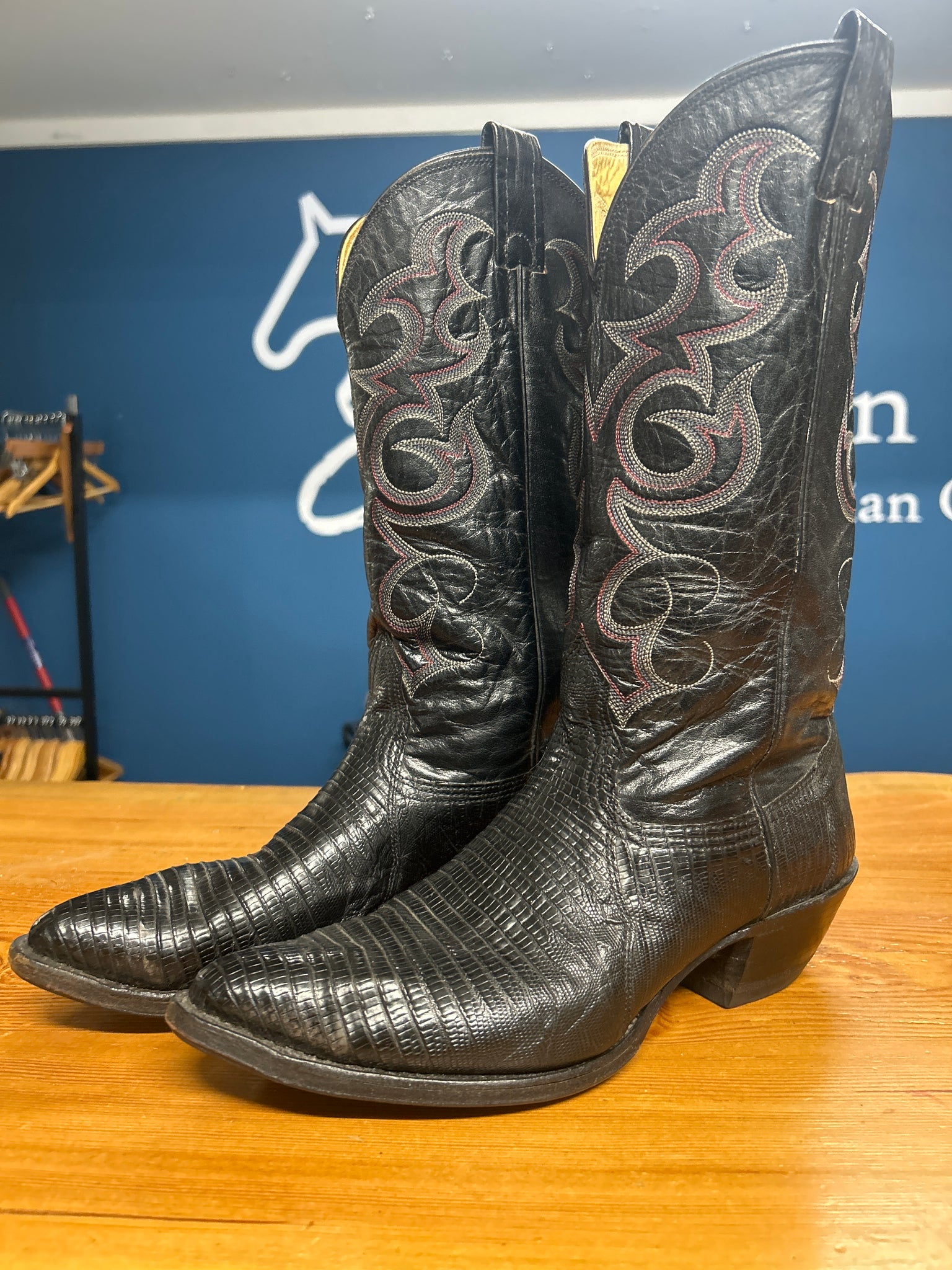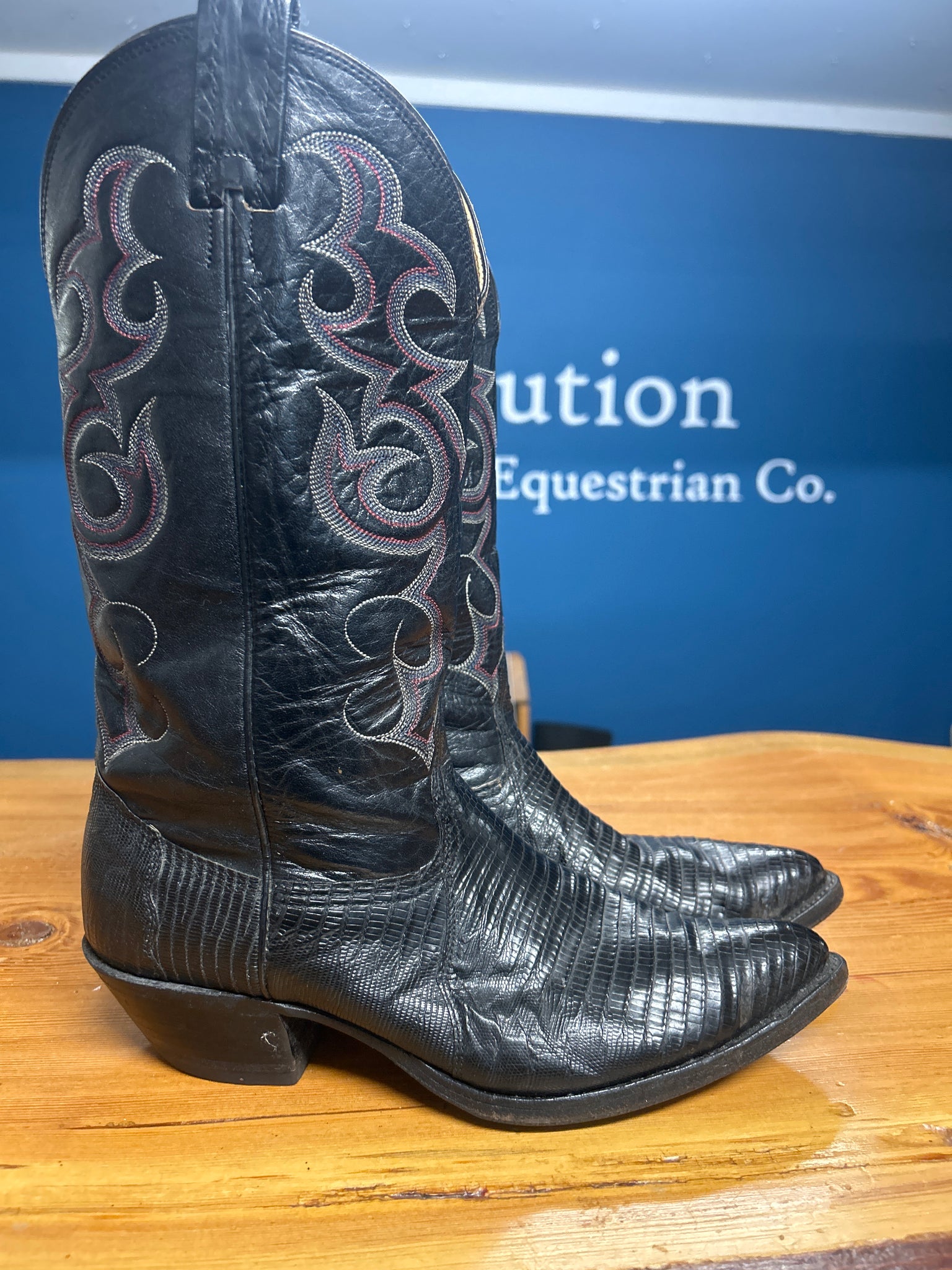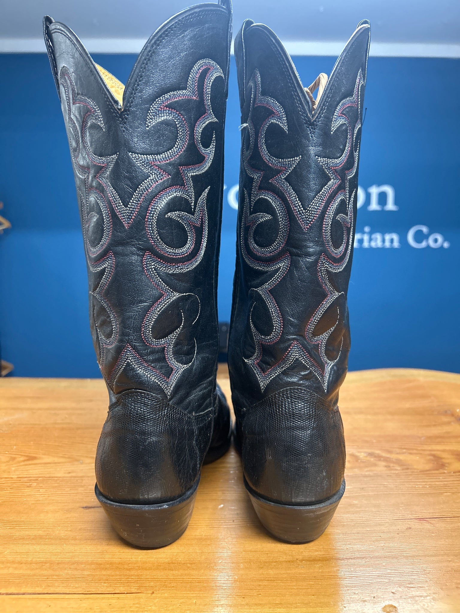 Vintage Men's Nocona Boots. Black calf leather and lizard hide! Made in the USA. Size Mens 9 D. Style 57068. Pointed toe.