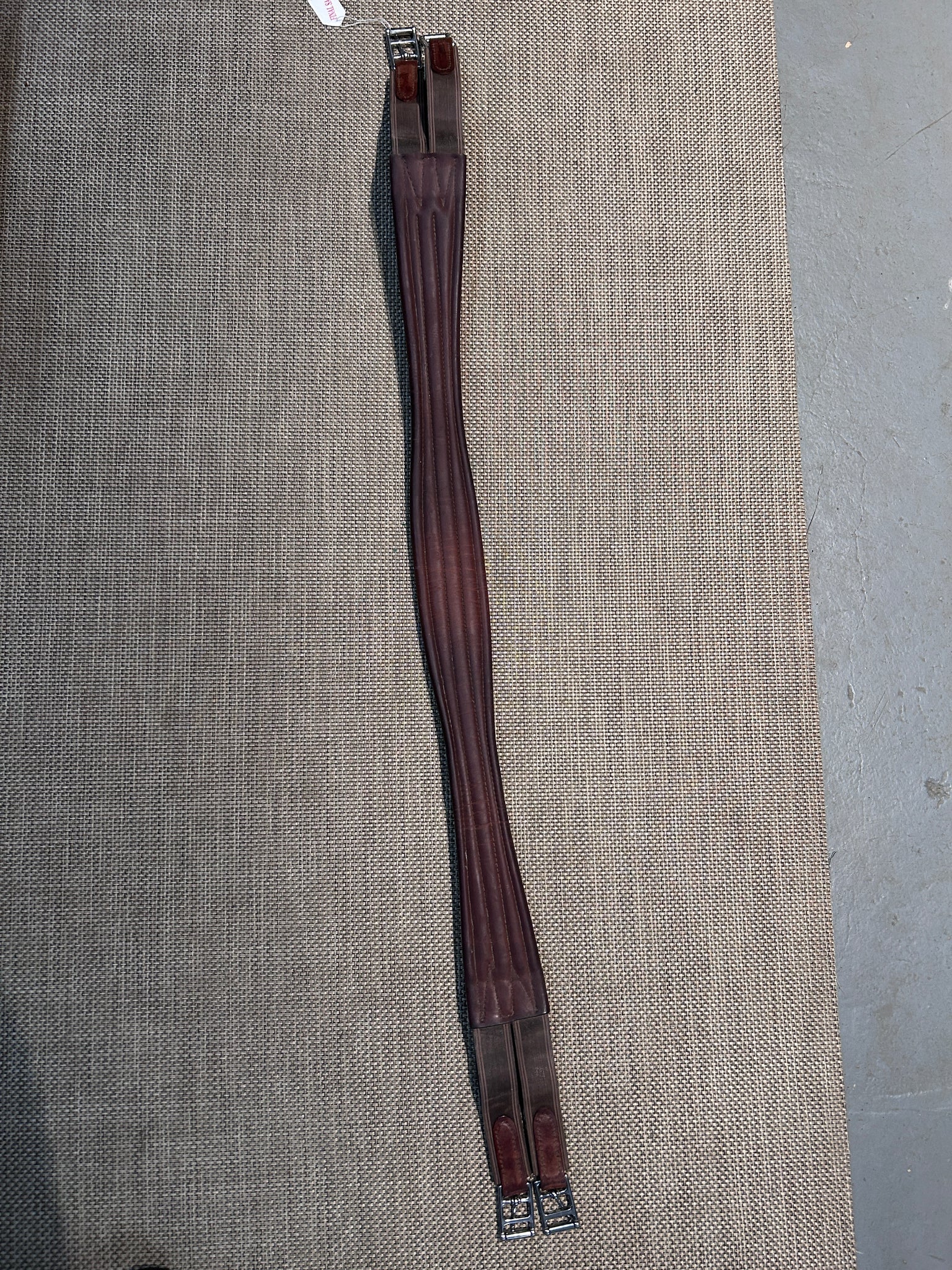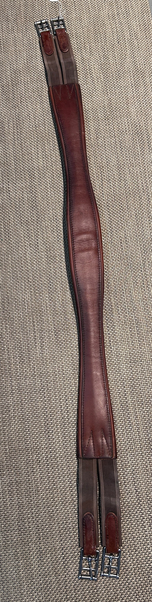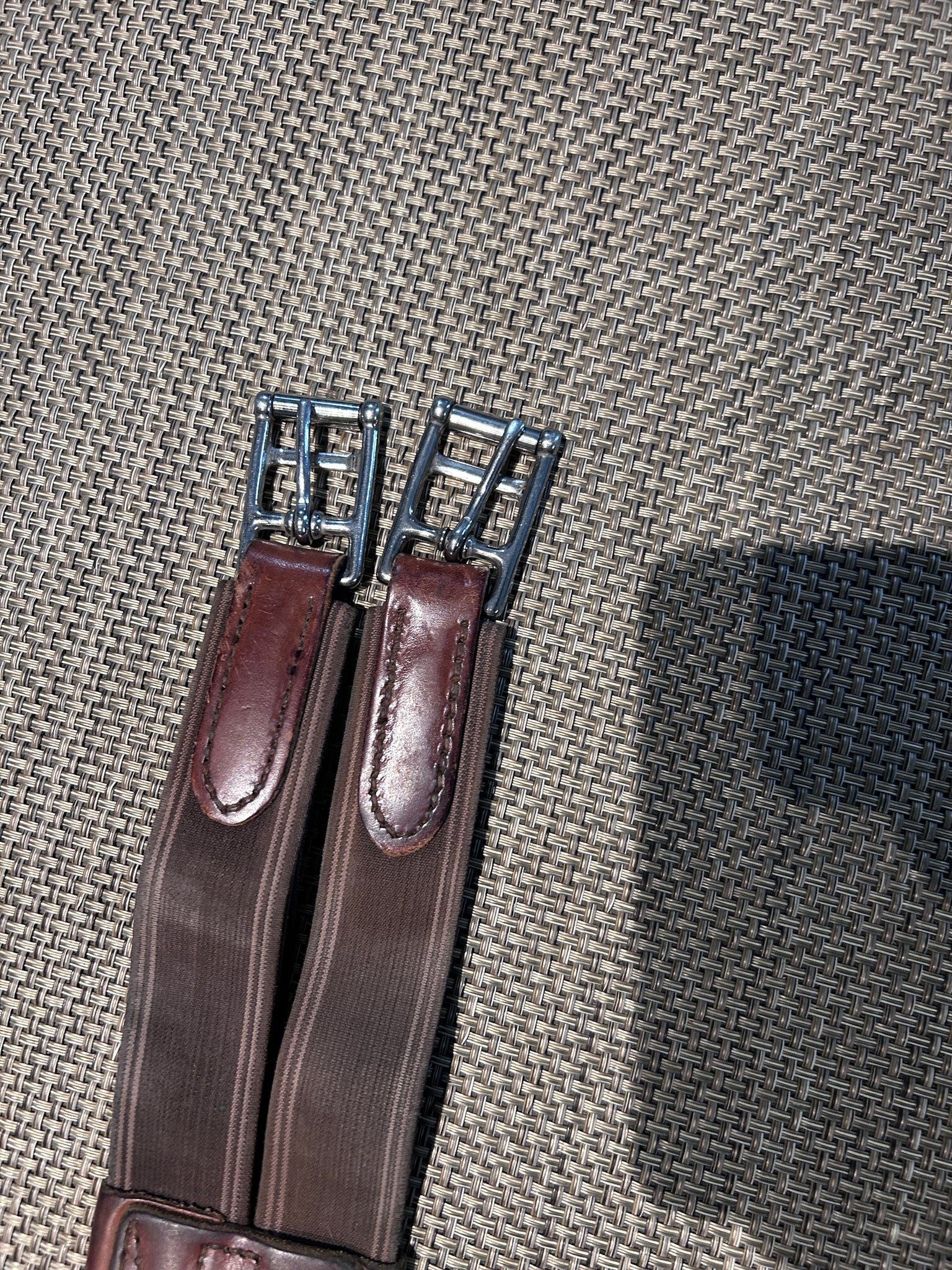 Well-made padded leather English girth. Double Elastic. Some leather is worn on the buckles. Stamped 52".