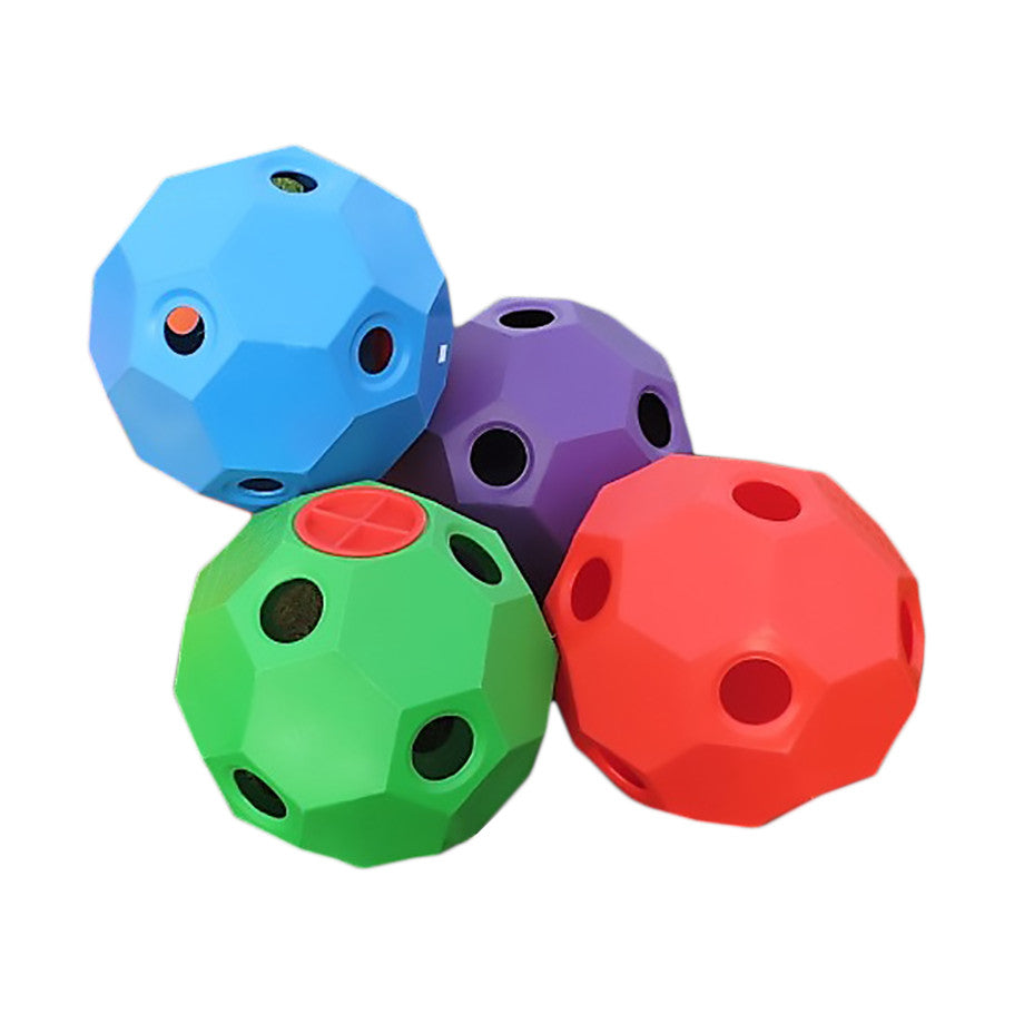 The Hay Play is the original spherical shaped slow forage feeder, its unique design has thirty two flat faces that enable the feeder to roll around as the horse grazes from it. The movement of the hay play challenges and entertains the horse and offers all the benefits of slow feeding without the need for additional treats or feed. Single piece construction makes it incredibly strong and durable. Simply open the cap, fill with hay, soaked hay or haylage, replace the cap, and watch your equine enjoy.