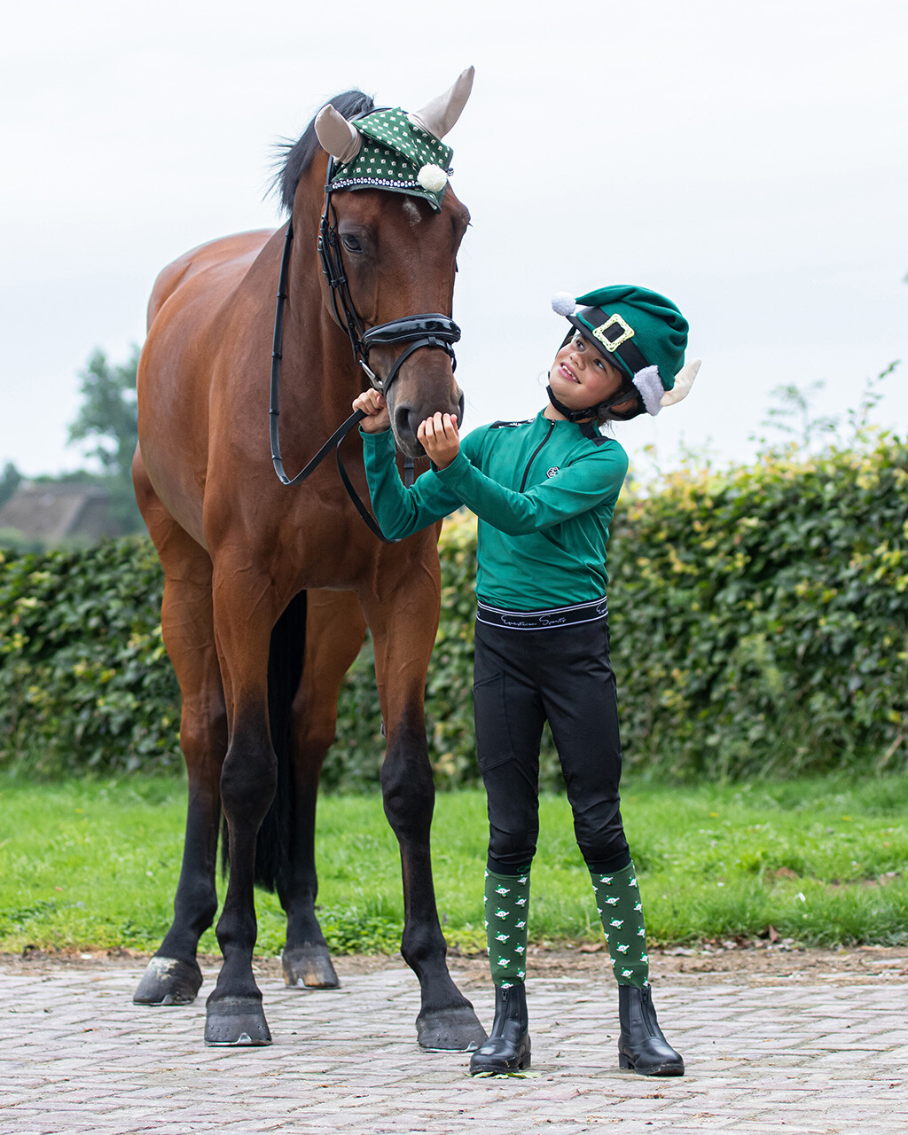 Finish off your holiday riding outfit with the QHP Christmas Elf Helmet Cover. Designed to slip easily over your existing helmet, it adds a fun Christmas look without getting in the way of safety or comfort. It fits most helmets, whether they have a visor or not, so you can bring some festive spirit to lessons, hacks, and barn parties.