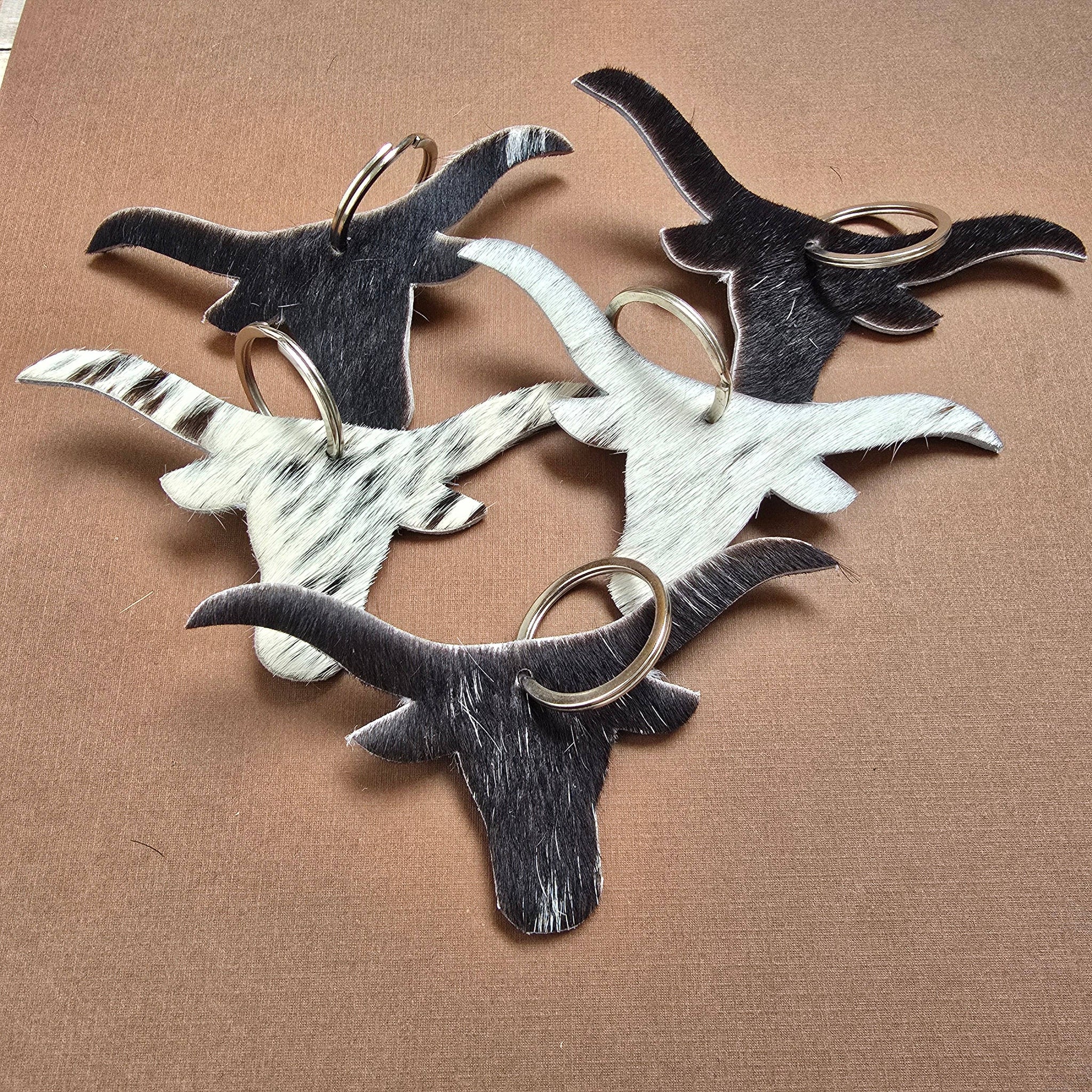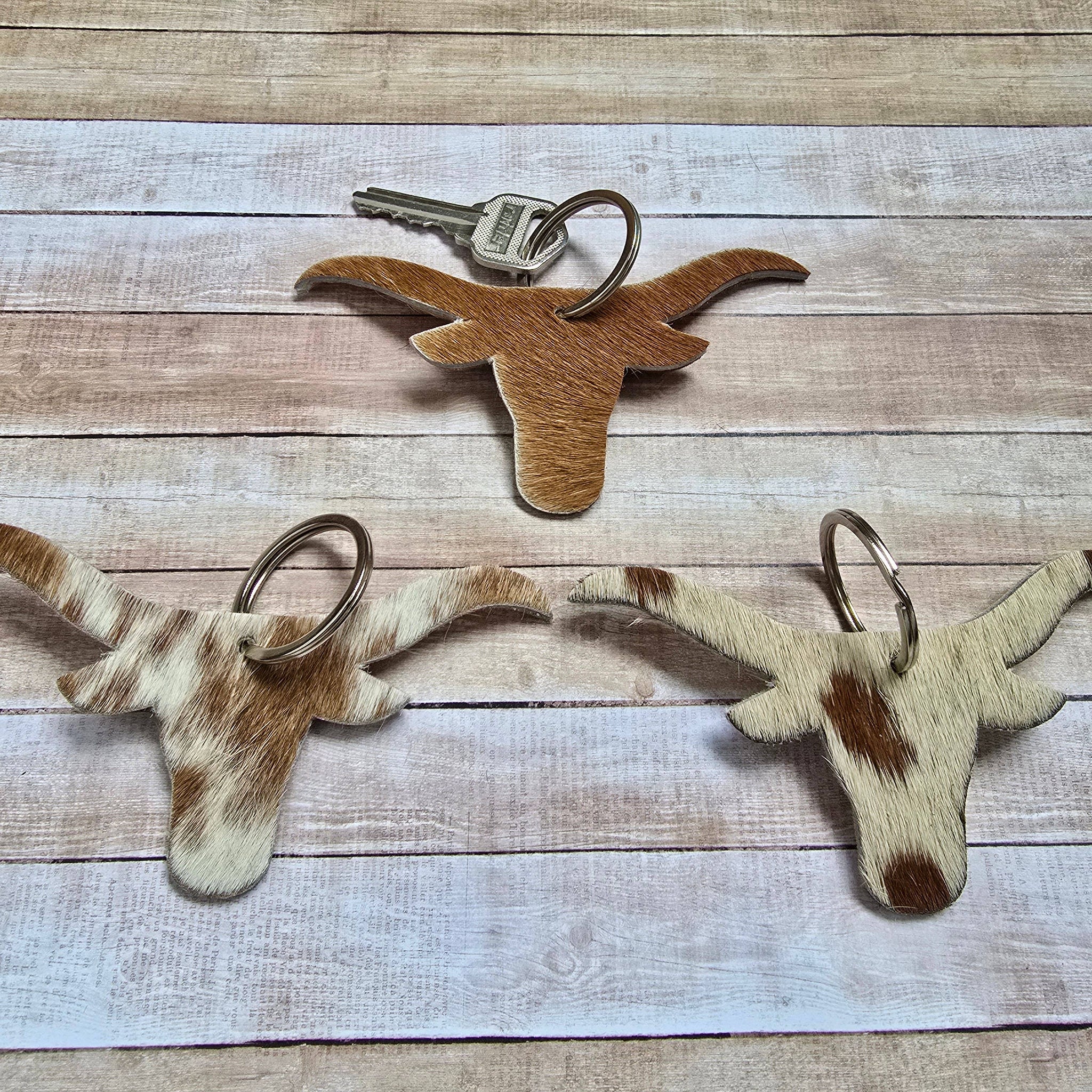 Add a touch of rugged charm to your everyday carry with this handcrafted Bull Head Keychain, made from 100% genuine hair-on cowhide. Designed for cowboys, ranchers, rodeo fans, and lovers of the Western lifestyle, each piece features a one-of-a-kind pattern—no two are ever alike.