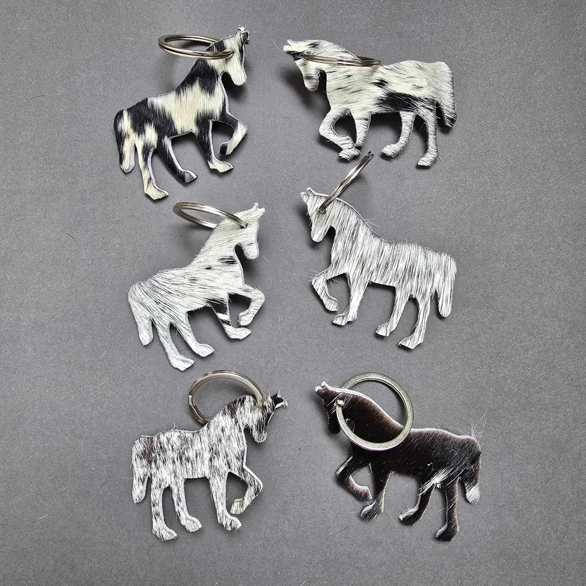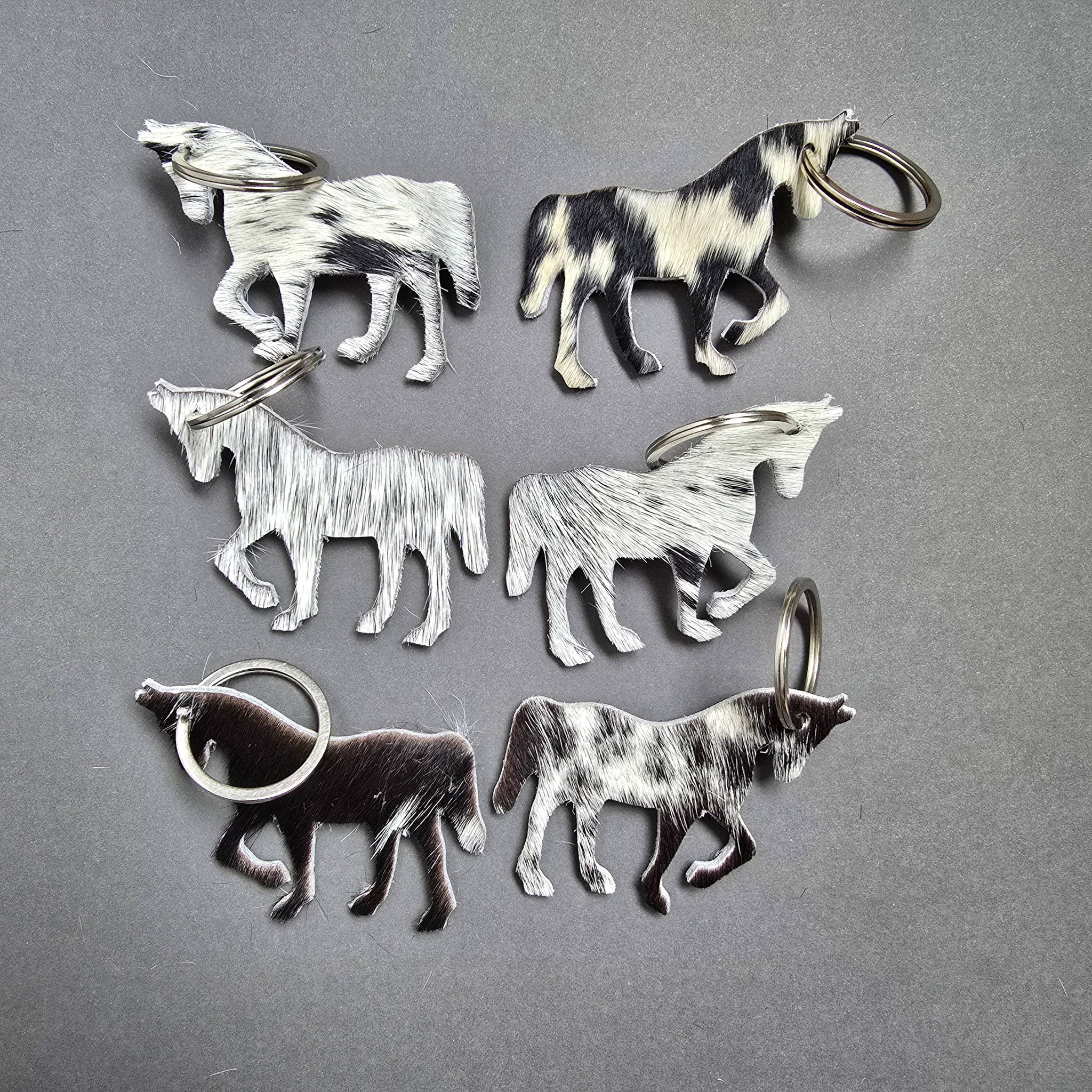 Crafted from authentic hair-on cowhide, each of these handcrafted horse keychains is completely unique—no two are ever the same. The natural markings and textures in the leather offer rustic charm and individuality, making them a standout piece for equestrian enthusiasts, Western-style lovers, or anyone who appreciates durable, handcrafted accessories. Whether it’s clipped to your keys, bag, or tack box, this keychain brings a touch of rugged elegance wherever you go.