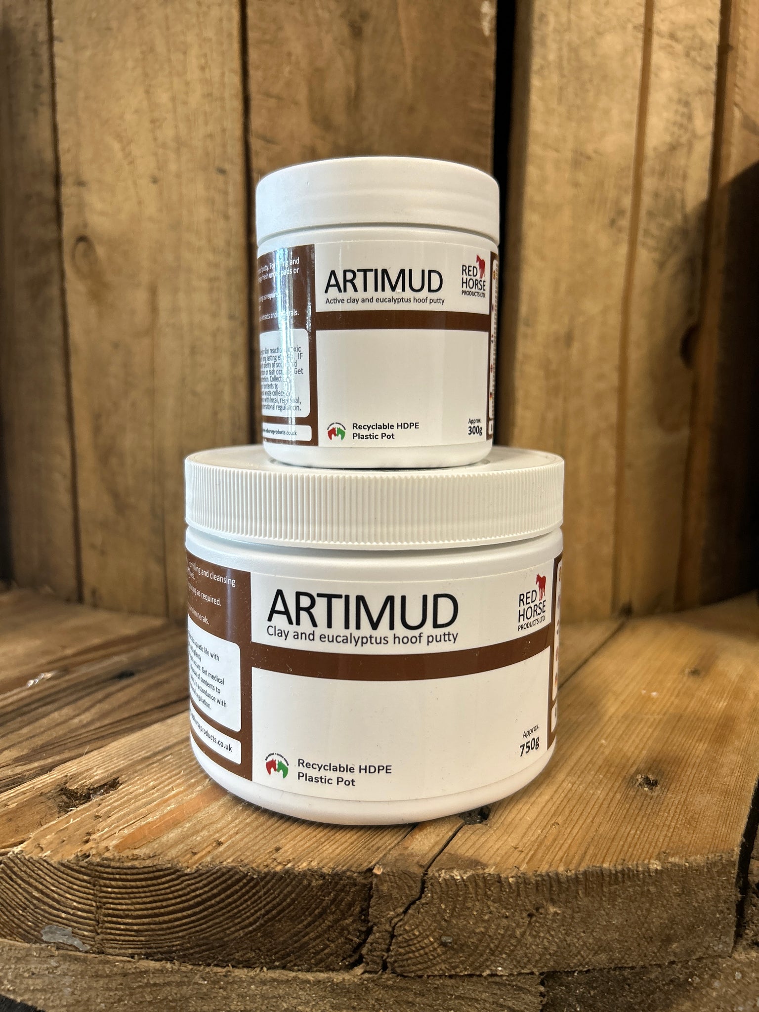 Remove any debris from the area to be packed and dry thoroughly. Artimud can be smoothed, rolled, squashed, spread and moulded. Push the putty into the crack and smooth off. Talc or tissue can be applied to prevent sticking. Artimud is also ideal for packing on the foot and either side of the frog prior to application of impression material, pads and stick-on shoes.