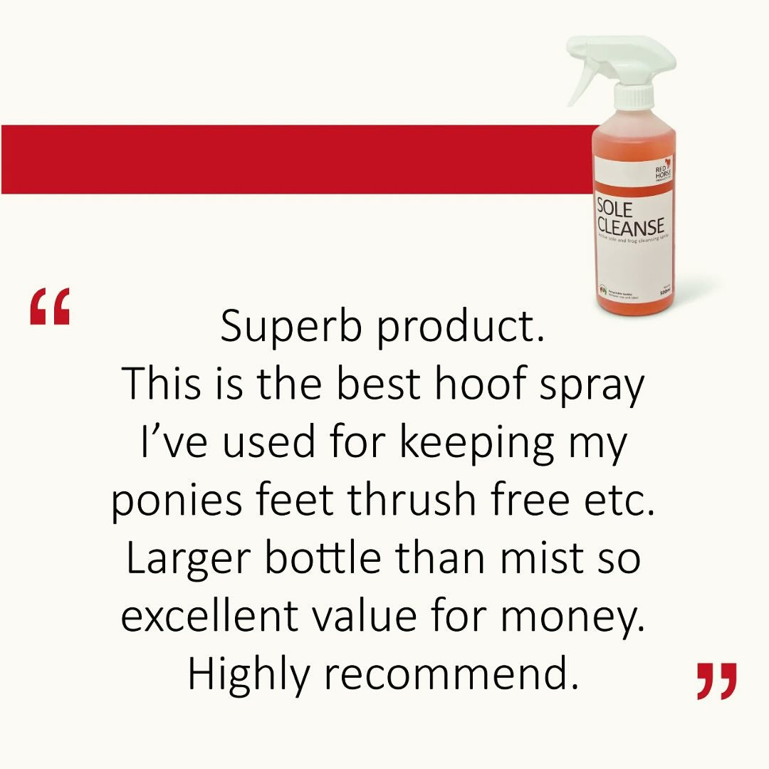 Sole Cleanse spray cleanses the frog and sole to reduce and prevent foul odour and tissue degredation.
