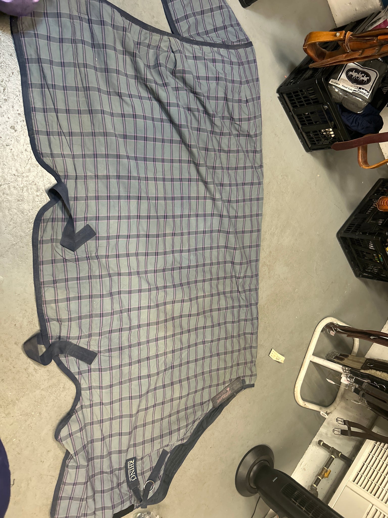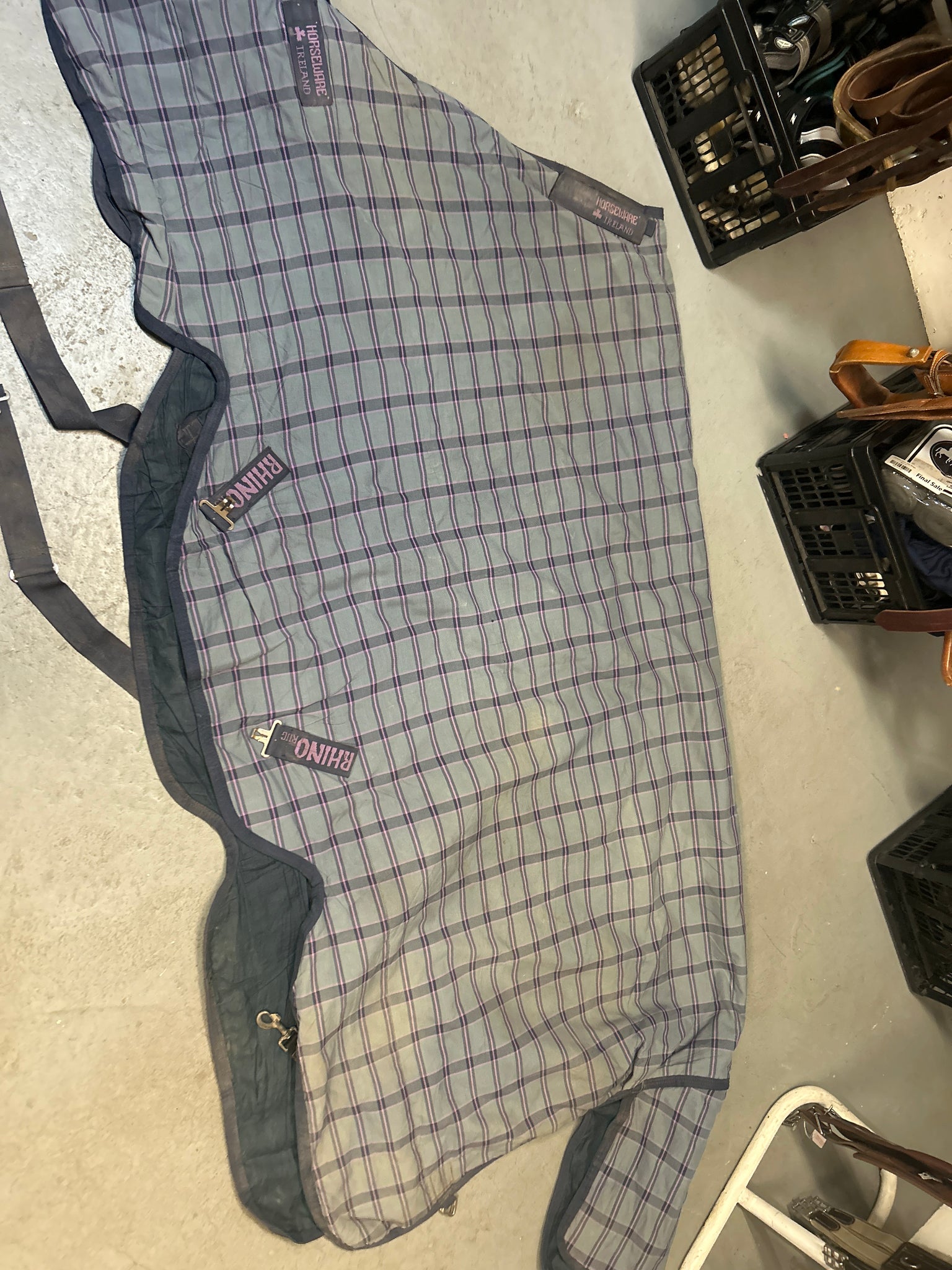Older style Rhino Turnout Blanket. Very clean and no rips. However is an older print. No Hood. 250g fill.