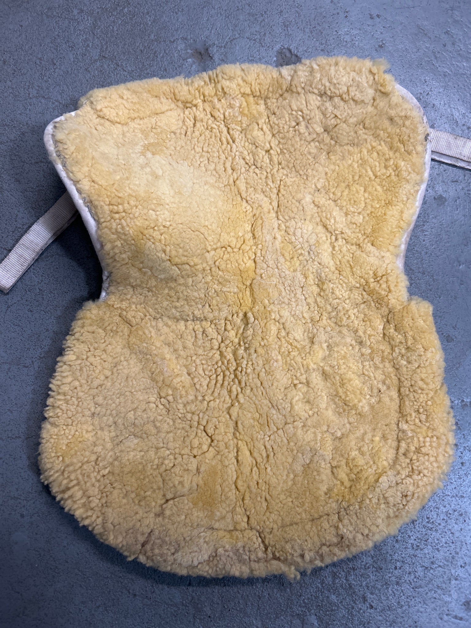 Roma 100% Merino Sheepskin. Well used condition but perfect for a spare or someone on a budget! Measures 18" between the rolls down the spine.