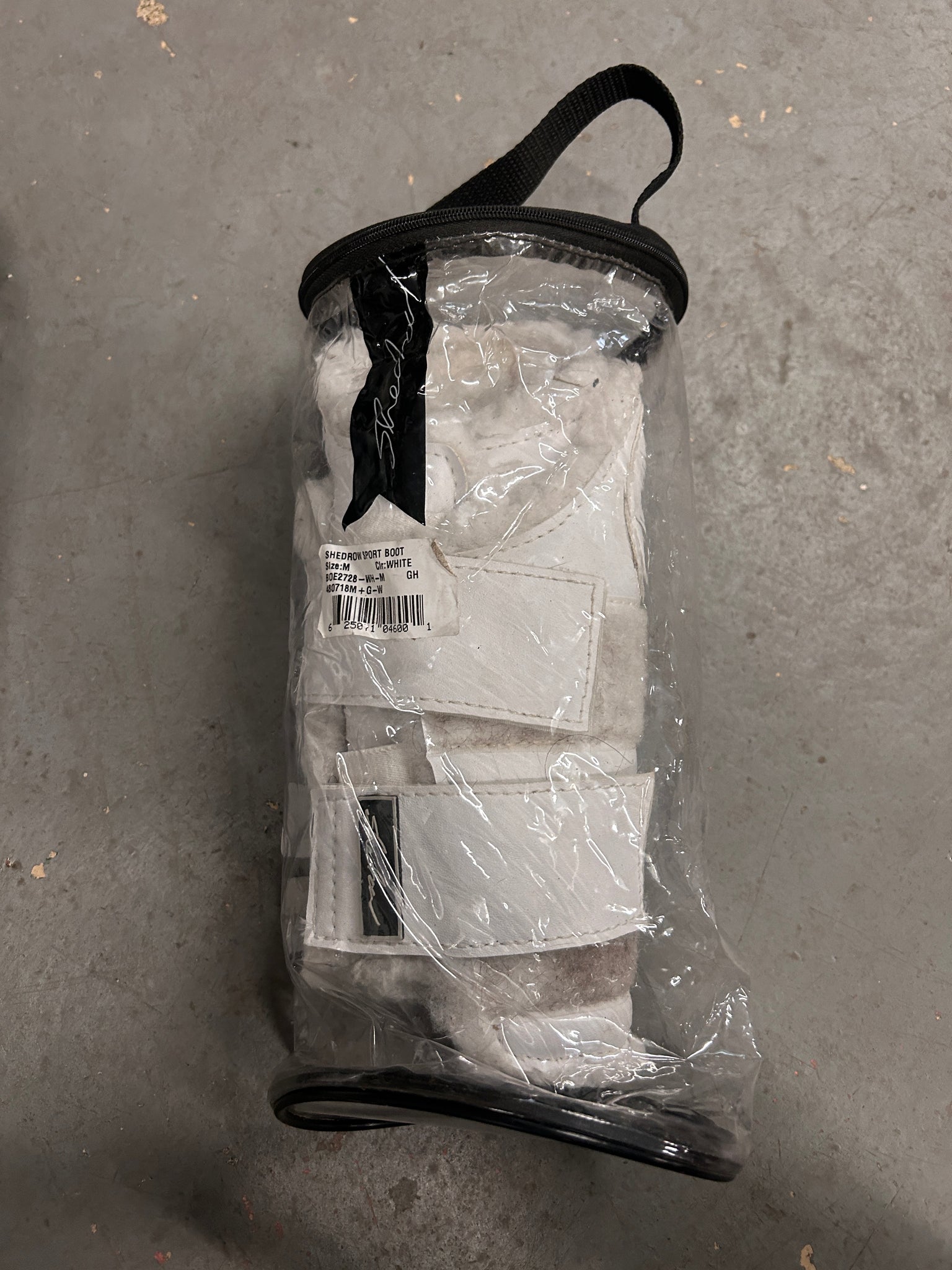 Combining function and style, the Shedrow Sport Boots feature a durable synthetic hard exterior shell that helps shield legs from knicks and bruises. A soft synthetic sheepskin lining forms to the leg for a comfortable fit. The lightweight and breathable design makes an ideal boot for schooling, showing, or turnout. Complete with two sturdy Velcro straps.