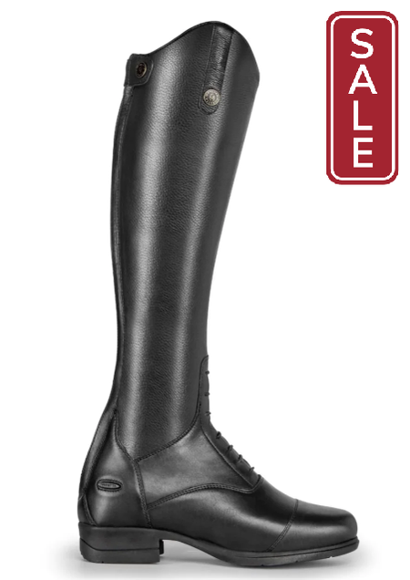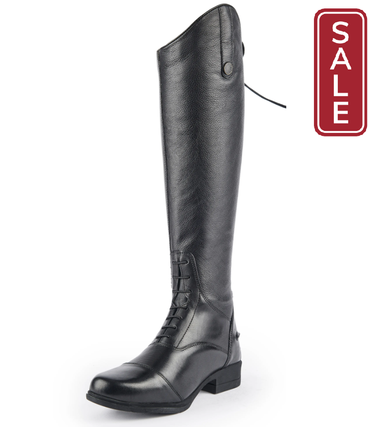 Moretta Ladies’ Gianna Leather Field Boots present a polished, professional look. The close fit is achieved by pairing hard-wearing leather inner calves with softer stretch outer panels that hug your leg. Stretch mock laces, the contoured topline with swagger tab and toe cap add up to classic style.