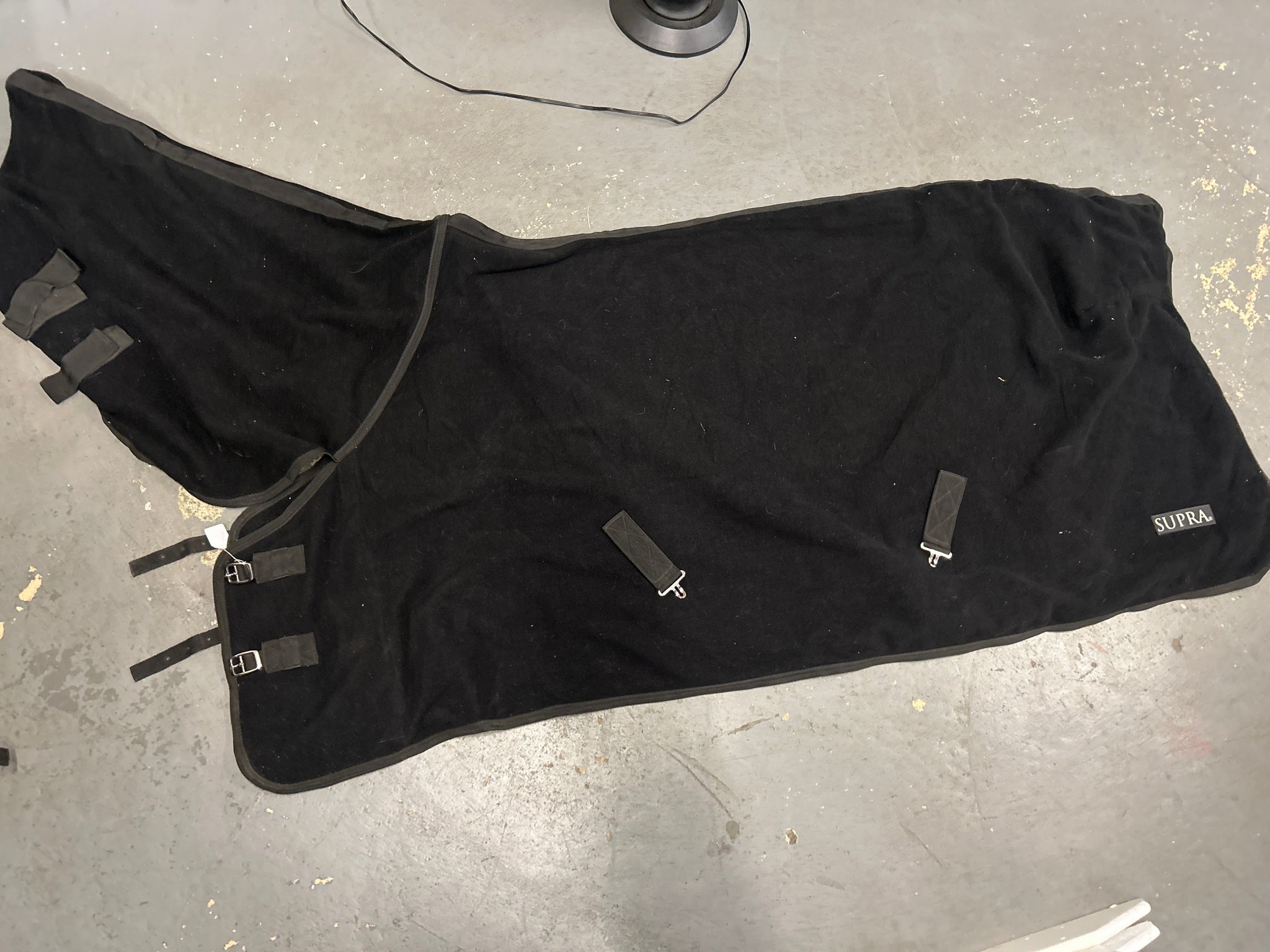Super soft suede fleece covers your horse from poll to tail while two Velcro straps under the neck, two buckles in front of the chest, cross-biased belly straps keep the cooler in place. Perfect for full coverage cooling after a long ride, post-competition, or after a bath. Recommended for supervised use.