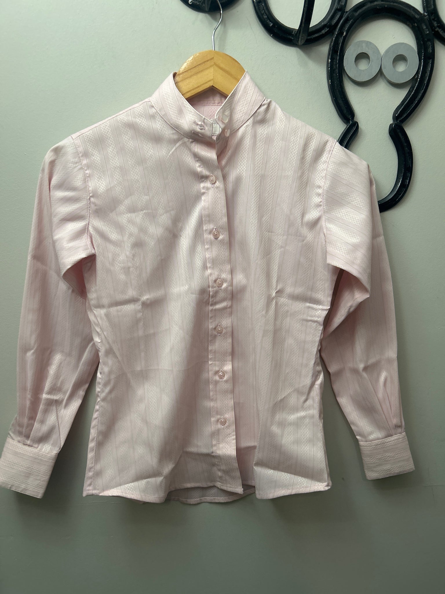 Super Cute Pink English Show Shirt. One of the matching catchers has beautiful rose embroidery. Excellent condition, like new!