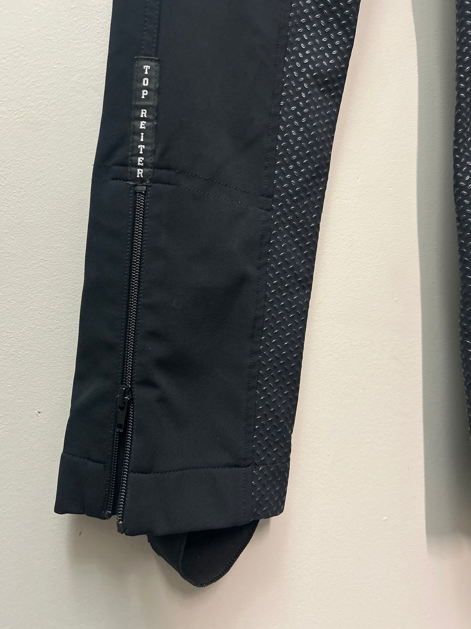 Icelandic Top Reiter Soft Shell Full Seat Boot Cut Jodhpurs. Zippers around the lower leg closures. Labled for a size 40L, size chart is attached. Black. Excellent Condition.