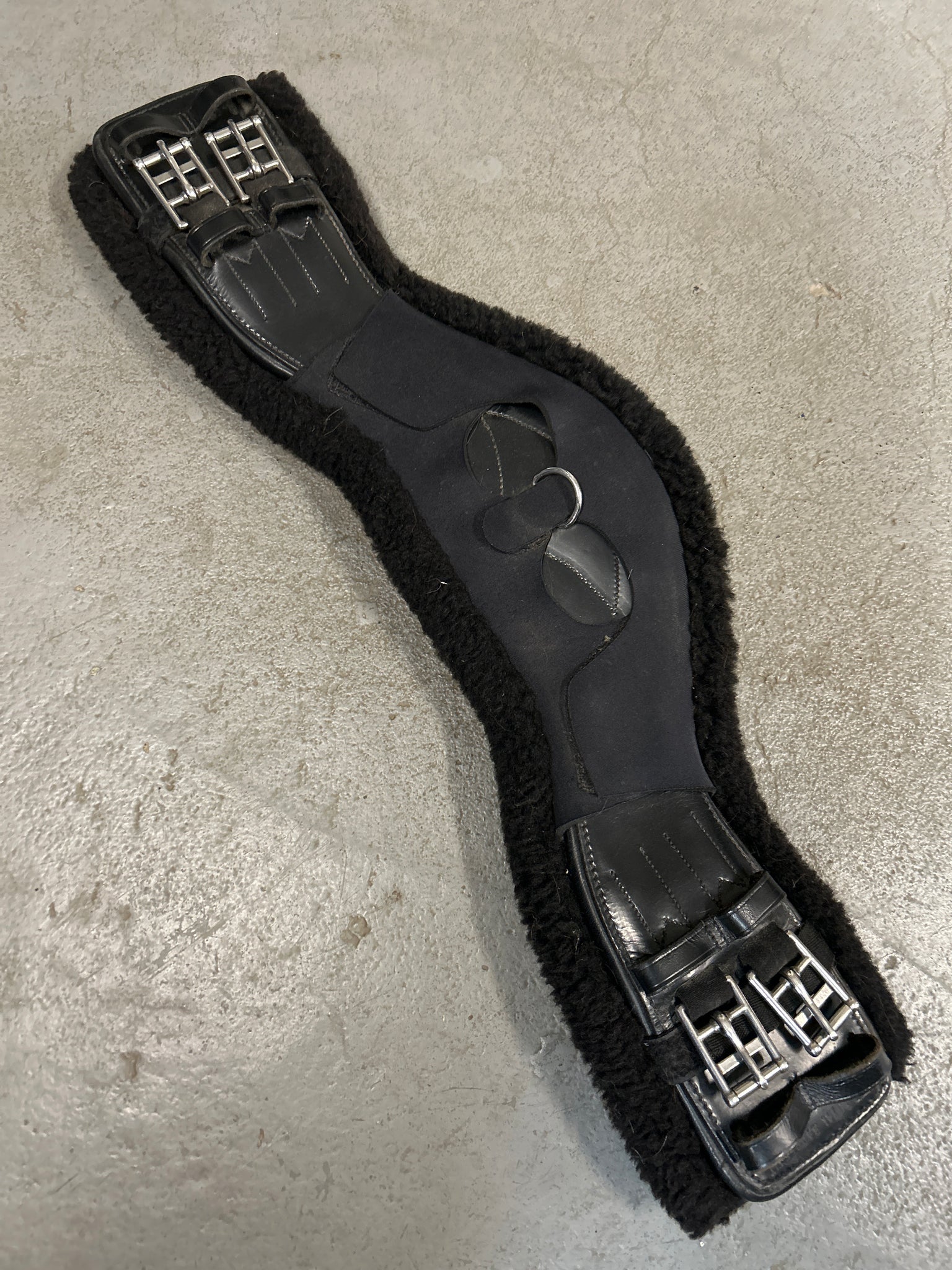 Crafted from premium black English leather and paired with a plush sheepskin cover, this ergonomic girth is designed to optimize saddle position and maximize freedom of movement for your horse.