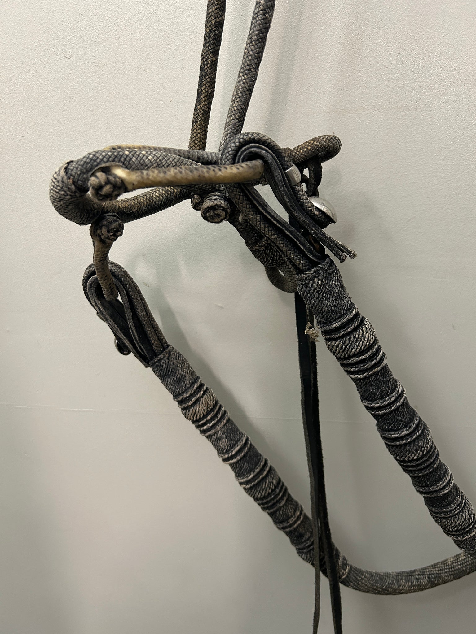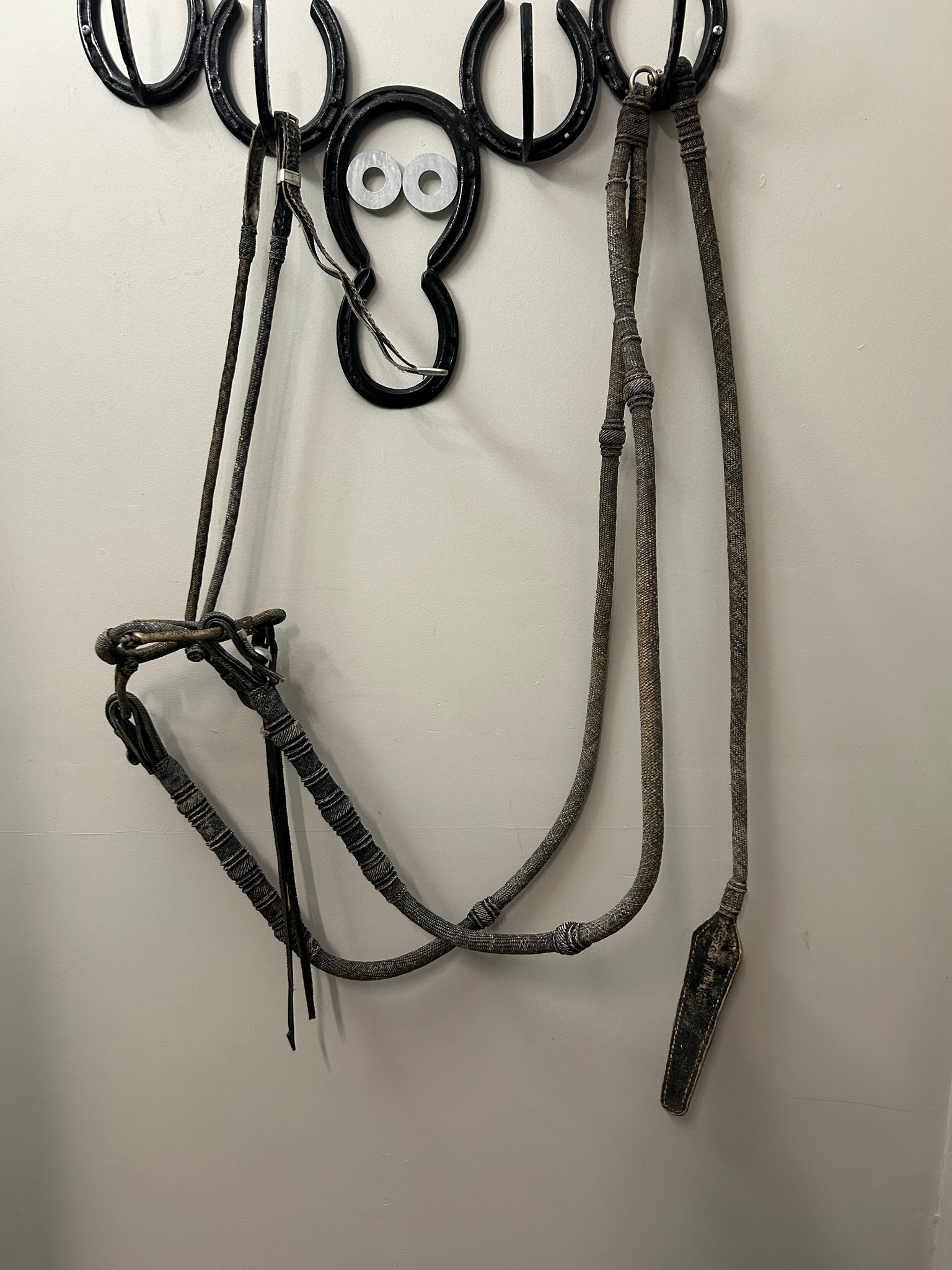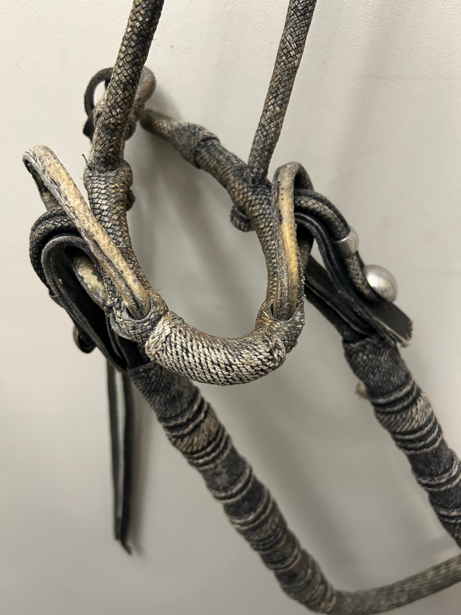 - Looks like it was originally Black, but has worn over the years. This bitless bridle has seen lots of use, but it is still stiff and dry from storage, so would benefit from some TLC.