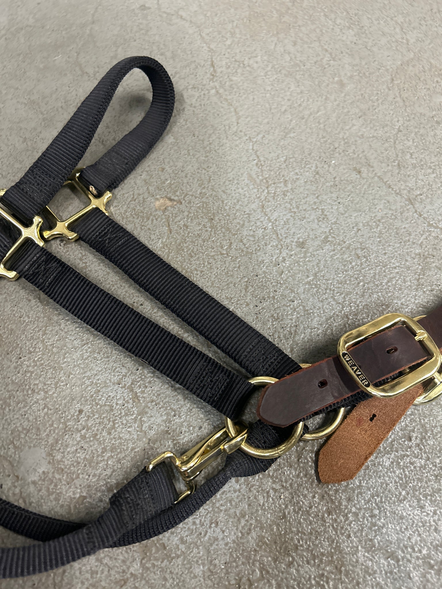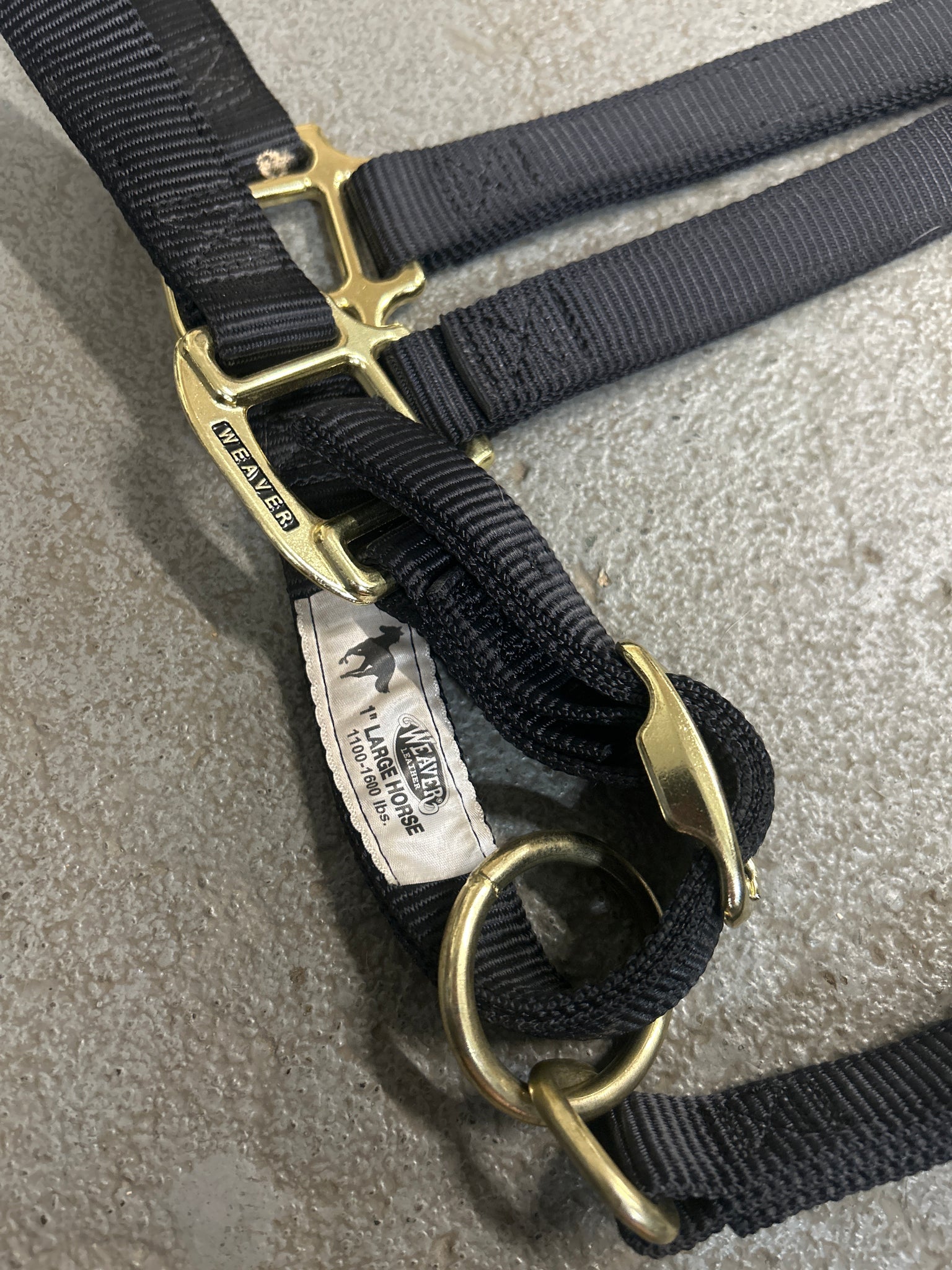 Weaver Black Nylon Breakaway Halter with a leather crown. Excellent condition.