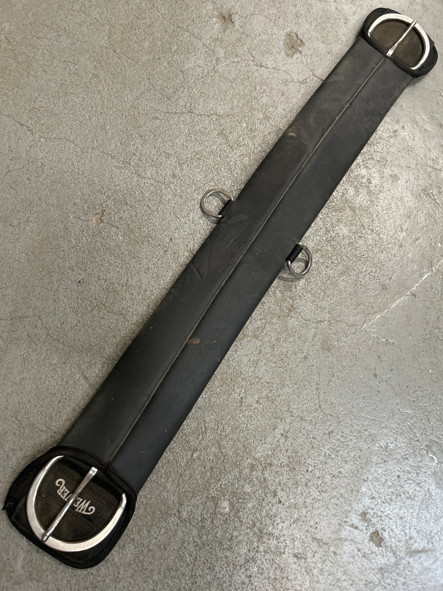 Weaver cinch wrapped in soft neoprene. No roller buckles. Good used condition.